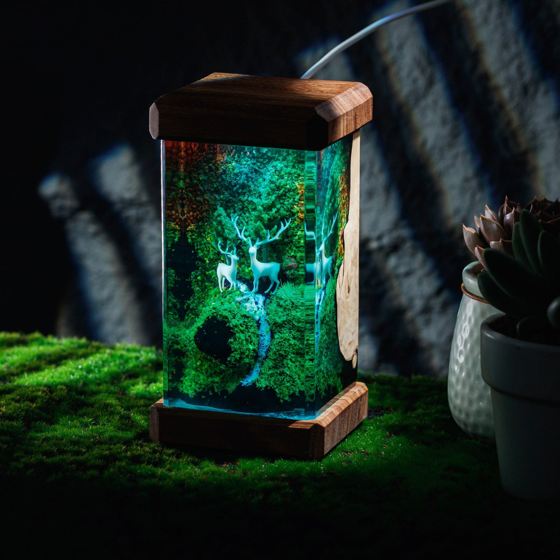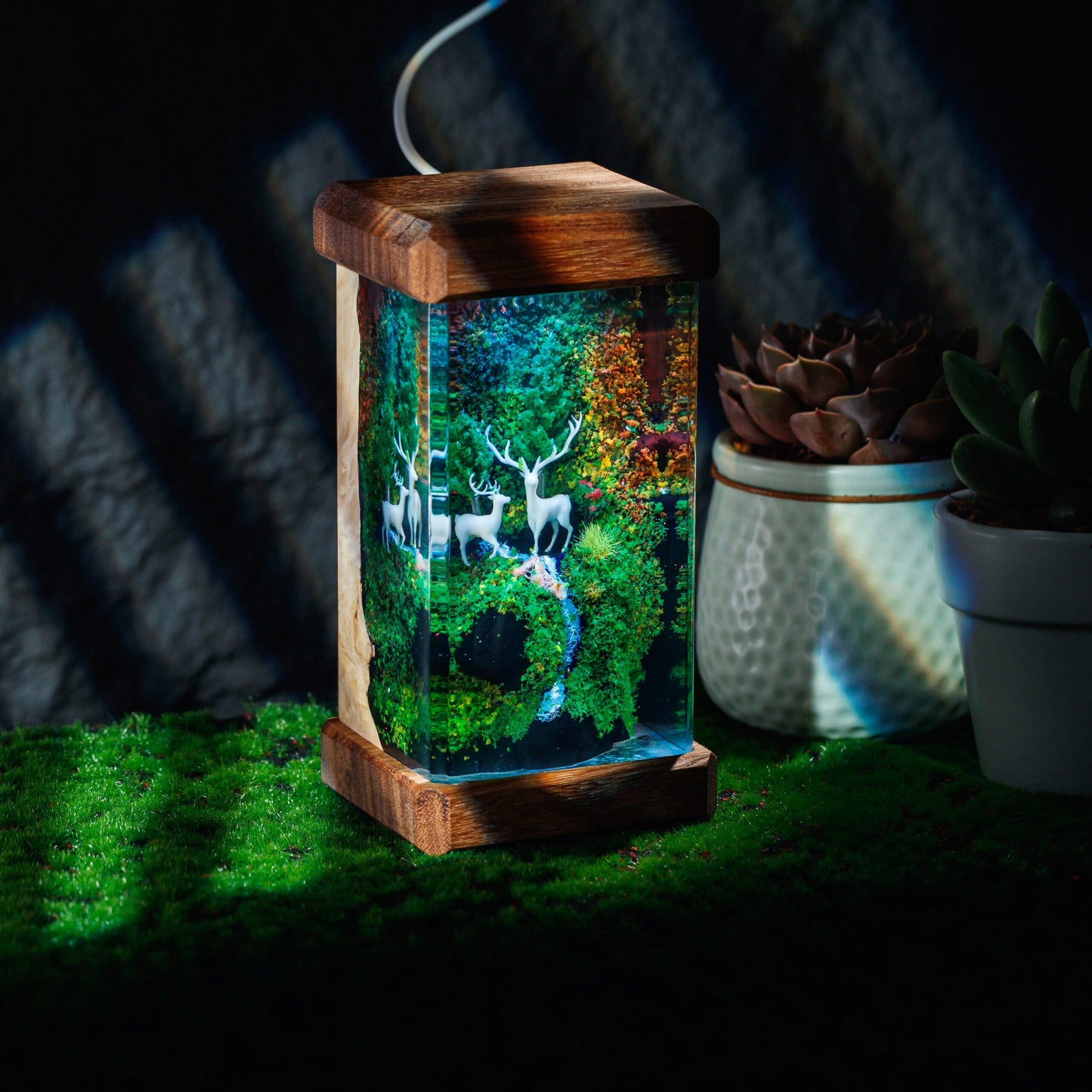 The Deer and Landscape Resin Lamp beautifully merges nature and illumination. Its resin design portrays a serene scene of deer in a tranquil landscape, offering a soothing visual experience. With its built-in lighting, the lamp casts a calming, inviting glow, making it perfect for any room. Versatile and visually appealing, it can grace tables, bookshelves, or serve as a bedside lamp. As a collector’s item, its limited availability and nature-inspired design add unique charm. The Deer Landscape Resin Lamp brings the serene beauty of the outdoors into your home, making it a captivating addition that celebrates the natural world.