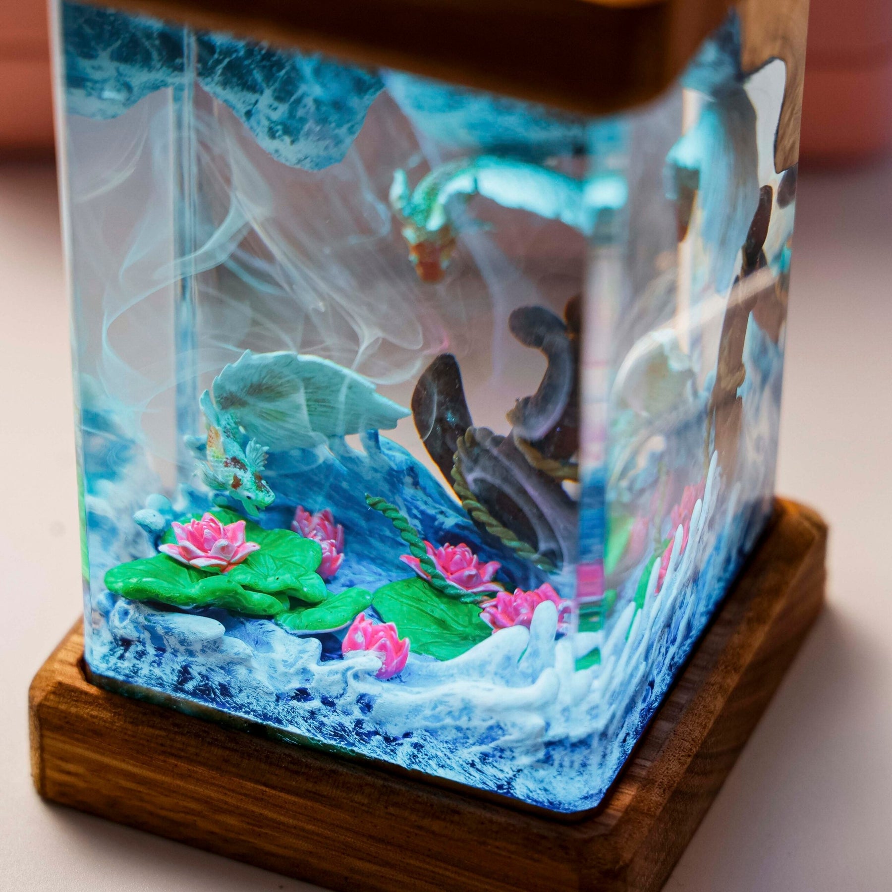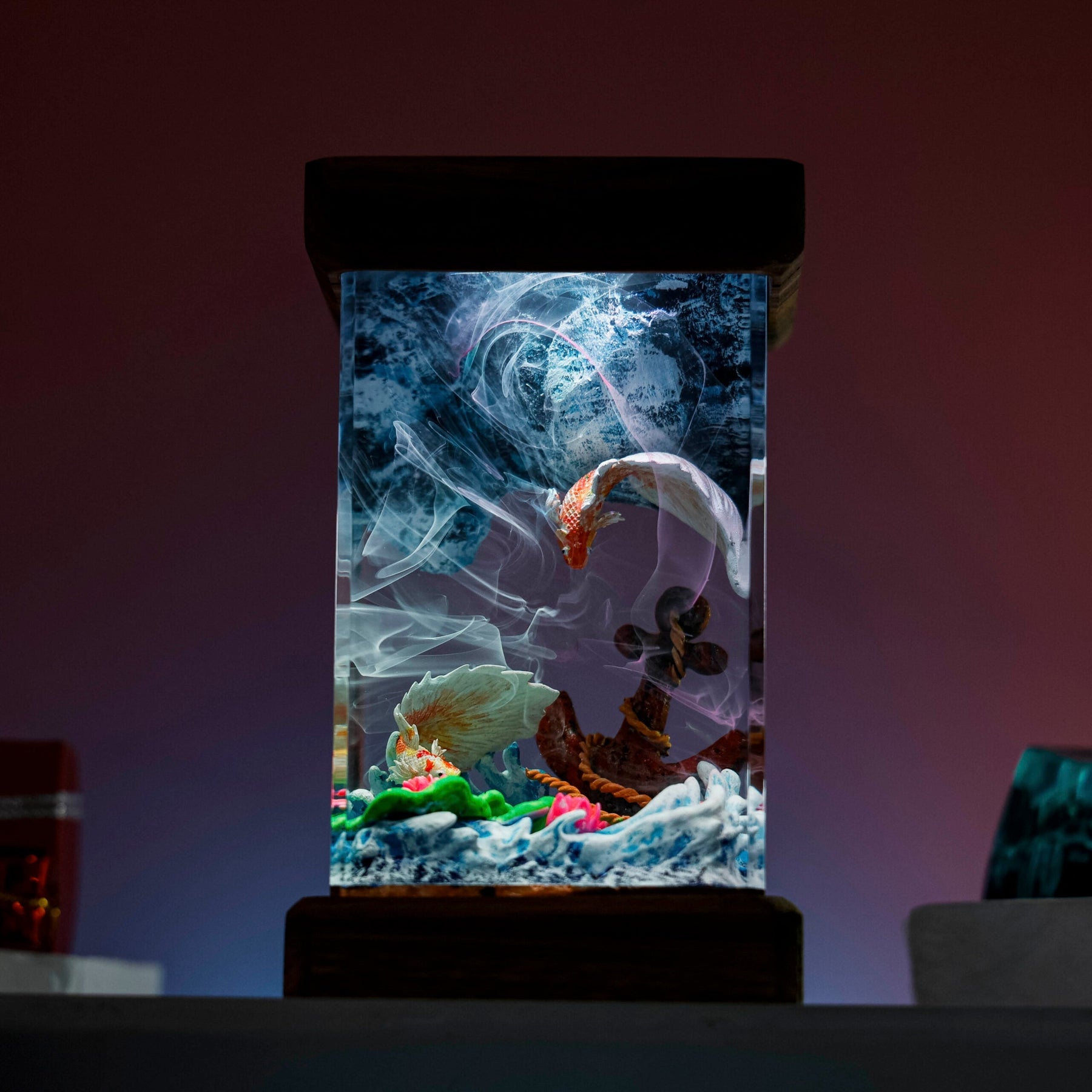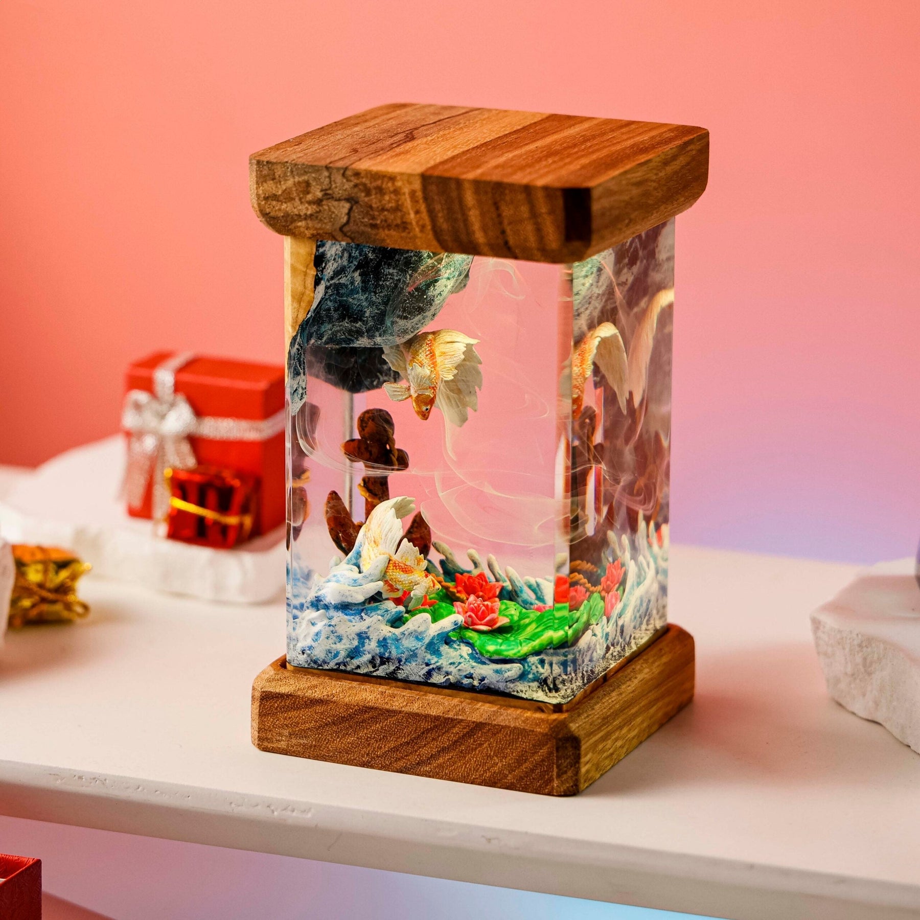 The Koi Fish Resin Lamp is crafted from durable resin, it showcases intricately detailed koi fish in a serene aquatic scene. With possible LED lighting, this lamp not only provides a soft glow but also brings a touch of nature-inspired elegance to any space. Perfect for those who appreciate artistic decor or seek a tranquil ambiance