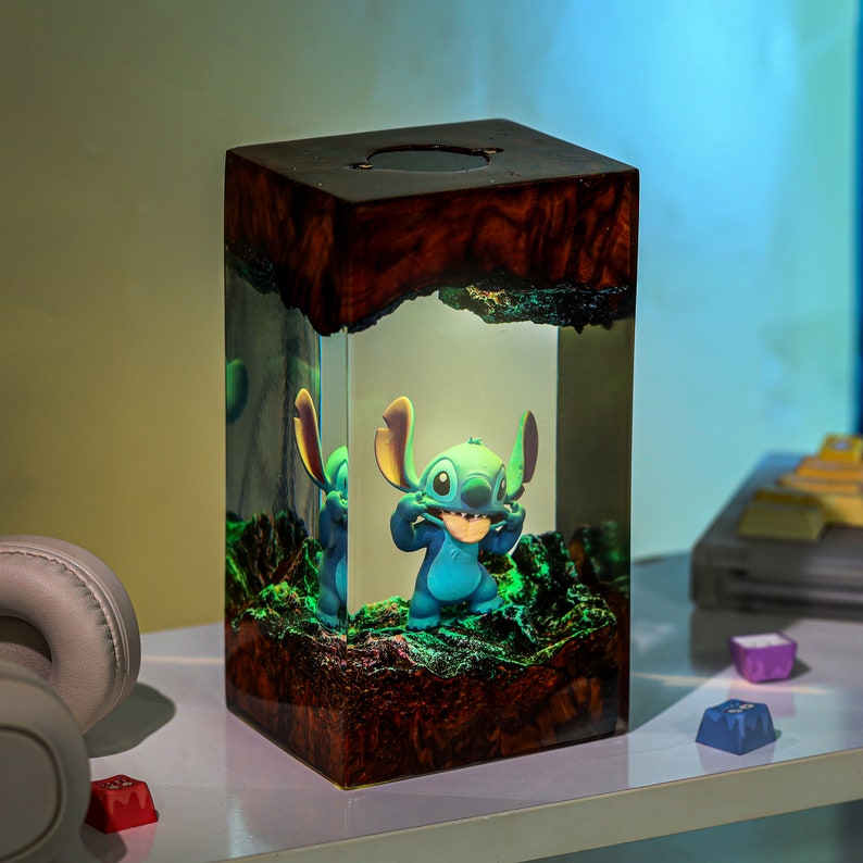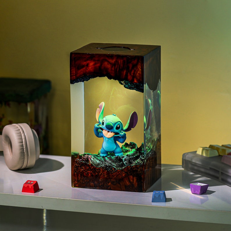 This handcrafted night light features a charming anime design, intricately crafted from natural wood and shimmering resin. The warm glow emitted from the LED light creates a soothing and inviting ambiance, perfect for bedrooms, living rooms, or any space that needs a cozy touch. Each piece is unique, showcasing the natural beauty of the materials and the artisan's skill.