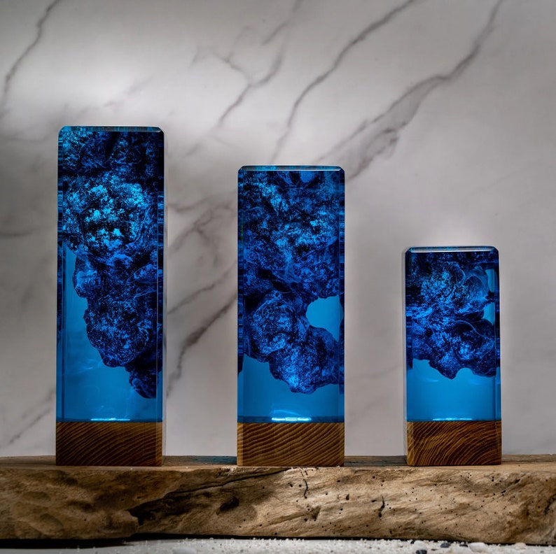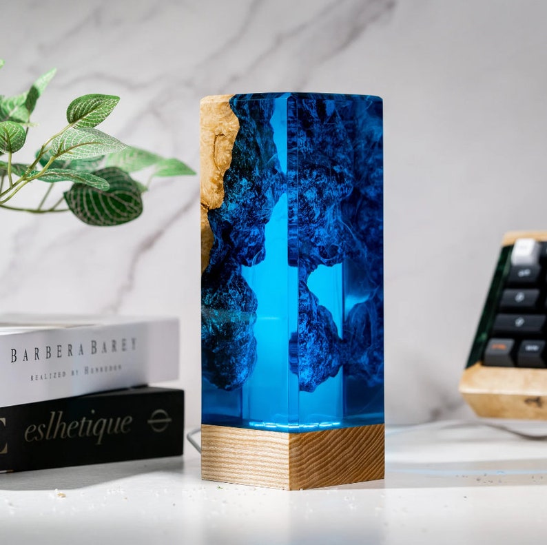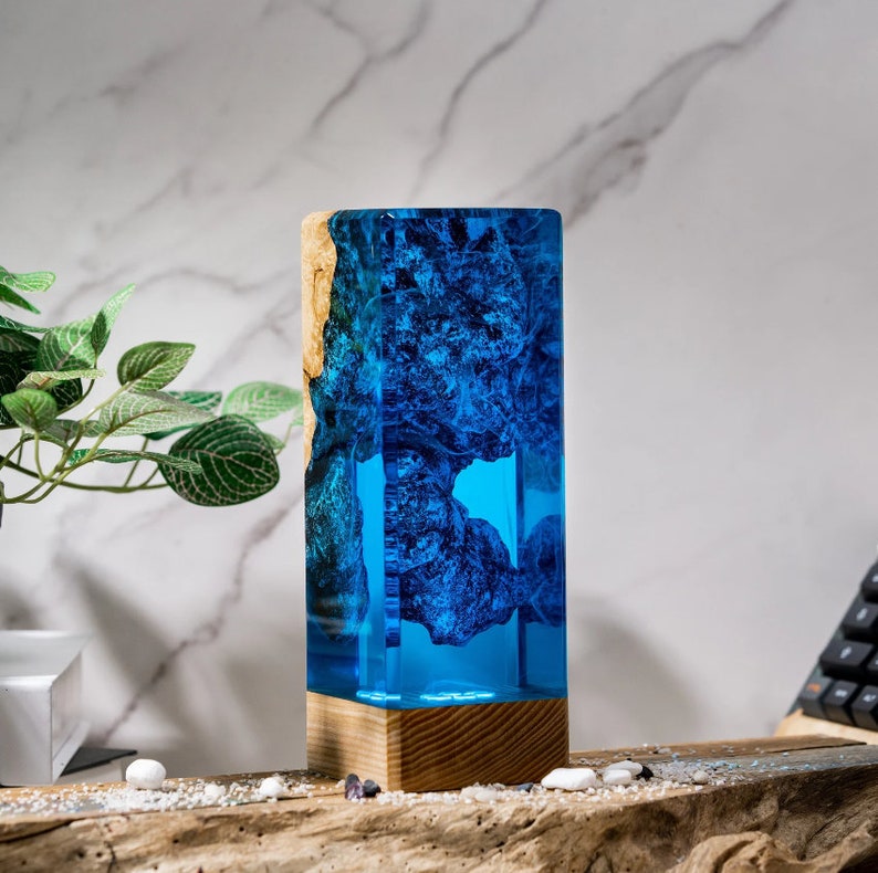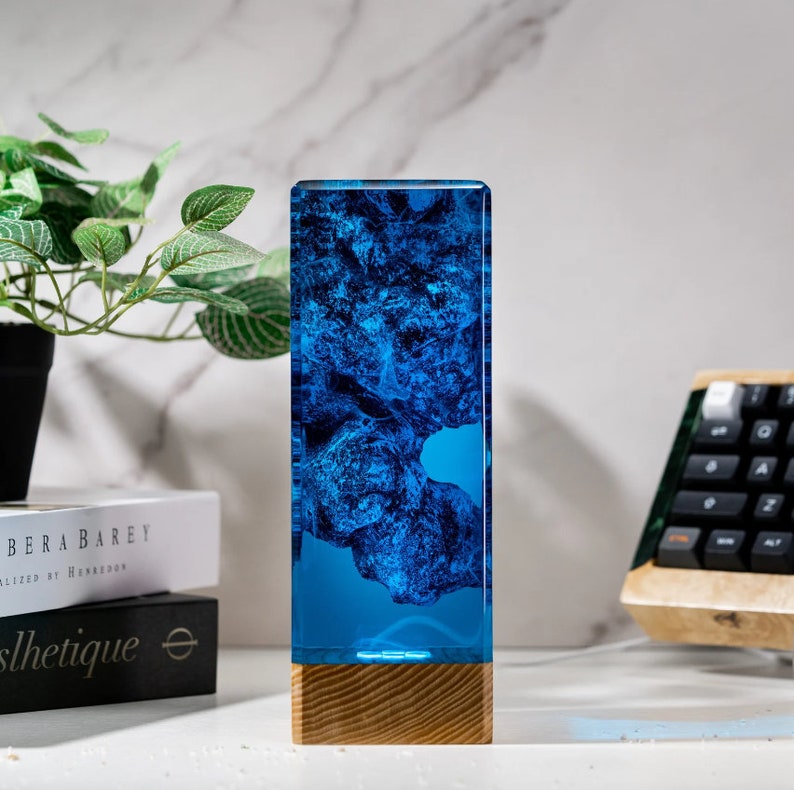 Blue Ocean Resin Epoxy Lamp, Night Light