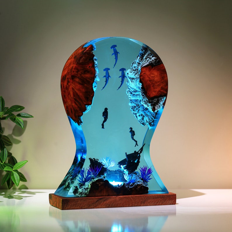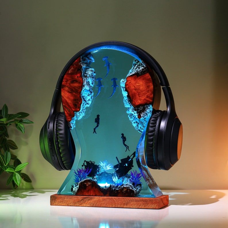 This custom headphone stand with a whale shark design is not only a practical accessory for your desk but also a beautiful and unique piece of art that can enhance the ambiance of your room.