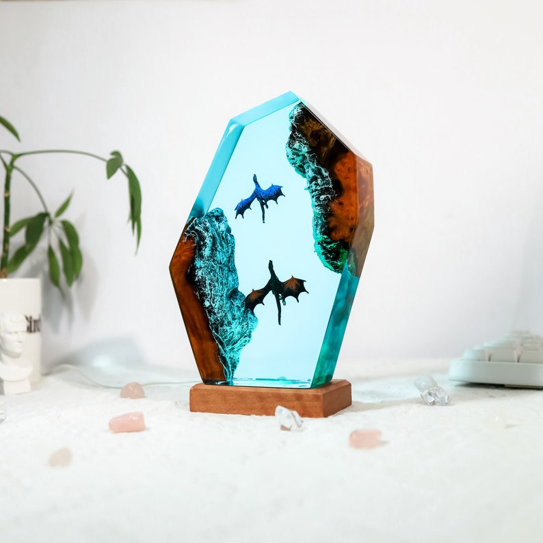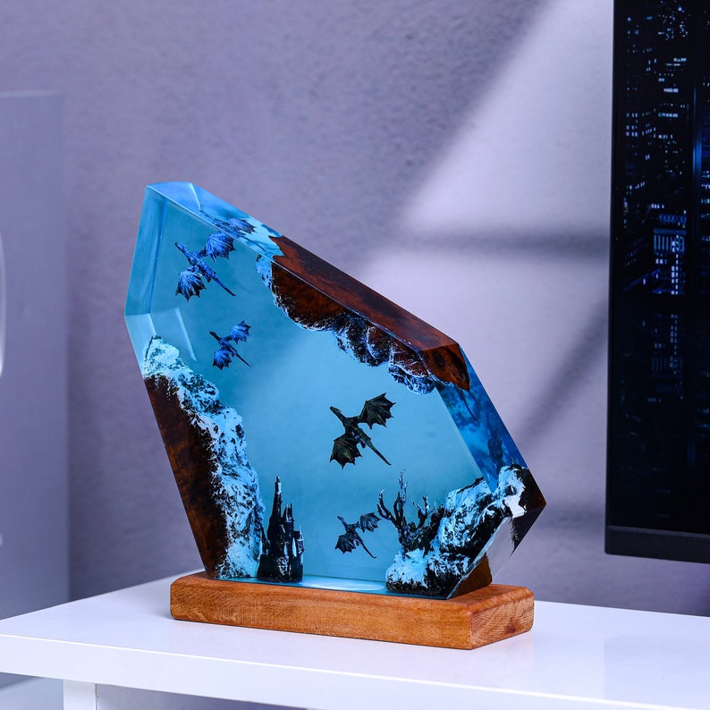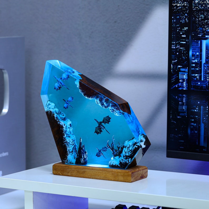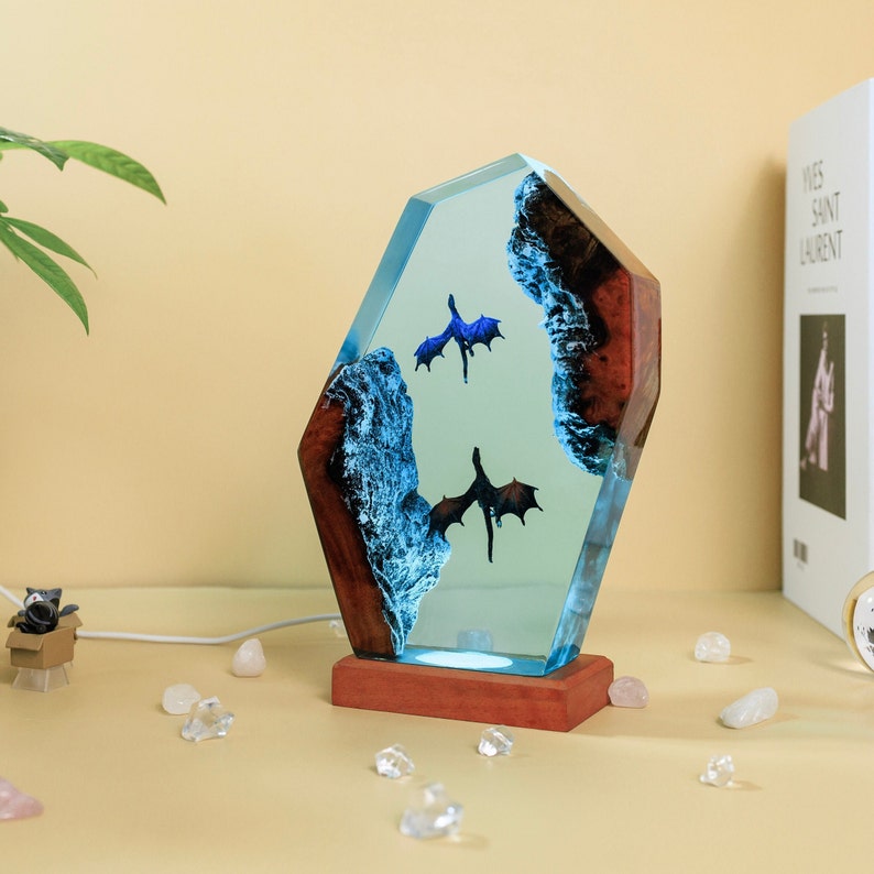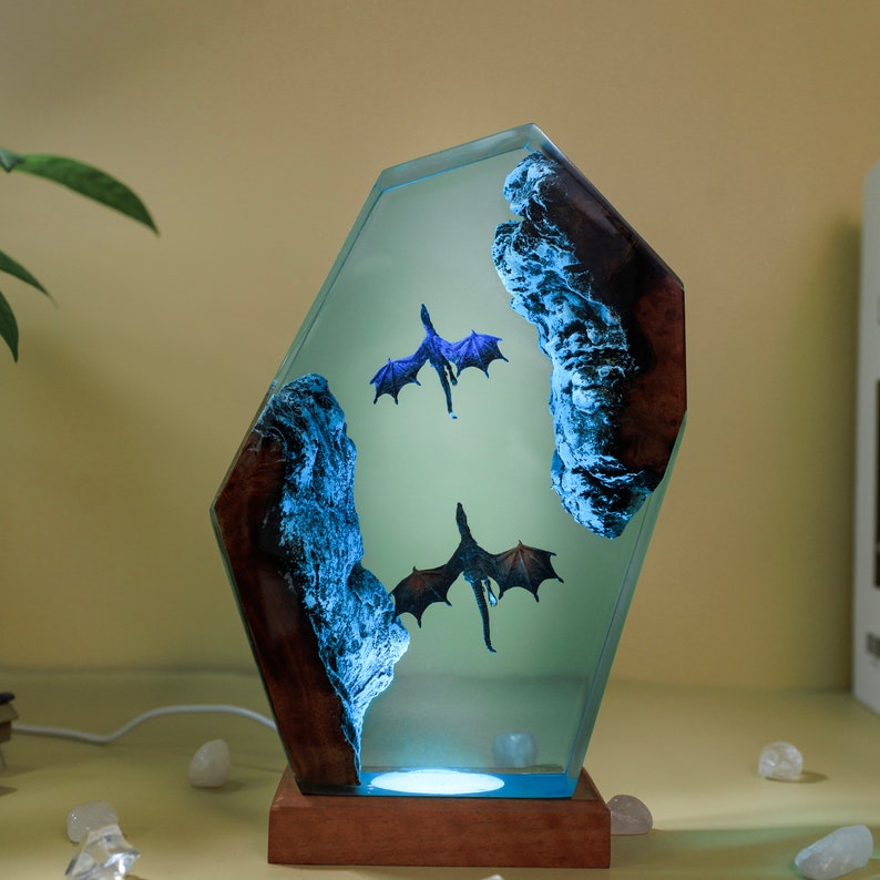 Fire and Ice Dragon Night Light, a stunning and mystical addition to any room. This unique night light is crafted with intricate details that bring the fiery and icy elements of the dragon to life.