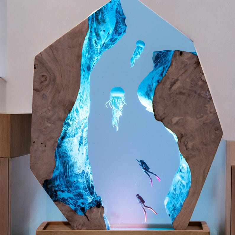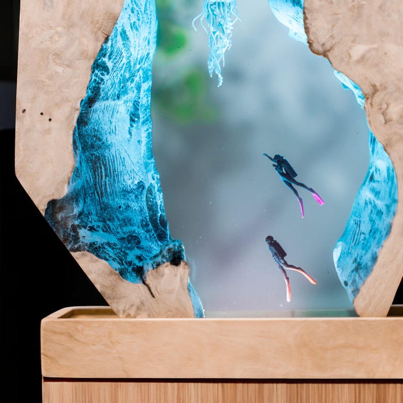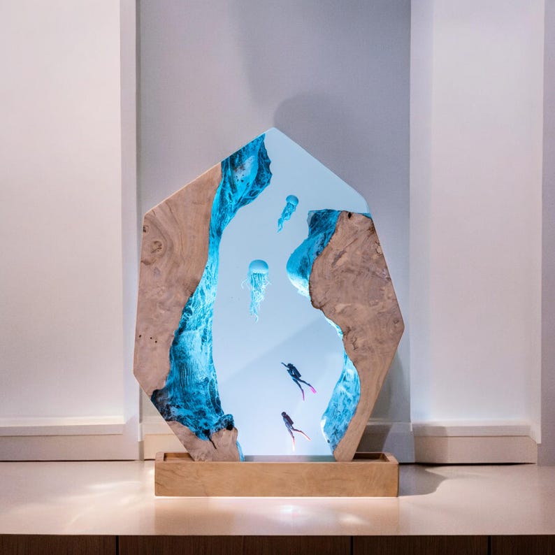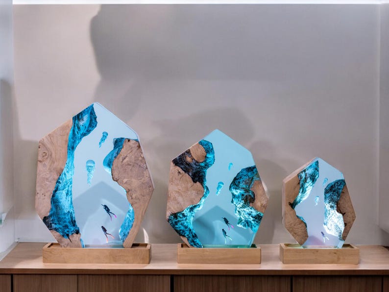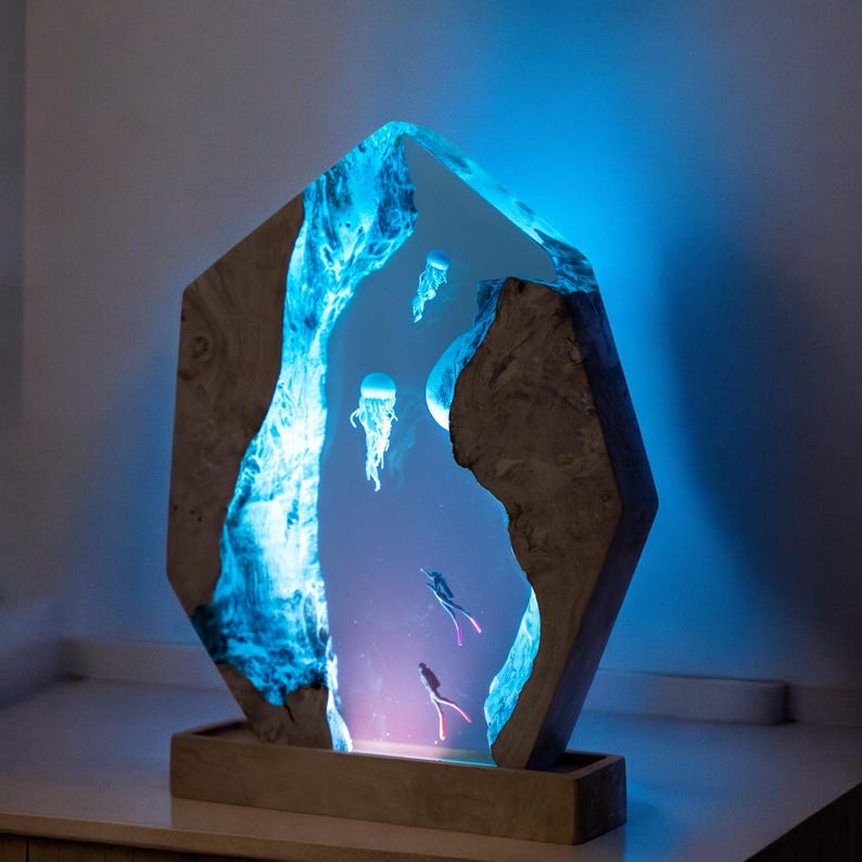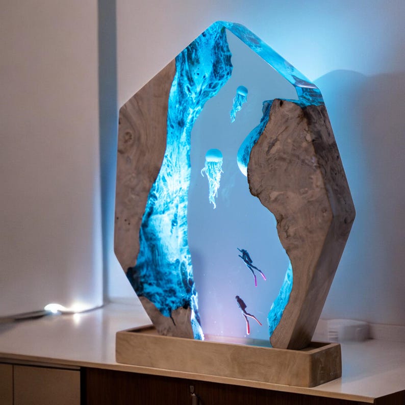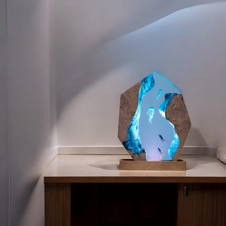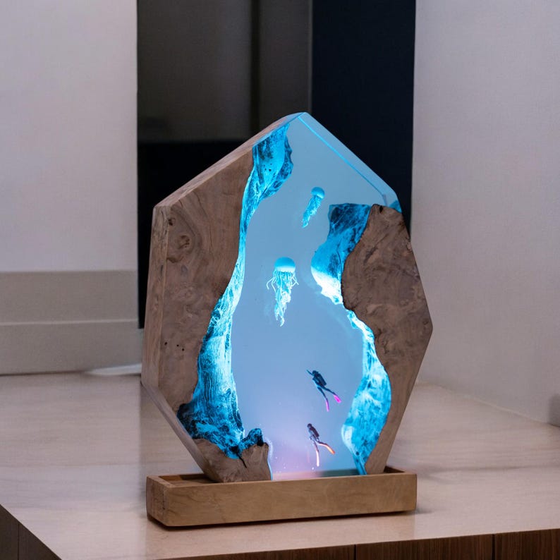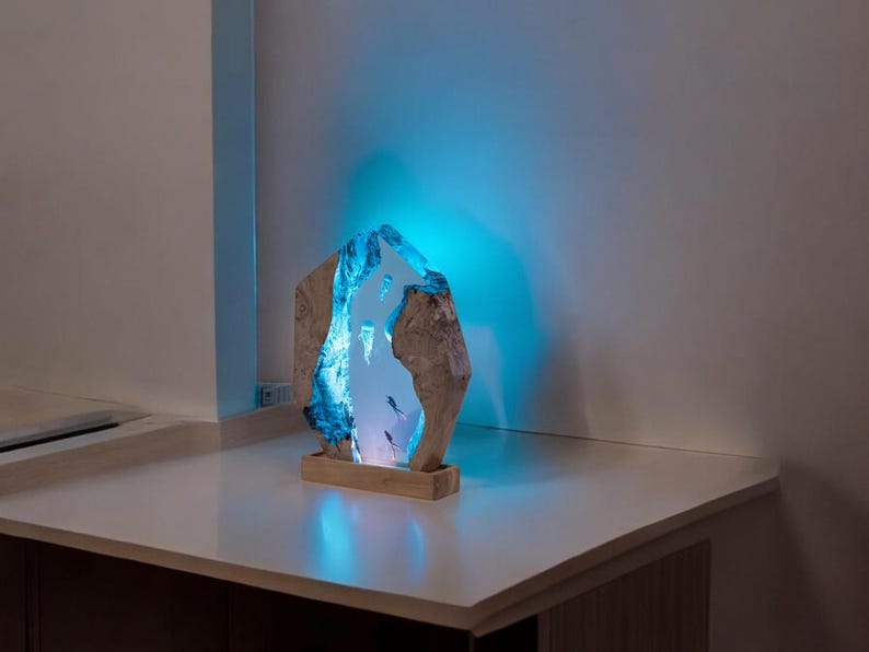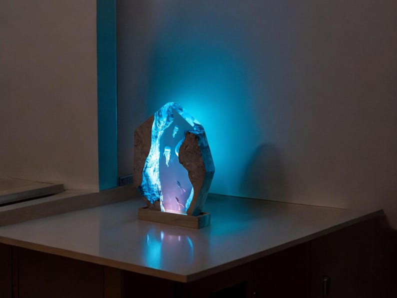 The combination of wood and resin in our wood resin lamp adds warmth and character to your space. Brighten your home and celebrate the beauty of the ocean with this exceptional lamp!