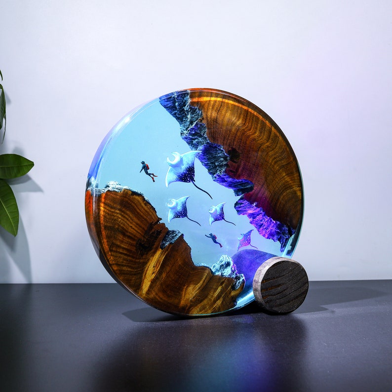 Imagine a mesmerizing lamp that brings the enchanting depths of the ocean into your living space. The lamp's base, crafted from translucent materials like resin, captures the essence of an underwater world, adorned with subtle waves and ripples for a touch of realism.