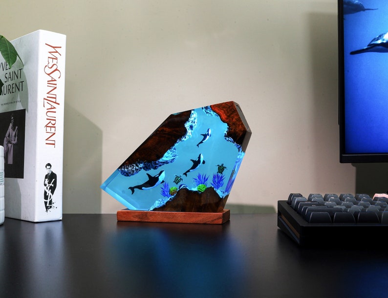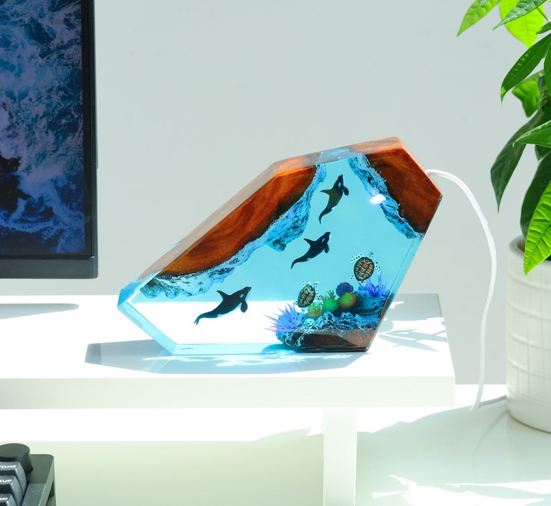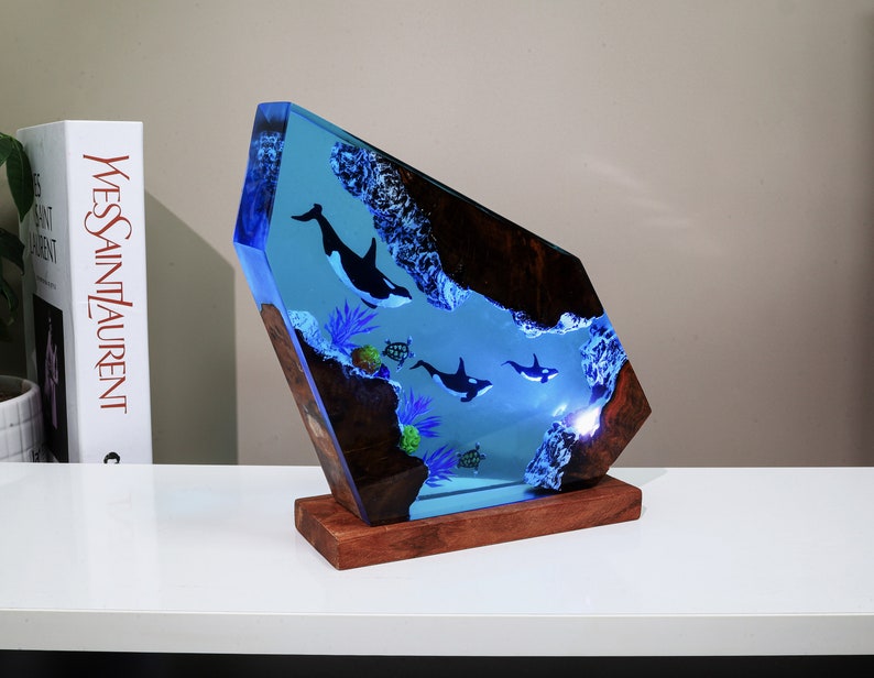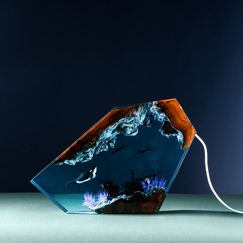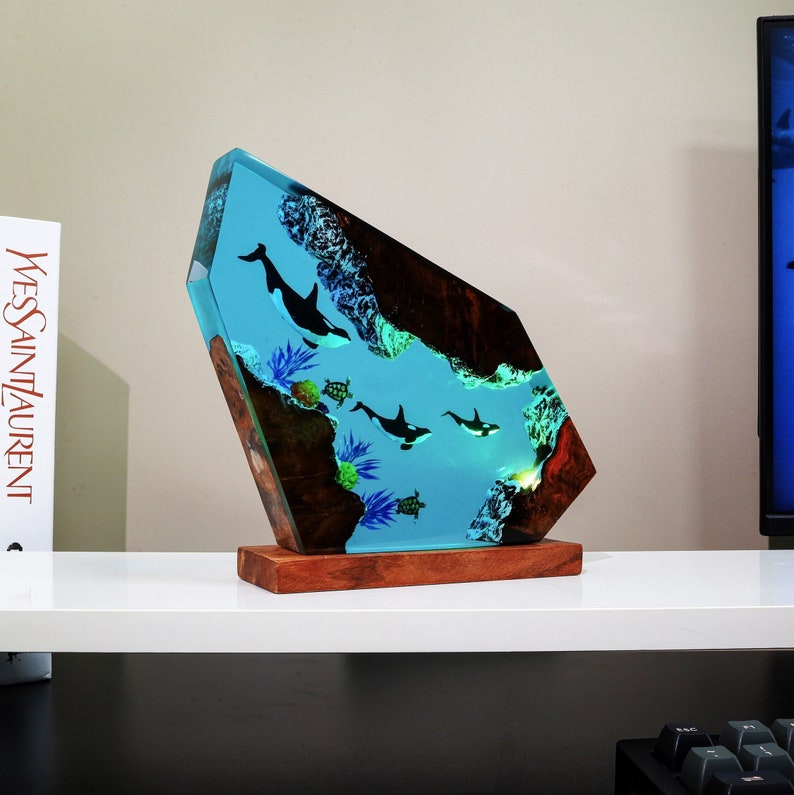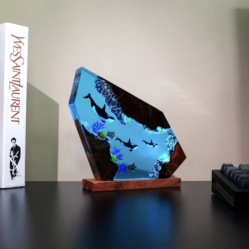 Orca and Diver epoxy lamp brings boundless peace and love to your space.
