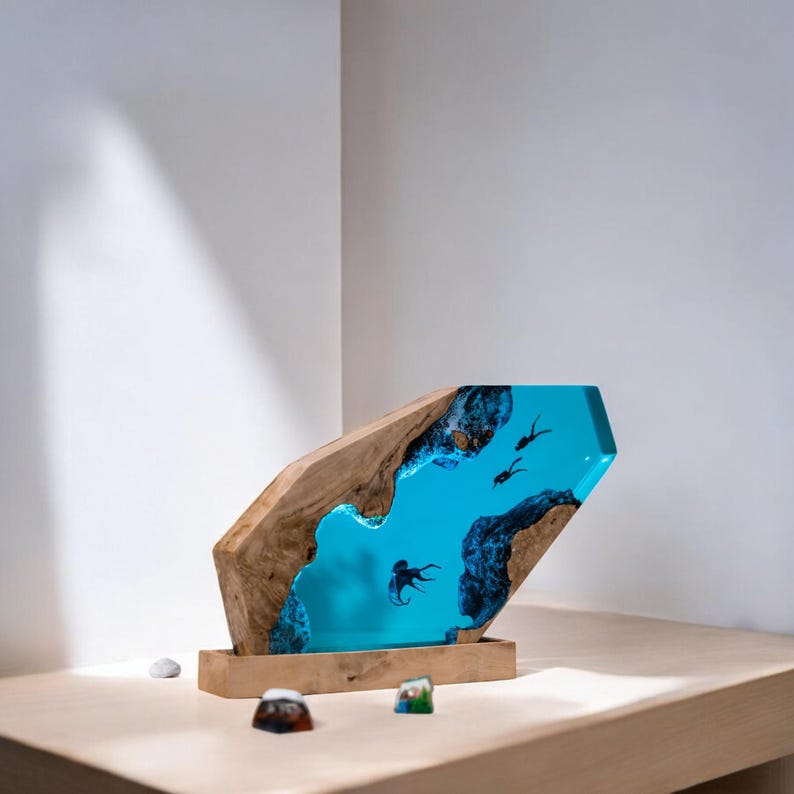 Scuba Diver Resin Epoxy Lamp, Night Light