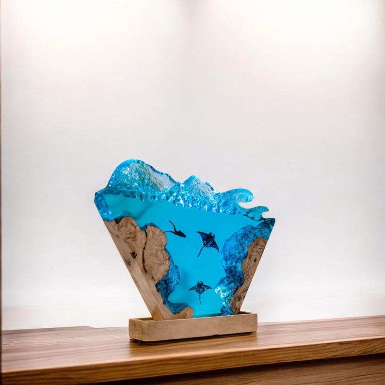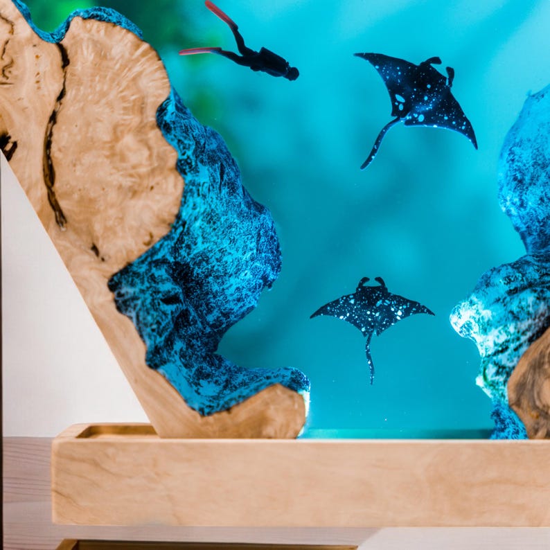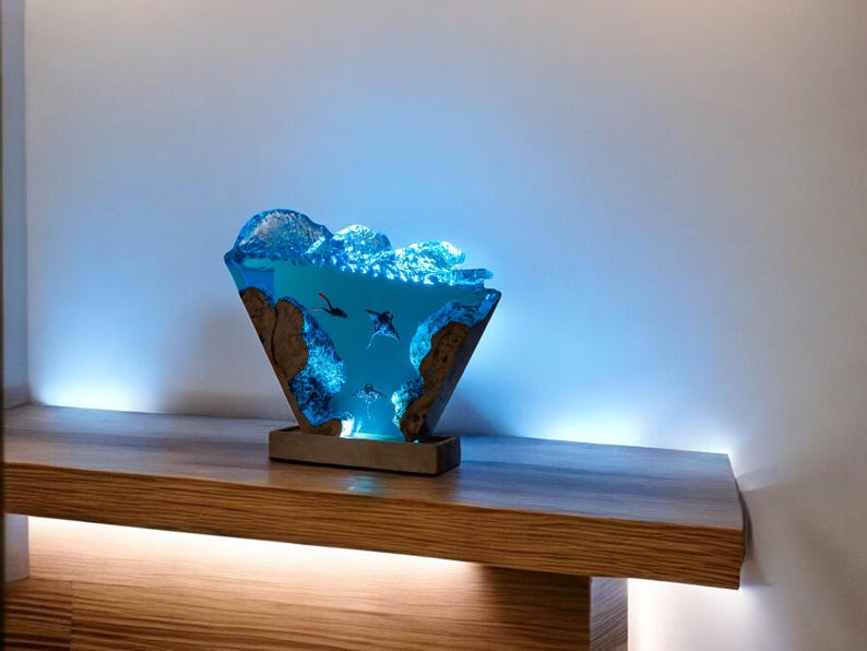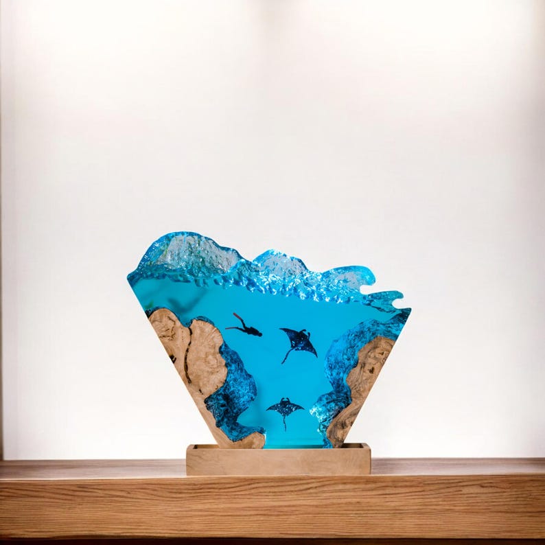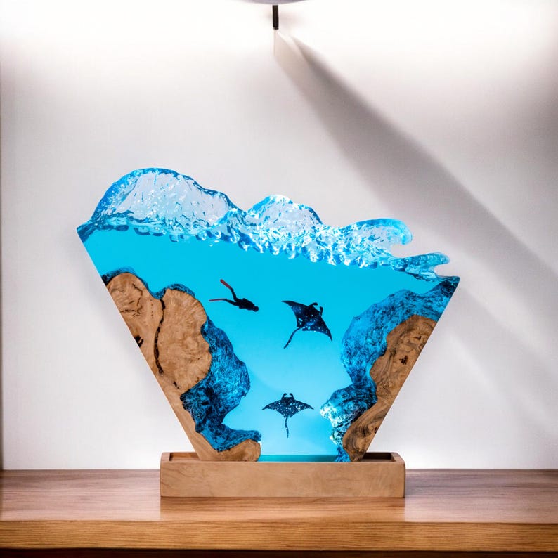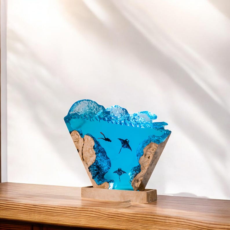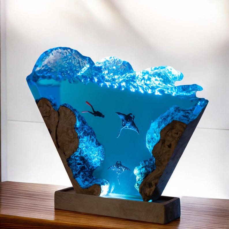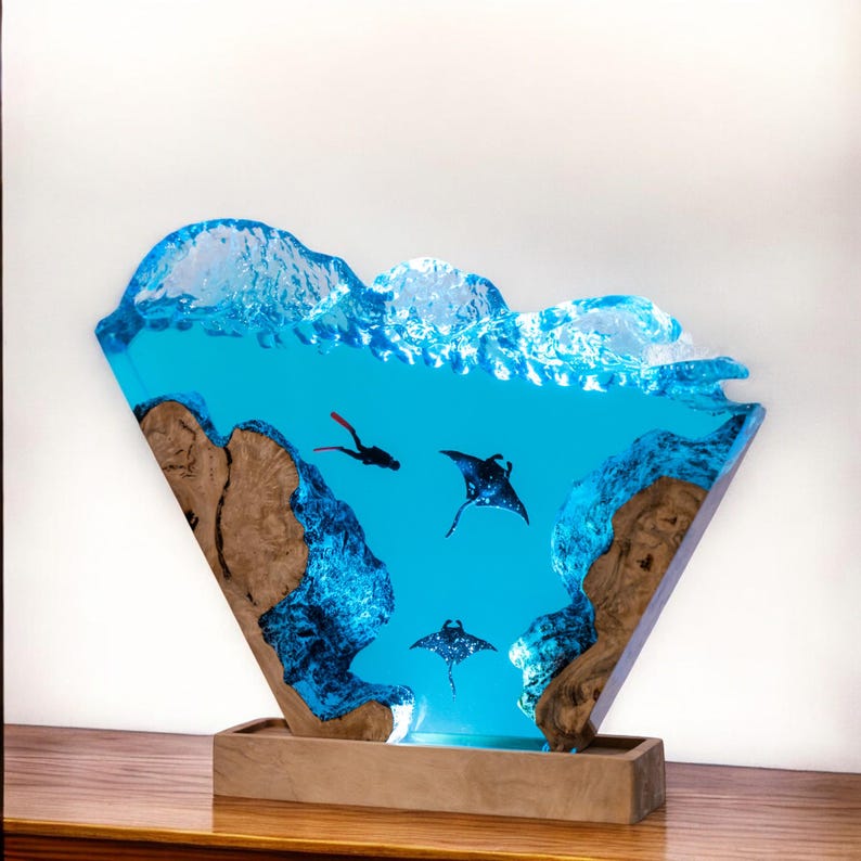 The Lamp Scuba Diver Resin is a breathtaking piece of art that immerses your space in the mystery and beauty of the ocean. Featuring an intricate underwater scene, this lamp epoxy resin ocean captures the depths of the sea with stunning detail. For a touch of whimsy, the octopus lamp resin adds a playful and artistic element, making it a unique and eye-catching addition to your decor.