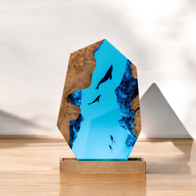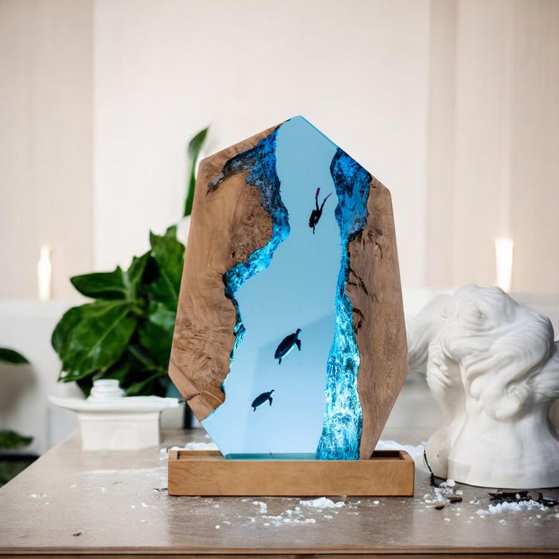 The SCUBA DIVER Resin Lamp is a work of art designed for those who share a deep love for the oceans and the adventure of scuba diving. The diver's silhouette, flippers, and tank are rendered with precision, evoking the spirit of exploration.