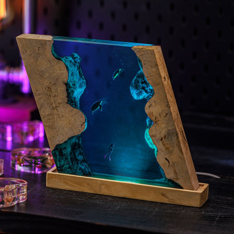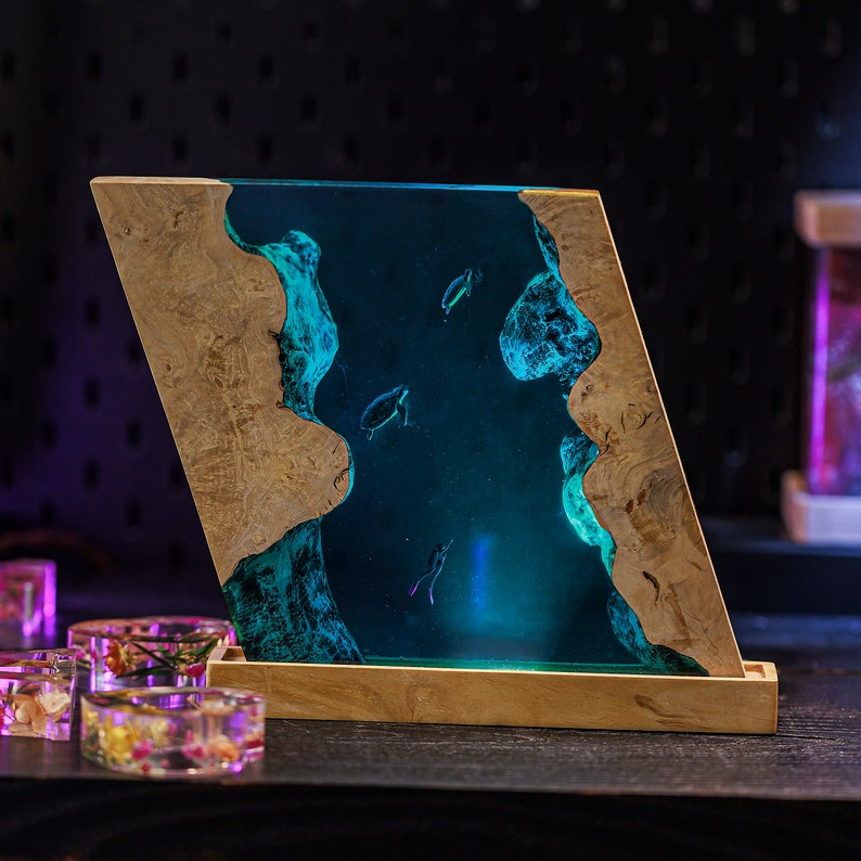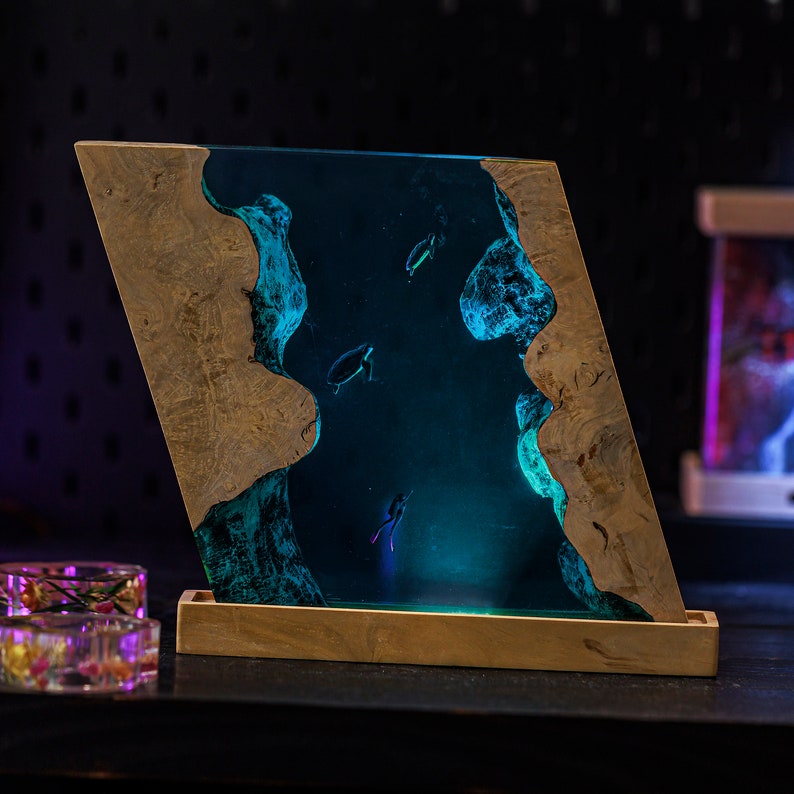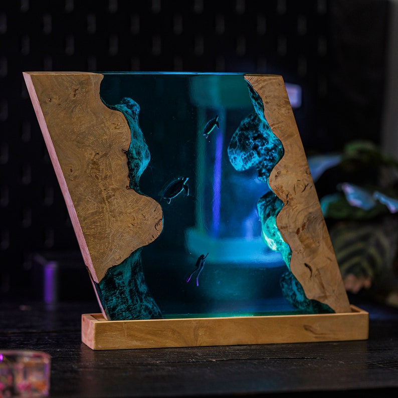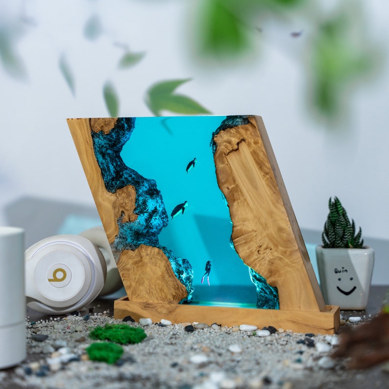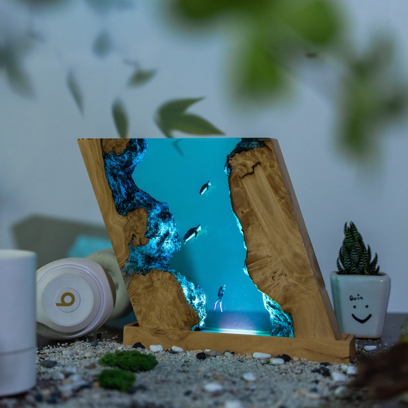 Perfect for any ocean lover, this custom resin epoxy lamp adds a touch of tranquility and elegance to your space. The calming hues of blue in the blue ocean lamp create a soothing atmosphere, making it ideal for relaxation. Not only does it serve as a night light, but it’s also a captivating piece of resin art that will enhance your home decor.