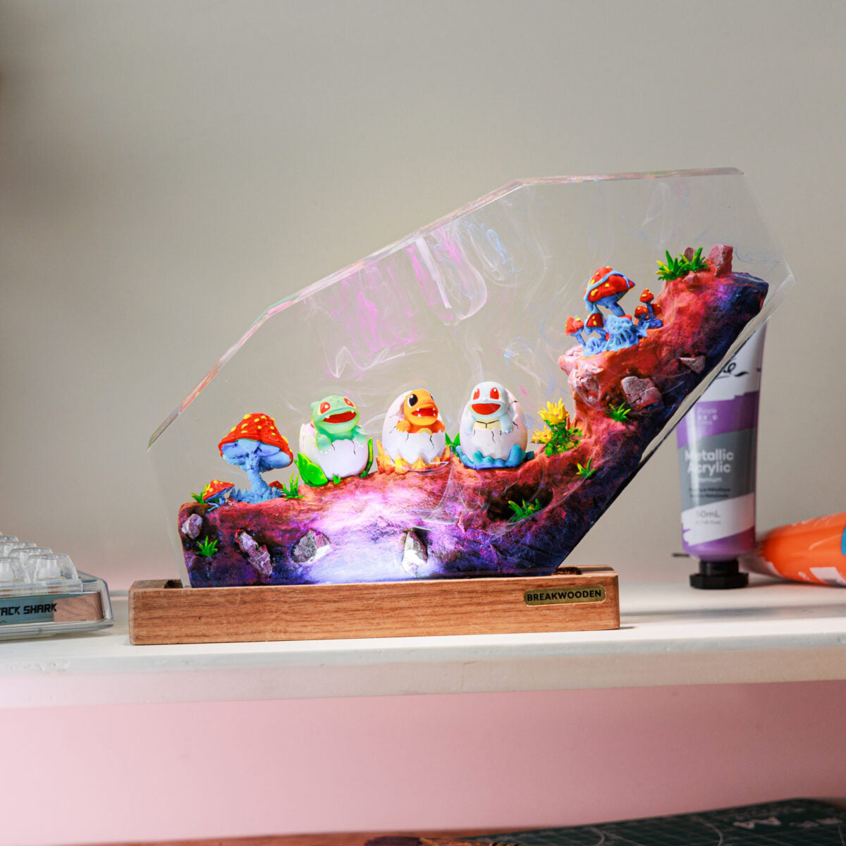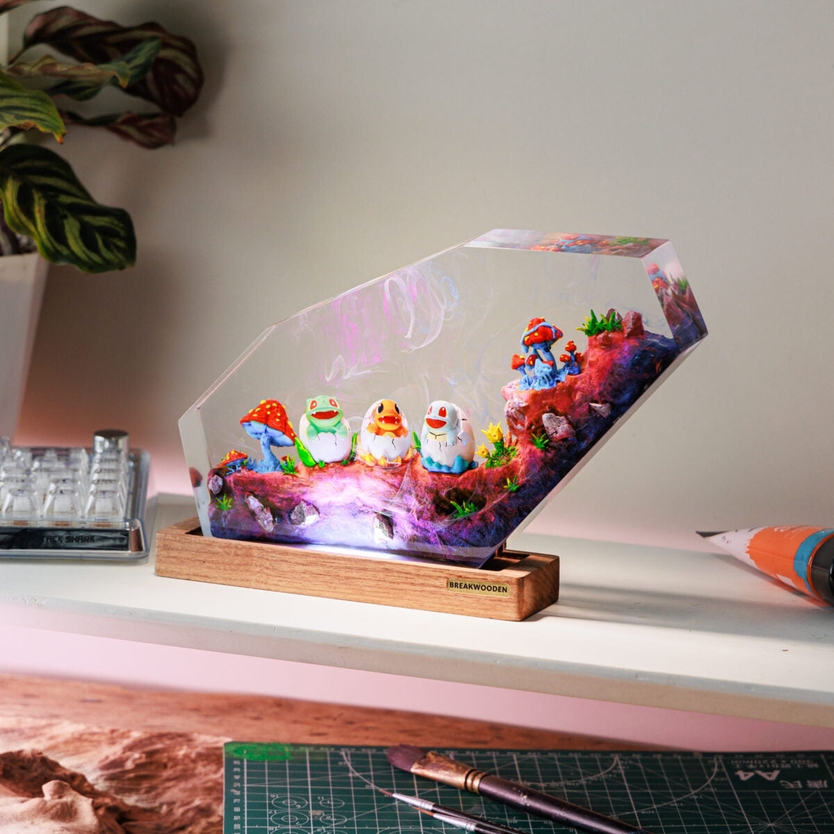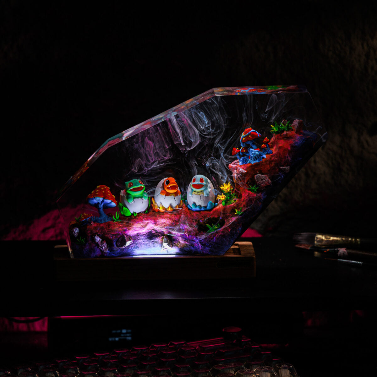 A Pokémon resin lamp is a charming fusion of art and functionality. Crafted using epoxy resin, these lamps showcase intricate designs of popular Pokémon characters or scenes. The molding process allows for detailed and vibrant creations, capturing the essence of the Pokémon universe.