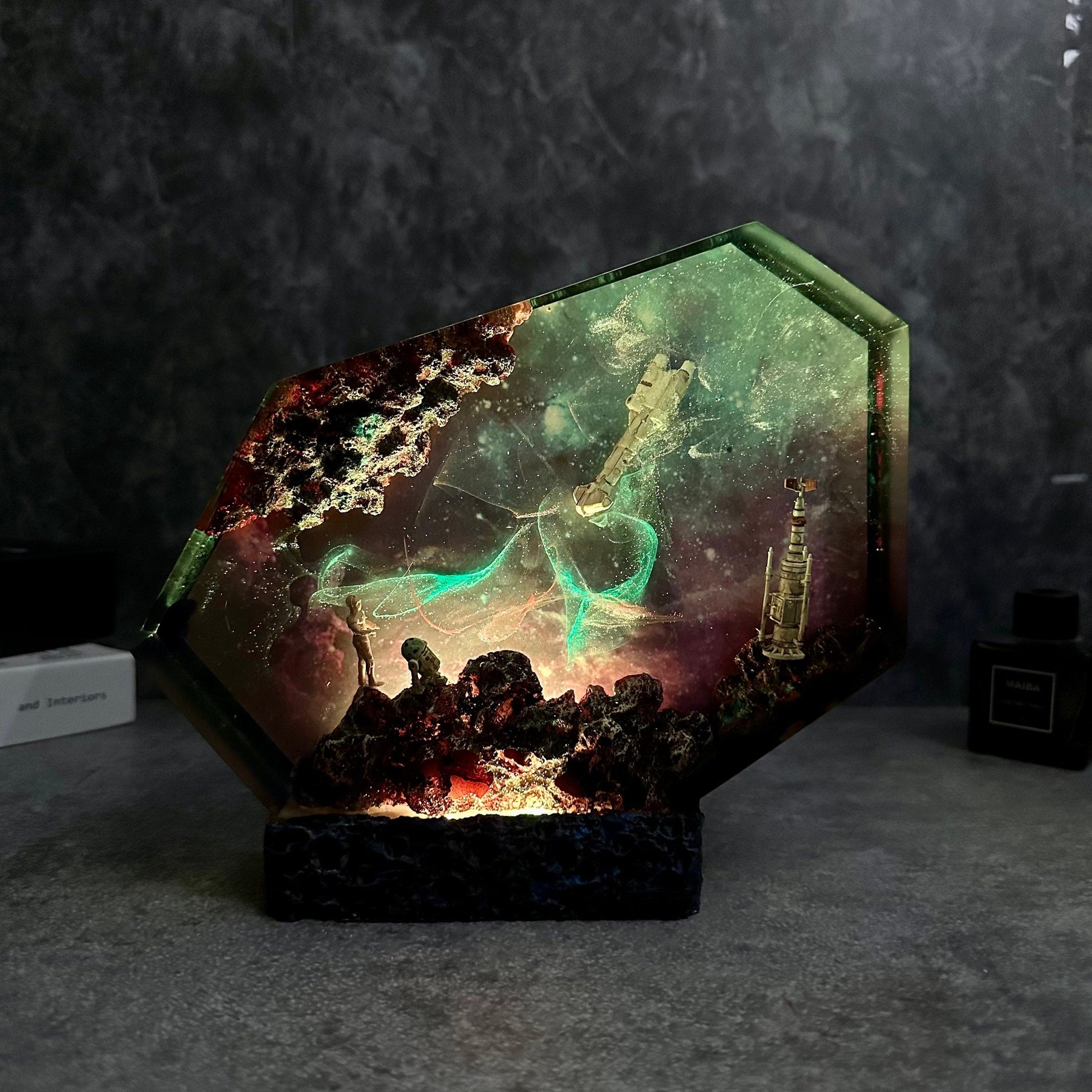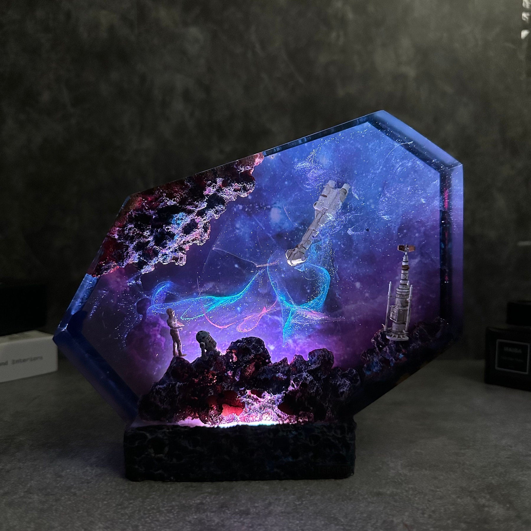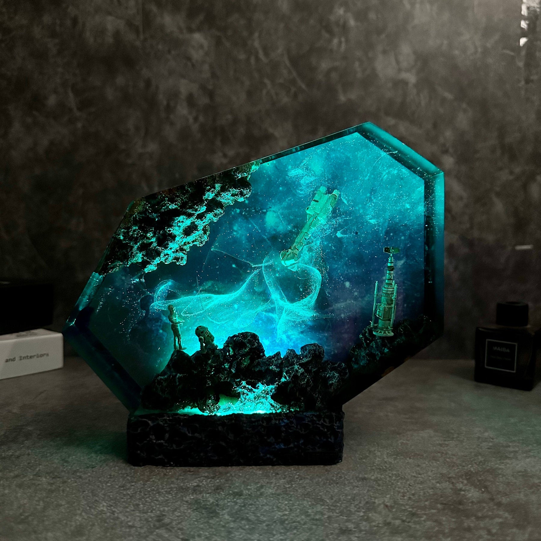 Let your imagination run wild, let your soul fly into space, or let the feeling of freedom envelop you with this resin lamp. All limits seem to be broken. Our latest design will help you destroy all negative emotions