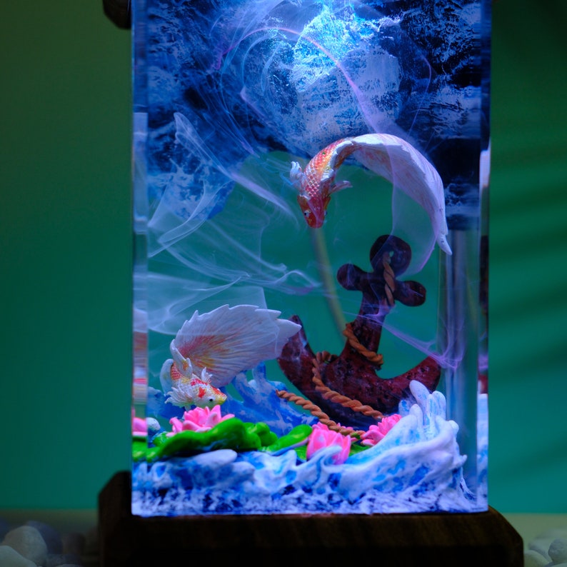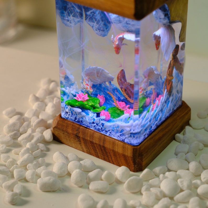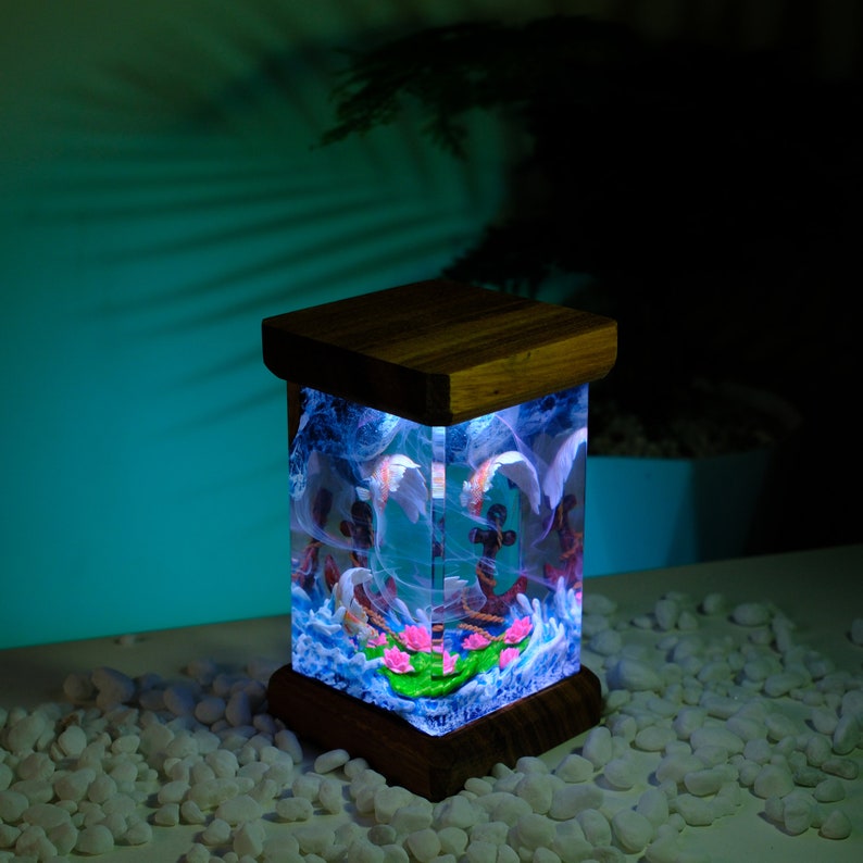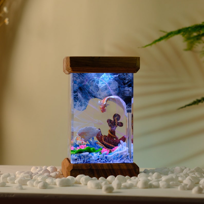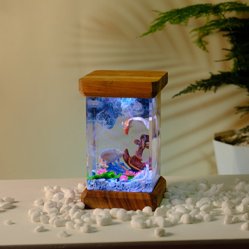 Discover the beauty of the ocean with our captivating scuba diver night light. Skillfully crafted from premium epoxy resin and natural wood, this unique lamp serves not only as a light source but also as a stunning piece of art that adds charm to any room. Whether it graces your bedside table or serves as a conversation piece in the living room, this lamp beautifully encapsulates the essence of the underwater world.