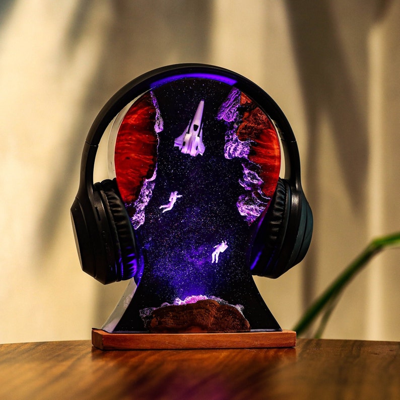 Not only does our Galaxy Night Light and Headphone Stand serve as a functional stand to keep your headphones organized, but it also doubles as a mesmerizing night light. When illuminated, the resin art comes to life, creating a celestial ambiance that transforms your space into a tranquil sanctuary. Whether you're winding down for the night or immersing yourself in your favorite tunes, this versatile piece enhances your experience with its ethereal glow.