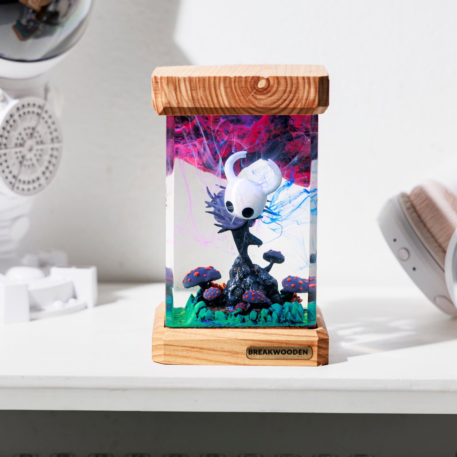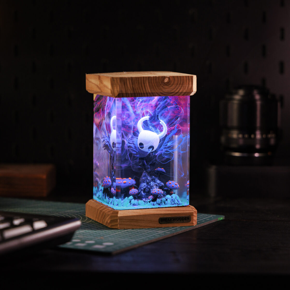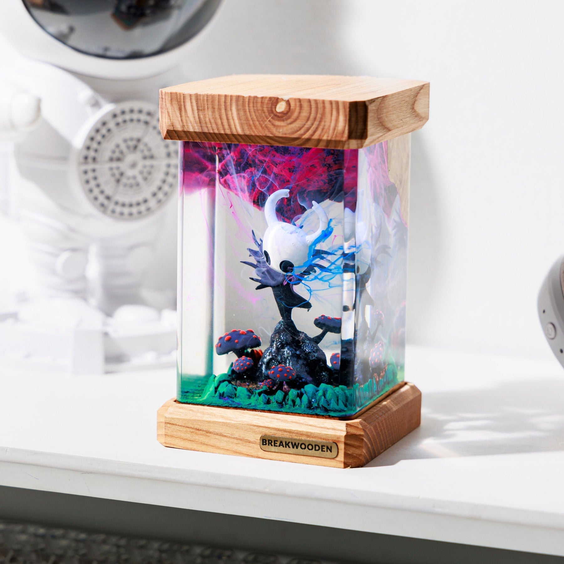 The Hol.low Knight resin lamp beautifully captures the game’s enchanting world with its detailed sculpture and soft, ambient light. Perfect for fans, it serves as both a functional decor piece and a tribute to the hauntingly beautiful Hallownest.