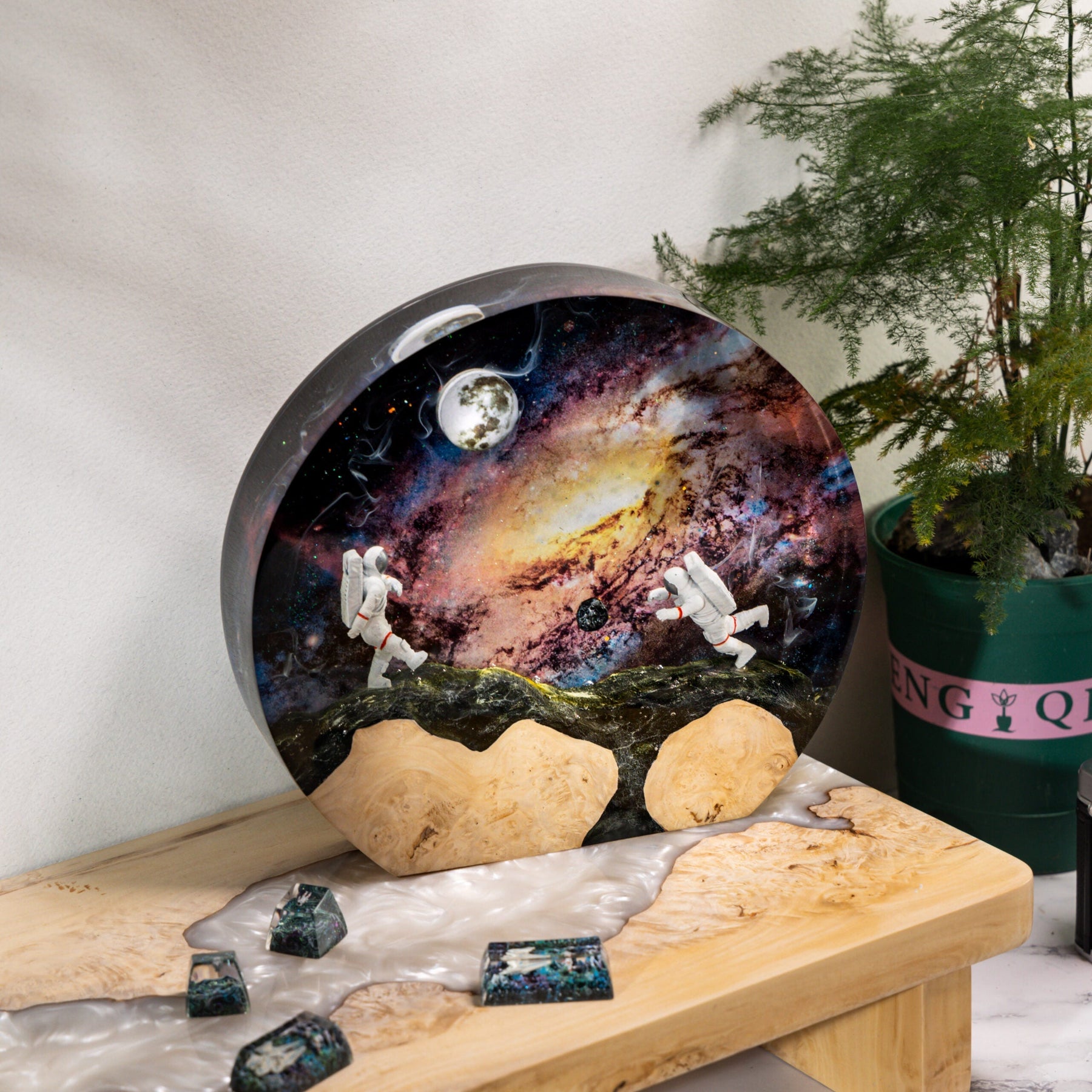 Bring the wonder of space into your home or office with the “Astronauts in Interstellar Space” Epoxy Lamp, a mesmerizing piece that invites you to dream beyond the confines of Earth and embrace the limitless potential of the cosmos.