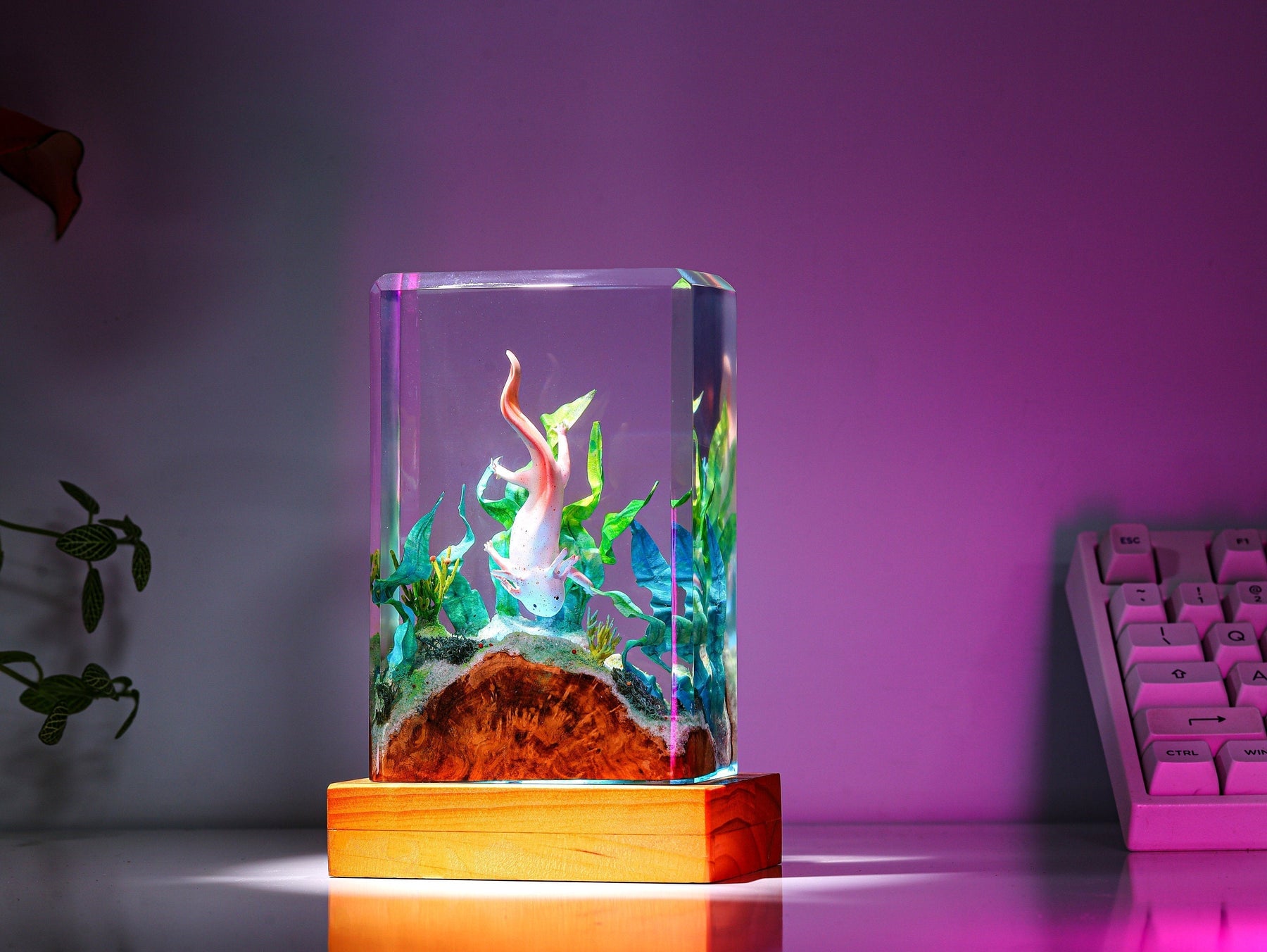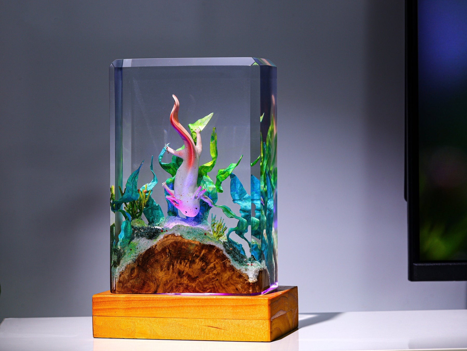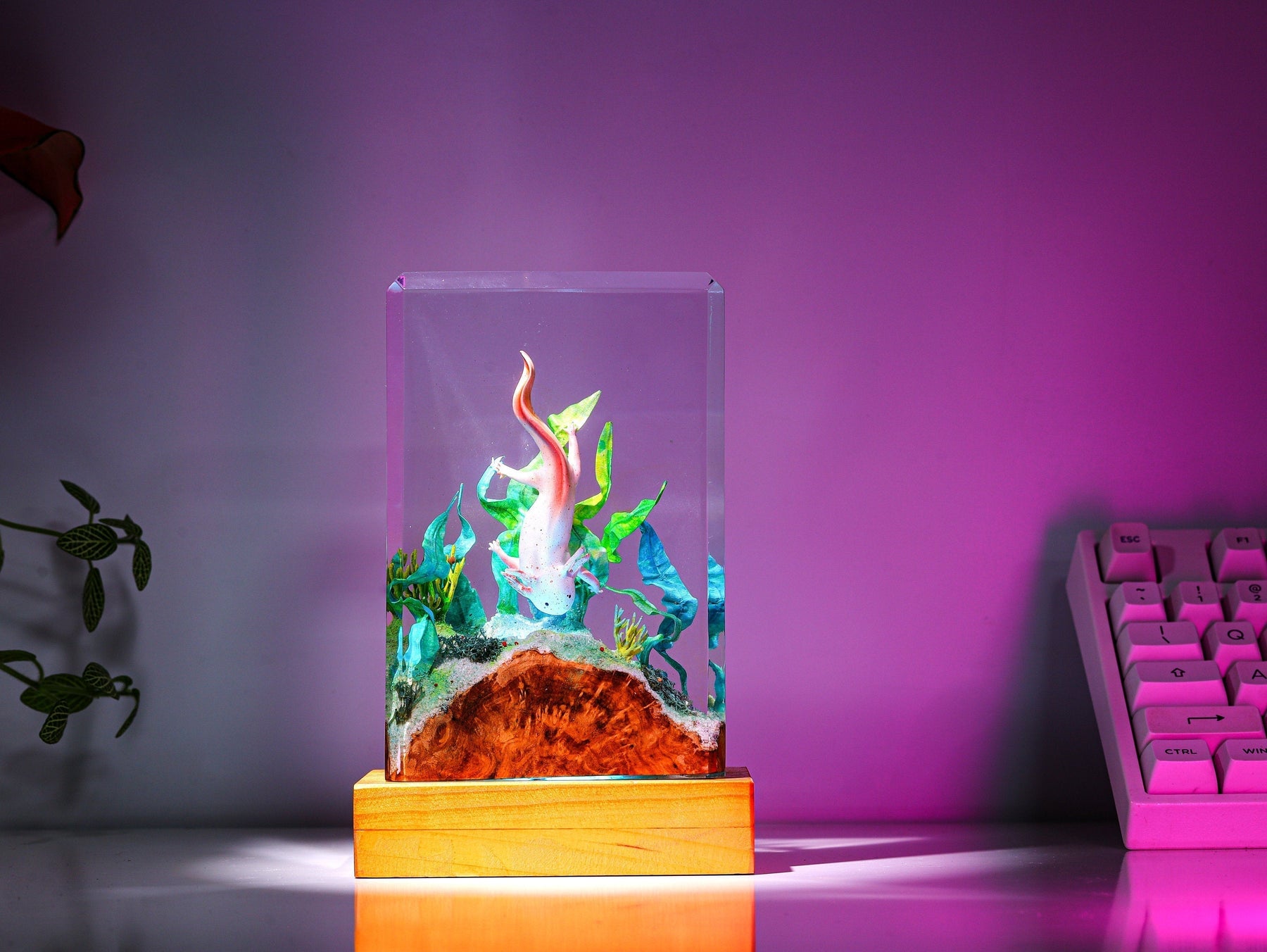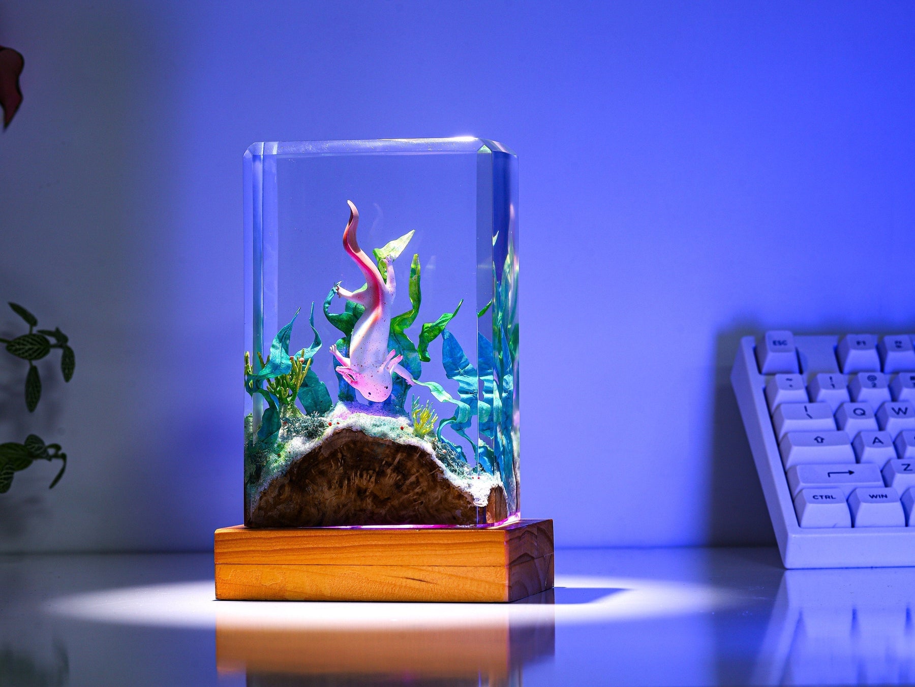 Axolotl Epoxy lamp: One-of-a-kind gift for axolotl lovers