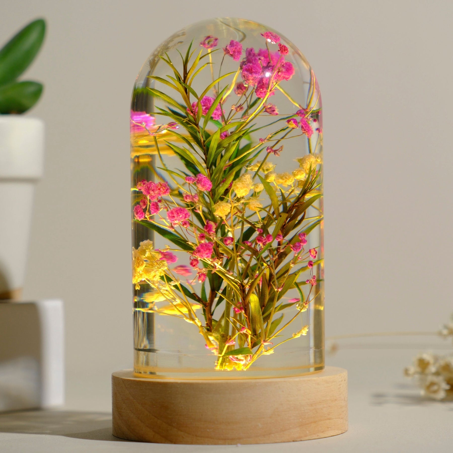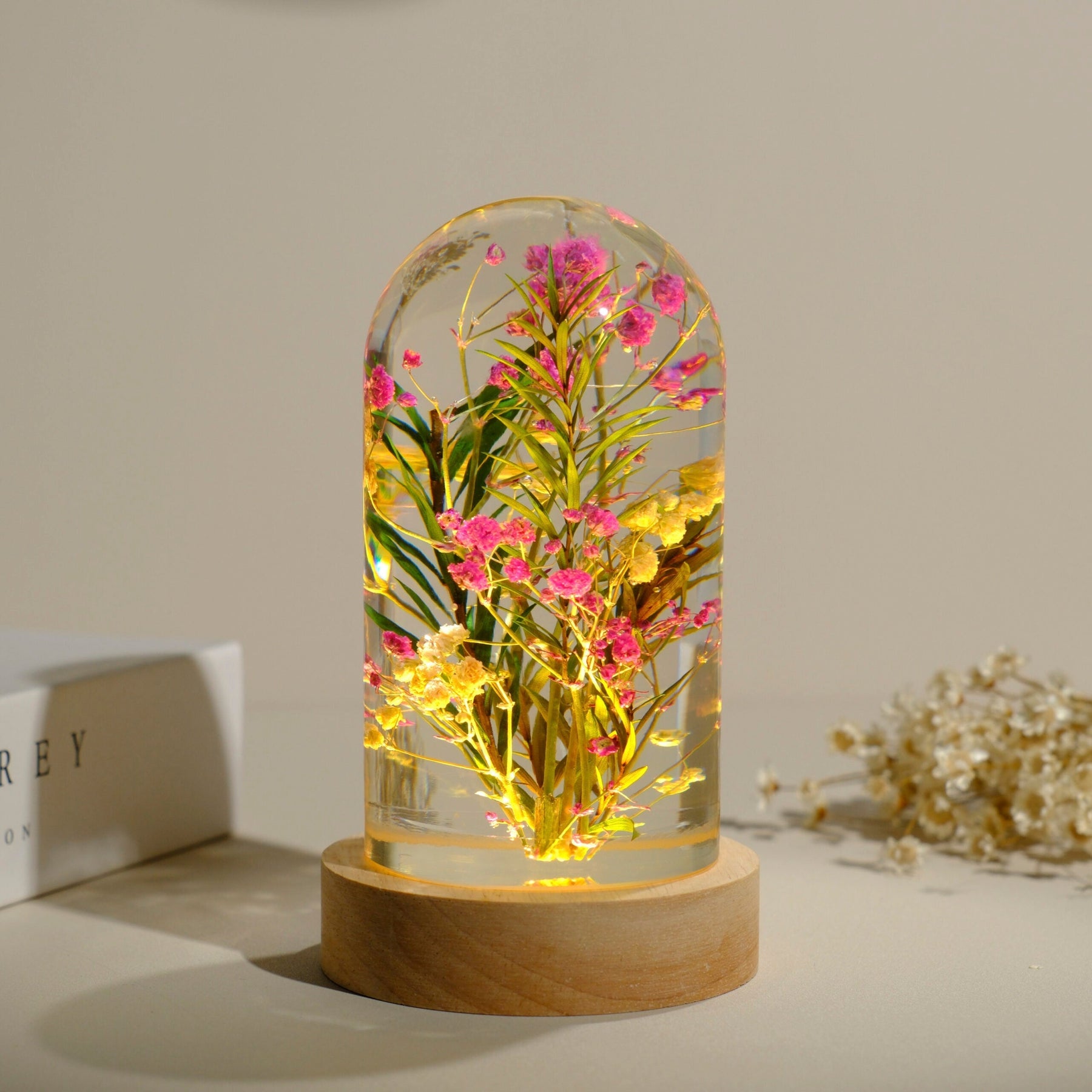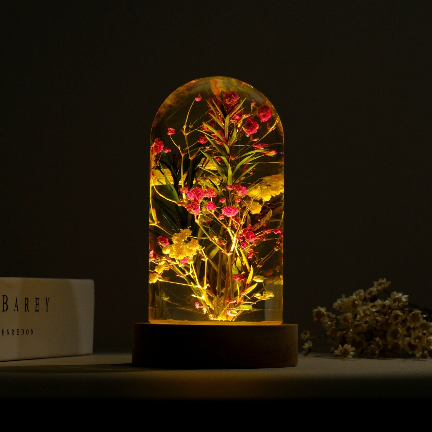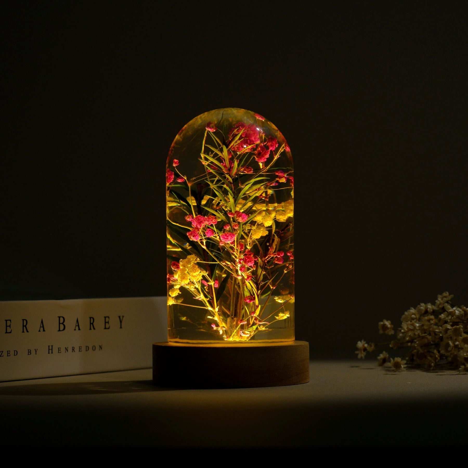 A dried flower night light merges the natural beauty of preserved dried flowers with the practicality of a night light. It offers soft, warm illumination, making it an ideal addition to bedrooms, living spaces, or special events. These night lights are not only visually appealing but also long-lasting, serving as both a decorative piece and a source of gentle light. Dried flower night lights are a unique way to infuse your space with a touch of nature and nostalgia, making them a thoughtful and memorable gift choice.