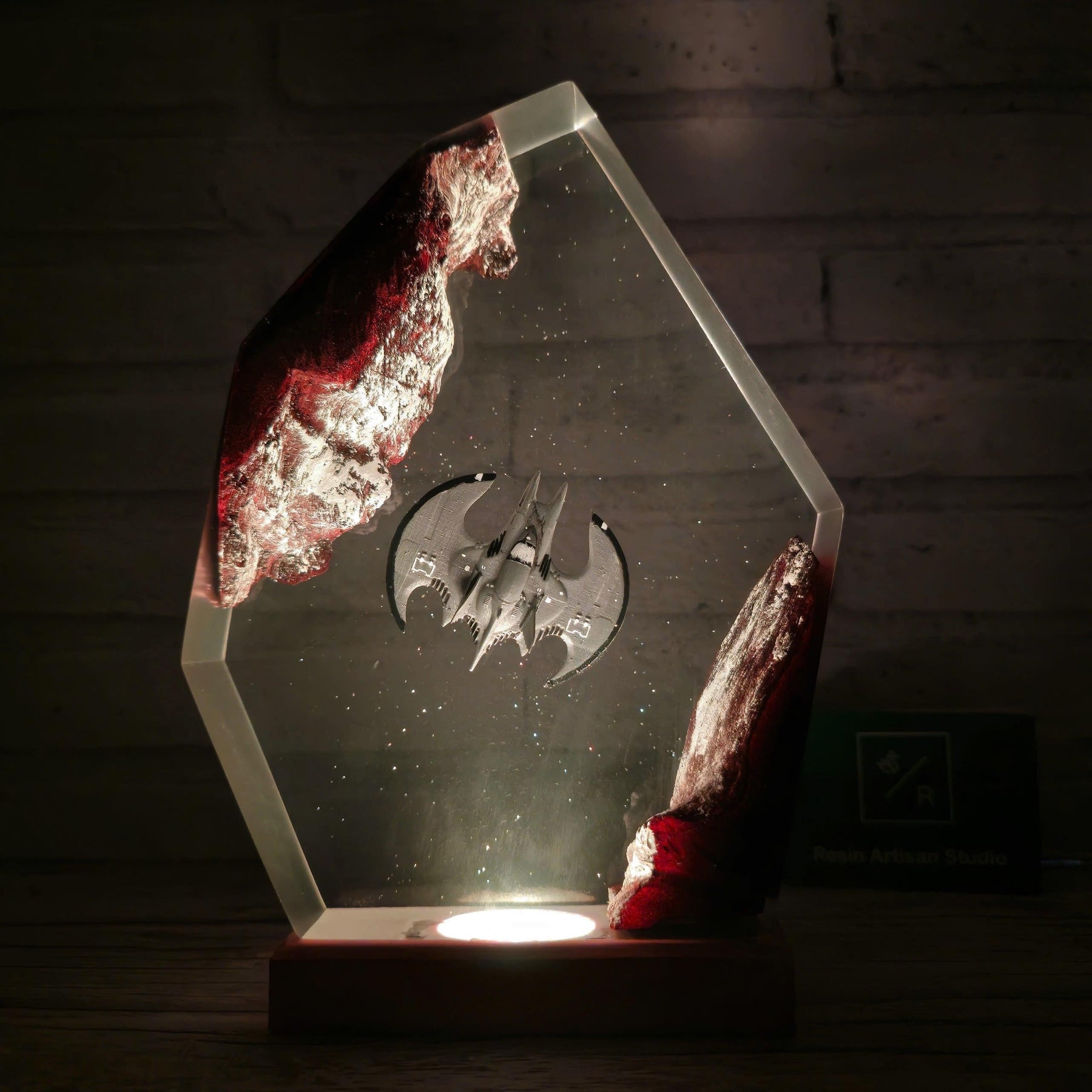 Embark on a mesmerizing journey as you gaze into the depths of this enchanting lamp. Suspended in a galaxy of epoxy resin, miniature astronauts float weightlessly, exploring the mysteries of interstellar space. Their presence sparks wonder and ignites your imagination, as if you've joined them on their cosmic odyssey.