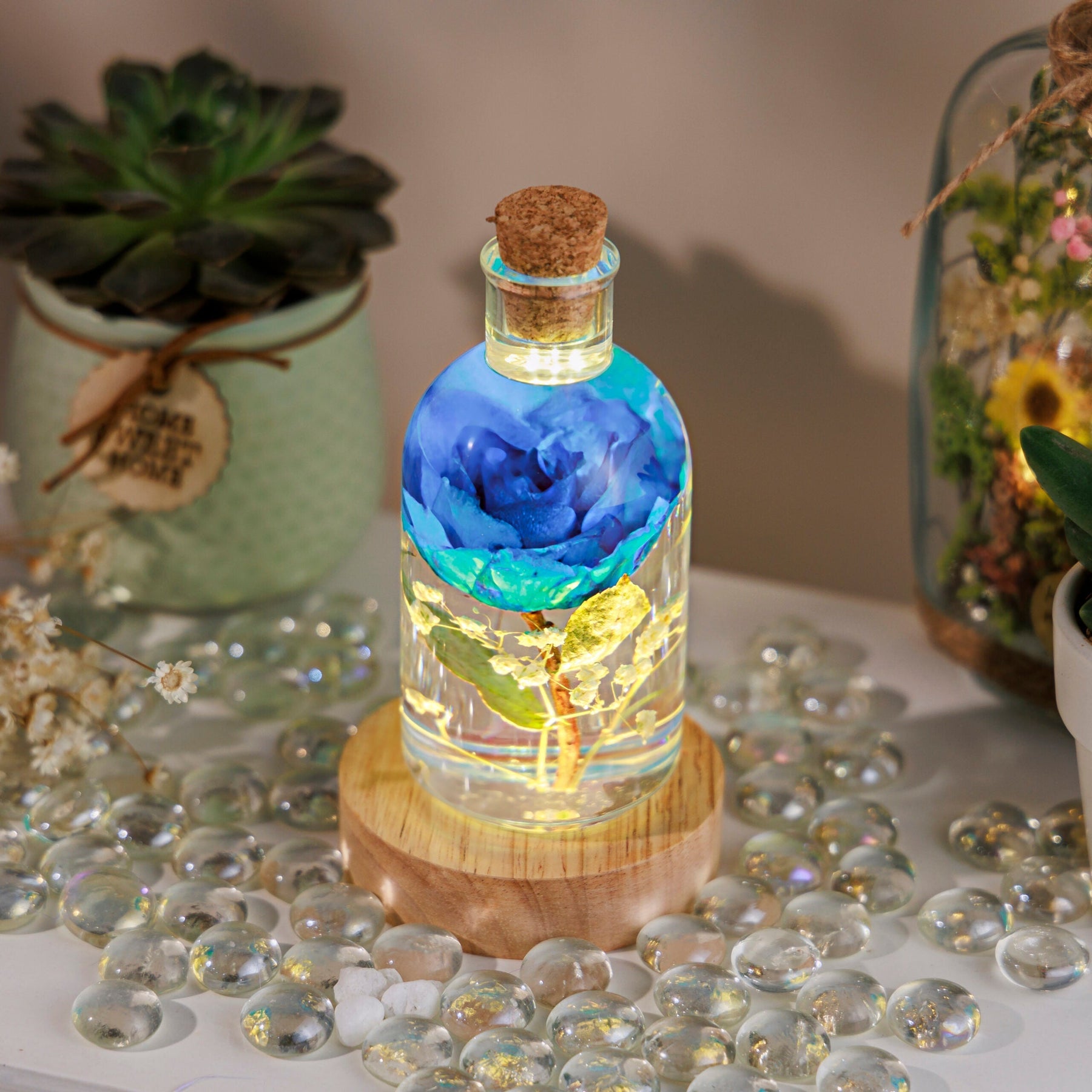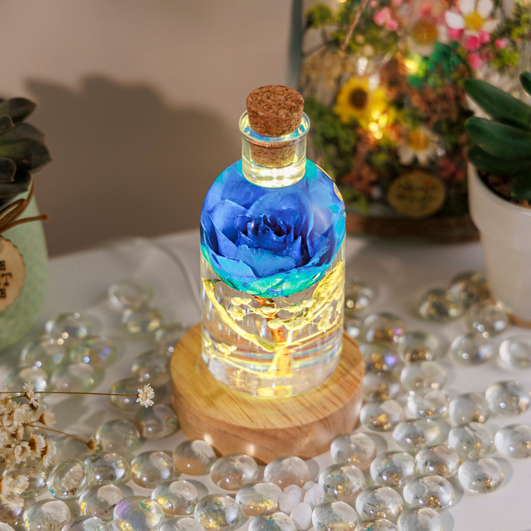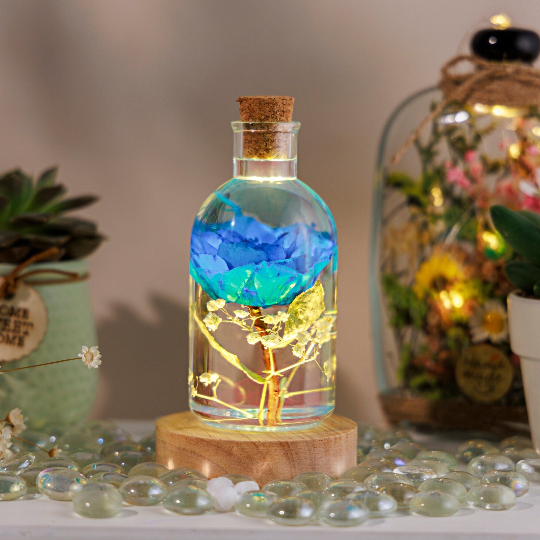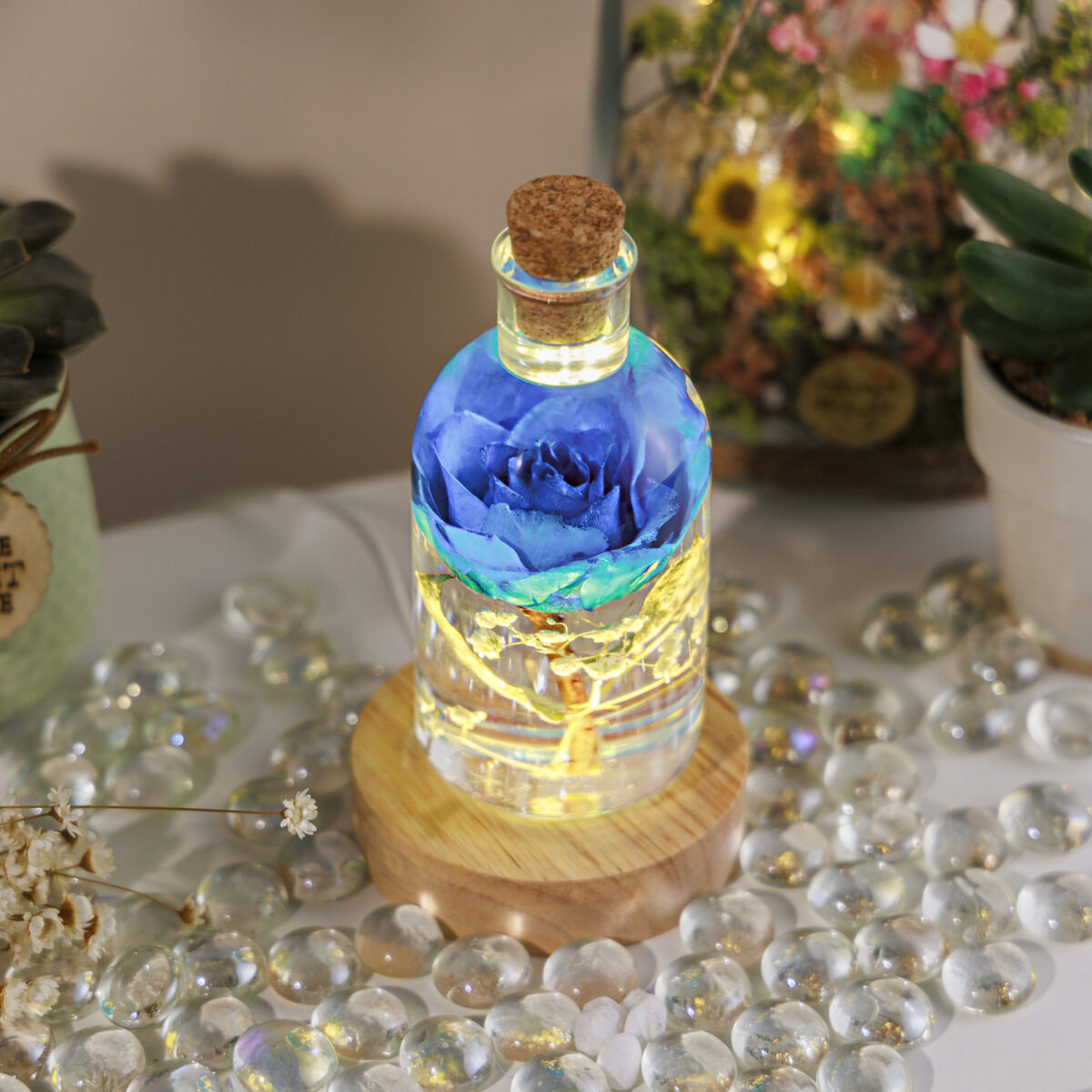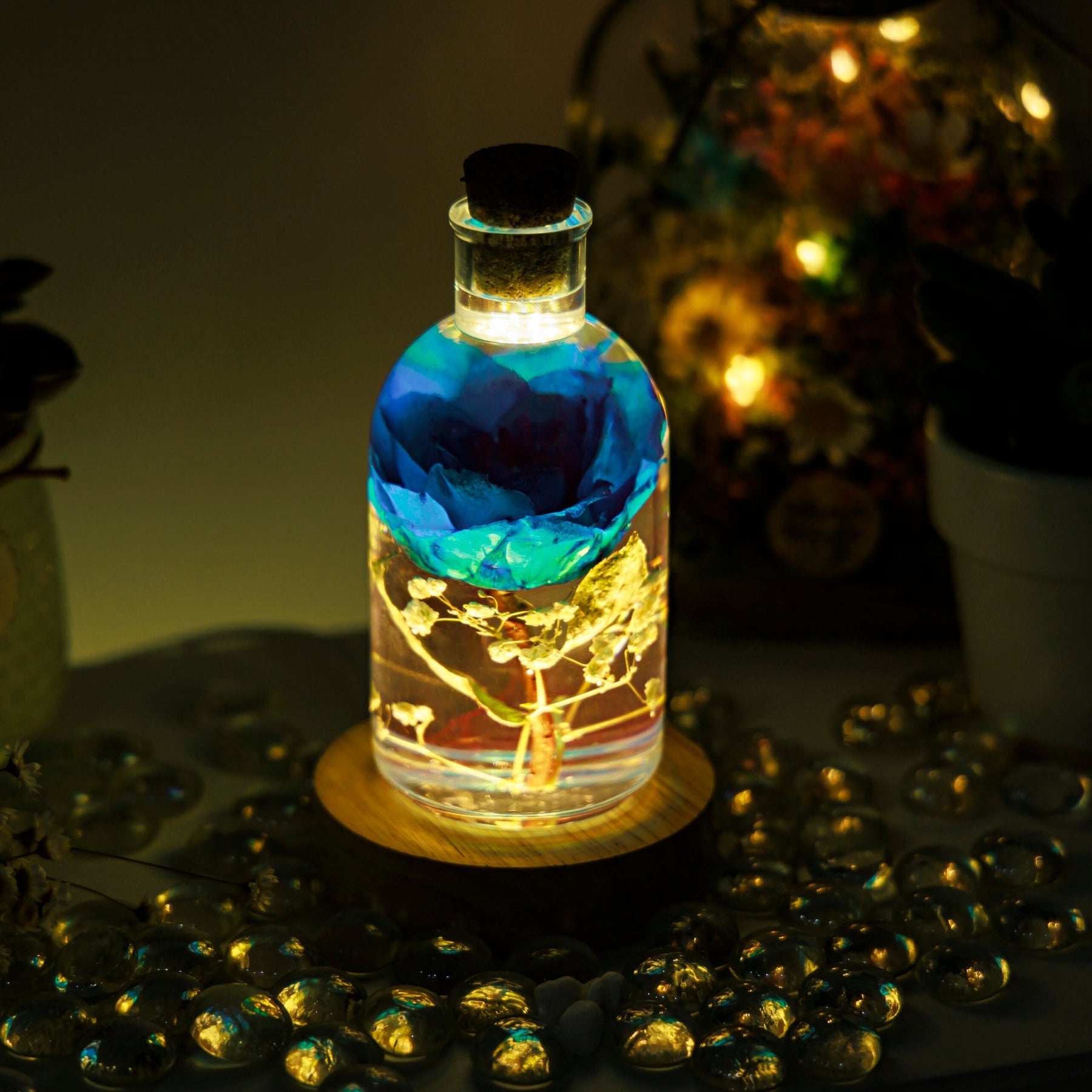 The Blue Rose Flower Night Light, with its enduring beauty and soothing glow, symbolizes the idea of endless love. This night light can serve as a beautiful reminder of the eternal nature of love, making it a thoughtful gift for expressing deep and lasting affection for someone special.