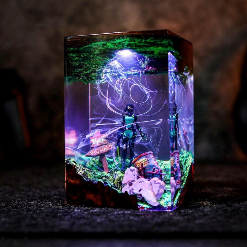 Presenting the Viper Valorant lamp, a beautifully crafted piece made from fine wood and resin. This lamp captures Viper’s iconic design with meticulous attention to detail.