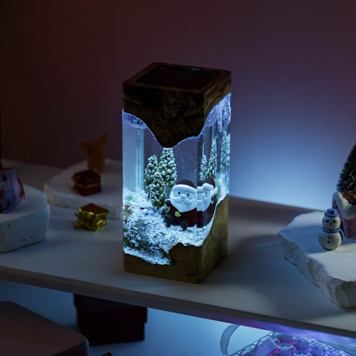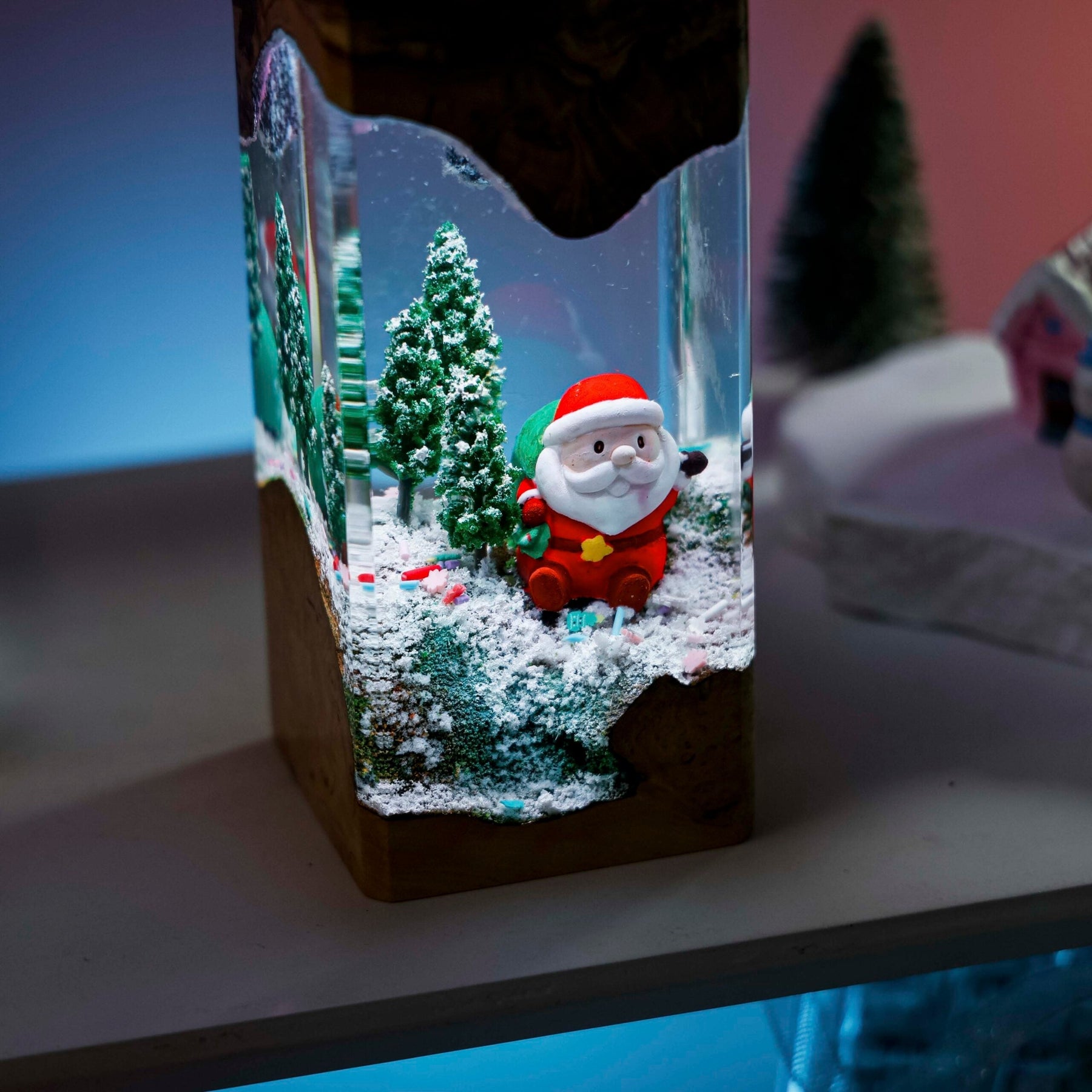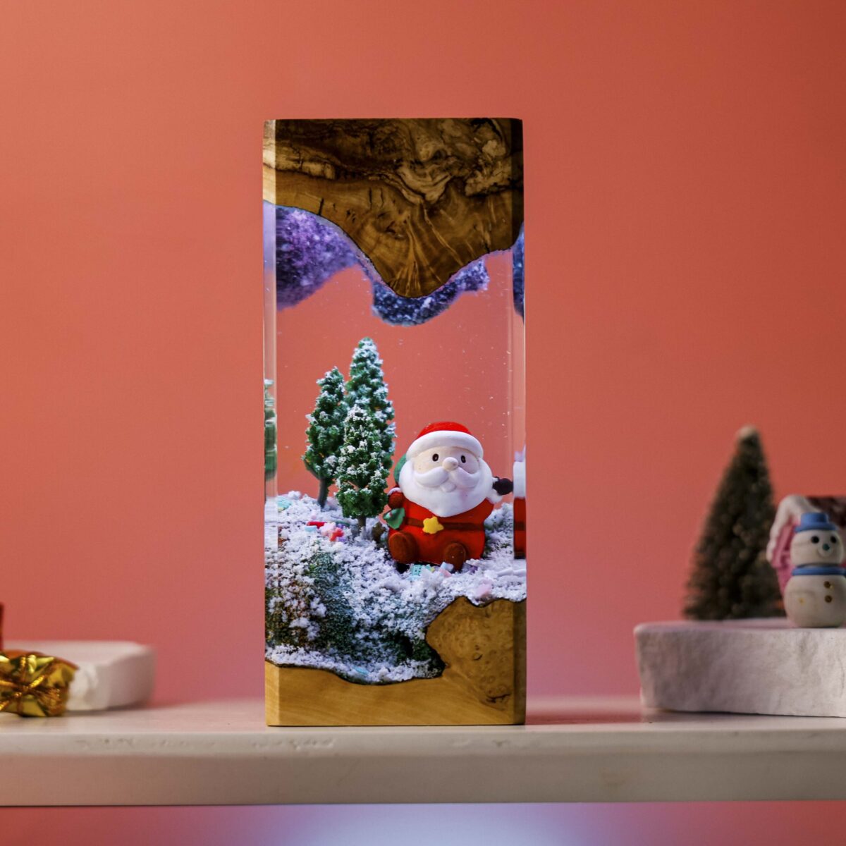 The SNOWMAN SANTA Resin Lamp is a charming holiday decor piece crafted from durable resin. Combining the christmas and Santa Claus, the lamp emits a warm glow through soft LED lighting. Perfect for tabletops or mantels, this decoration adds a touch of holiday magic to any room, creating a cozy and inviting atmosphere.