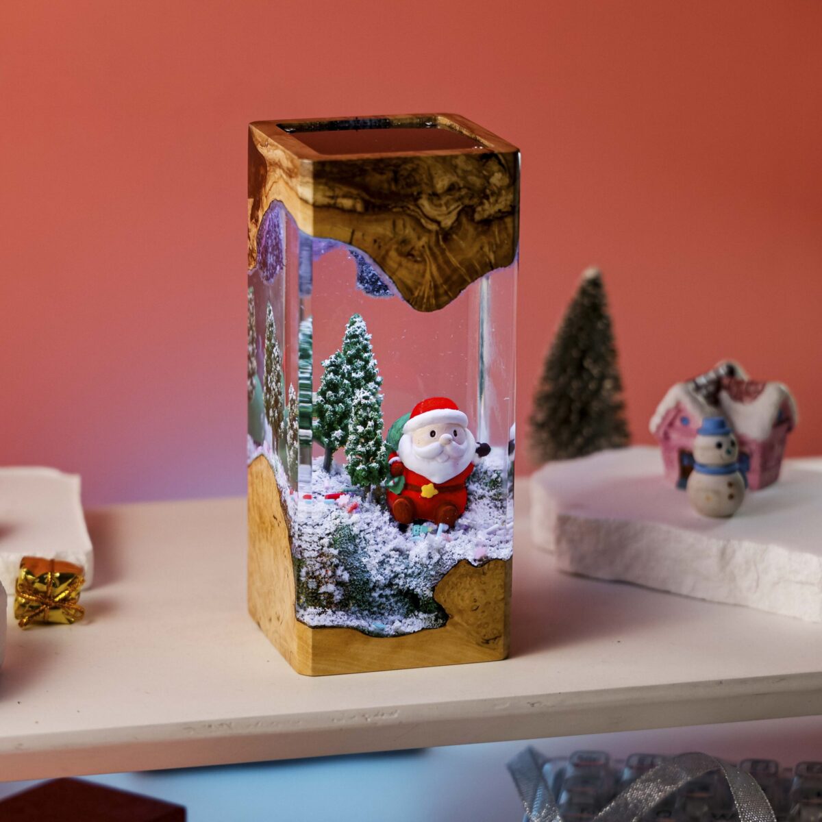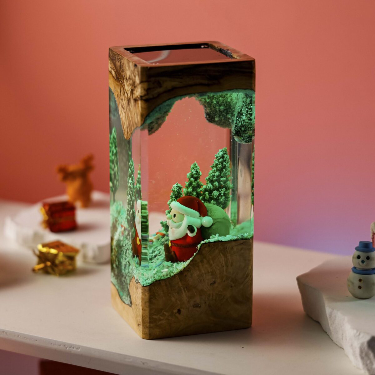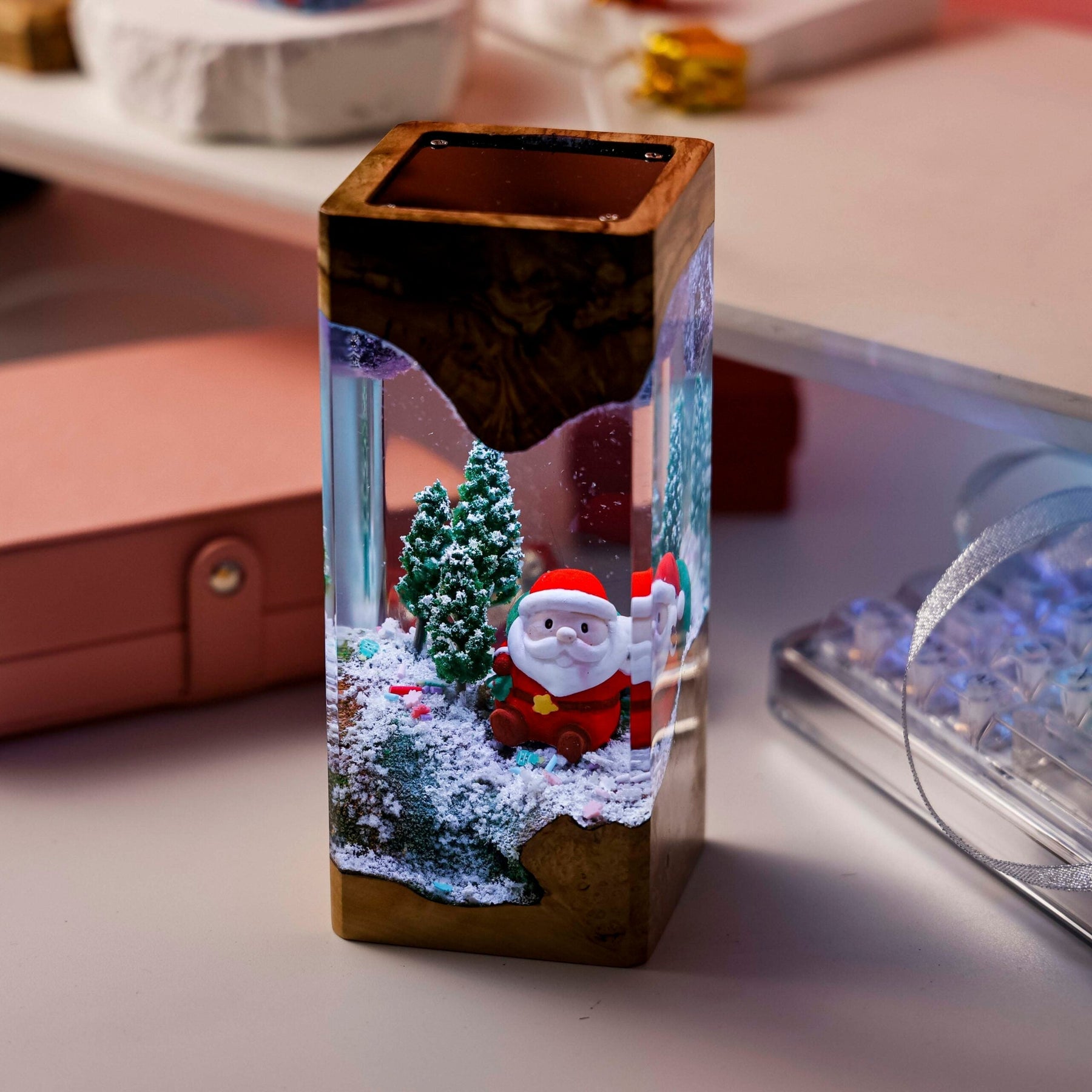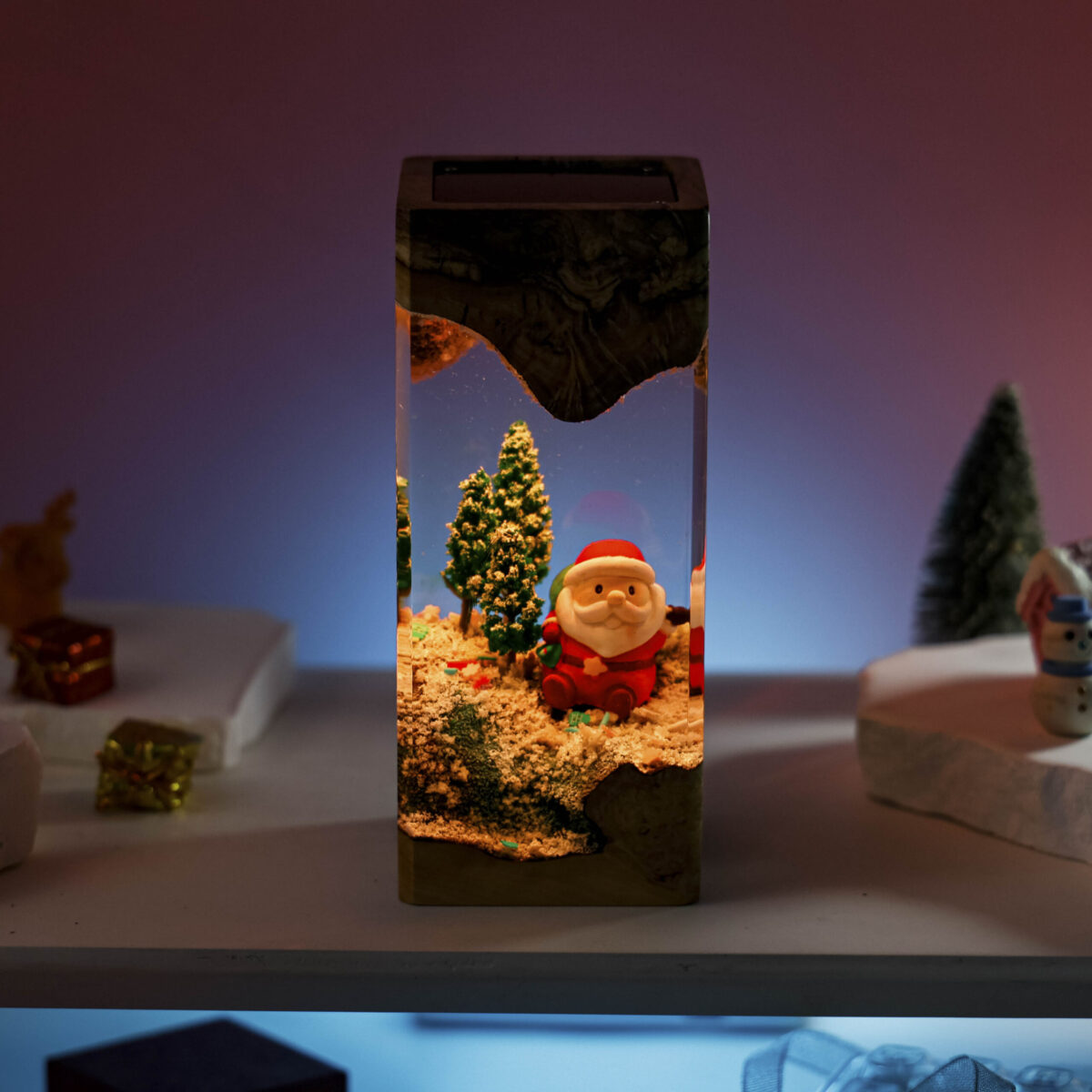 The SNOWMAN SANTA Resin Lamp is a charming holiday decor piece crafted from durable resin. Combining the christmas and Santa Claus, the lamp emits a warm glow through soft LED lighting. Perfect for tabletops or mantels, this decoration adds a touch of holiday magic to any room, creating a cozy and inviting atmosphere.