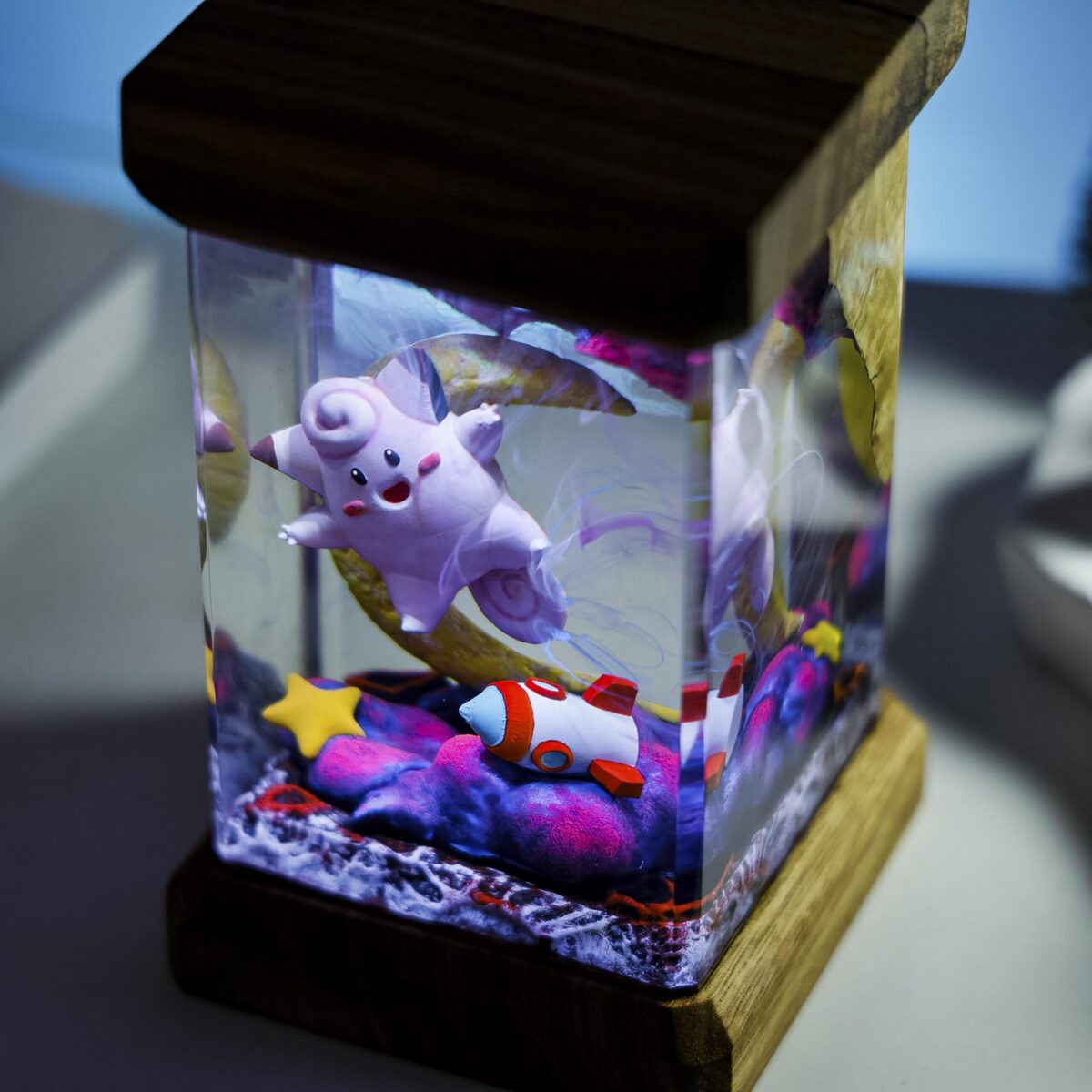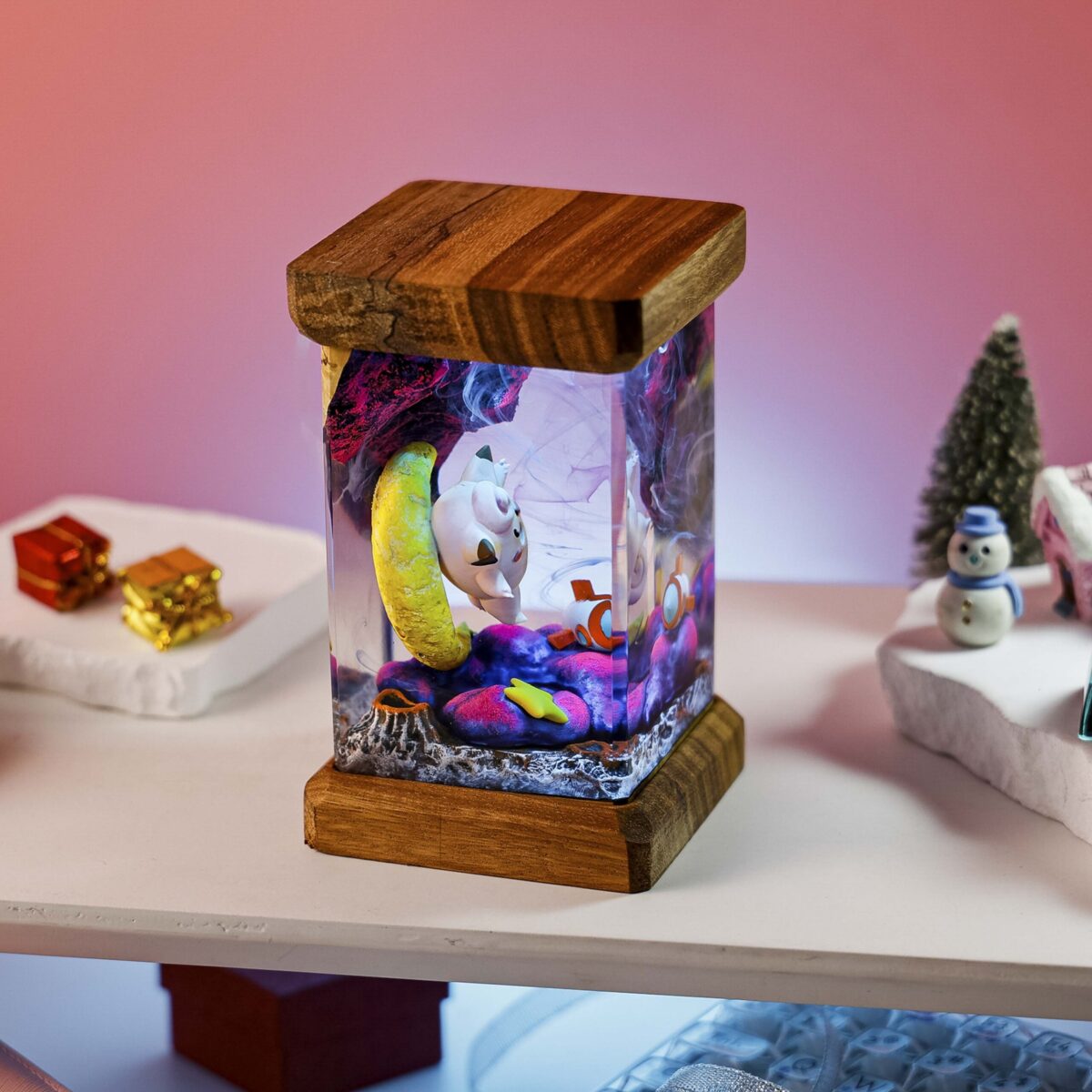 A Pokémon resin lamp is a charming fusion of art and functionality. Crafted using epoxy resin, these lamps showcase intricate designs of popular Pokémon characters or scenes. The molding process allows for detailed and vibrant creations, capturing the essence of the Pokémon universe.