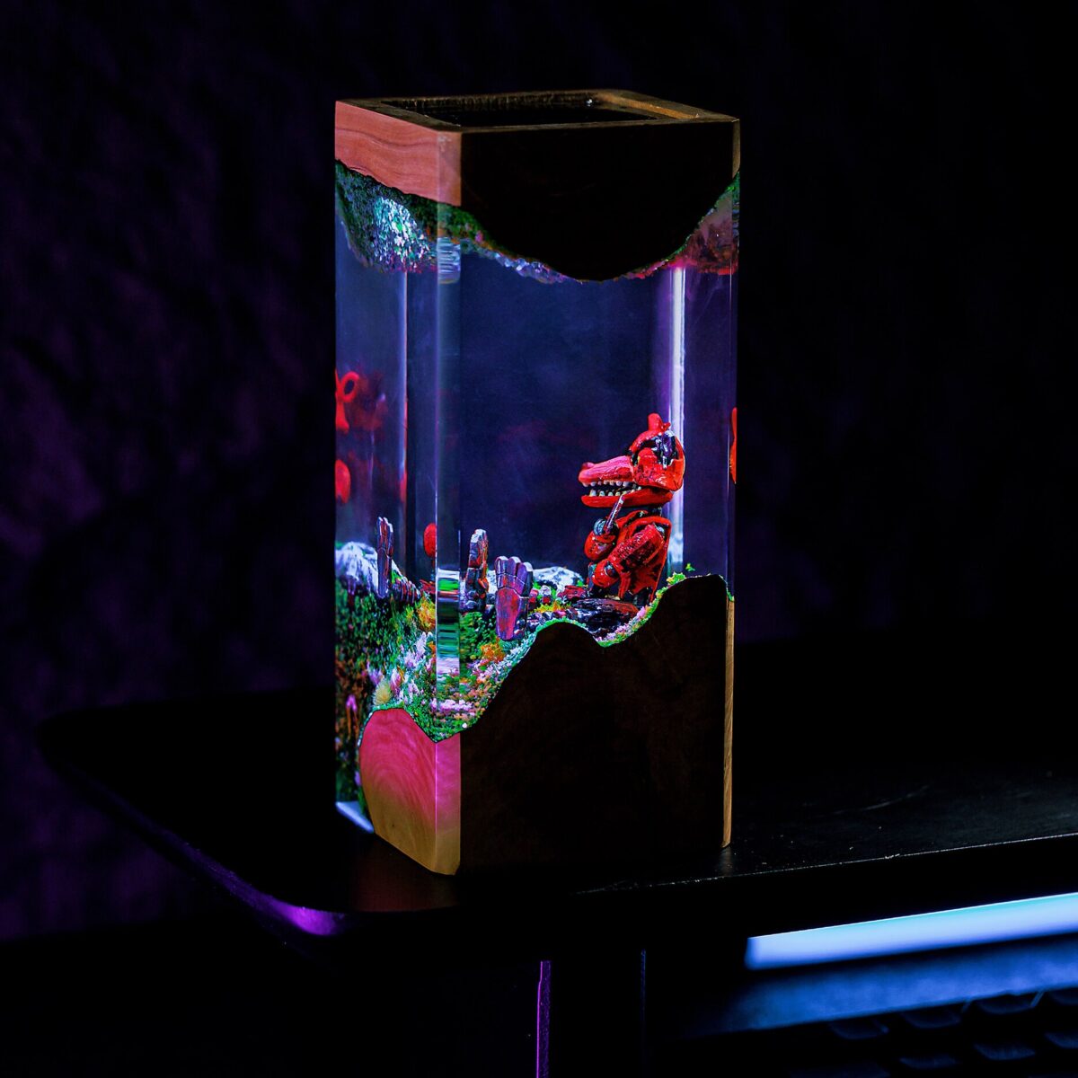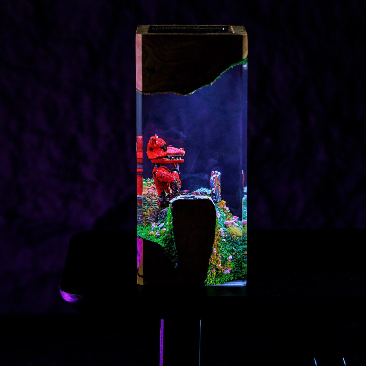 The Creepy Plushies Resin Lamp shares an eerie and unsettling vibe similar to the popular video game series, Five Nights at Freddy’s (FNAF). With its quirky design, it resonates with the eerie animatronic characters in FNAF, making it a whimsical addition to a fan’s collection of FNAF-inspired items. The lamp’s unconventional aesthetics offer a playful nod to the creepy and darkly humorous atmosphere of the game.