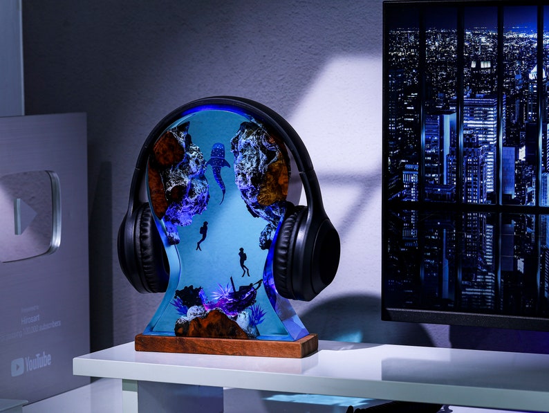 This custom headphone stand with a whale shark design is not only a practical accessory for your desk but also a beautiful and unique piece of art that can enhance the ambiance of your room.