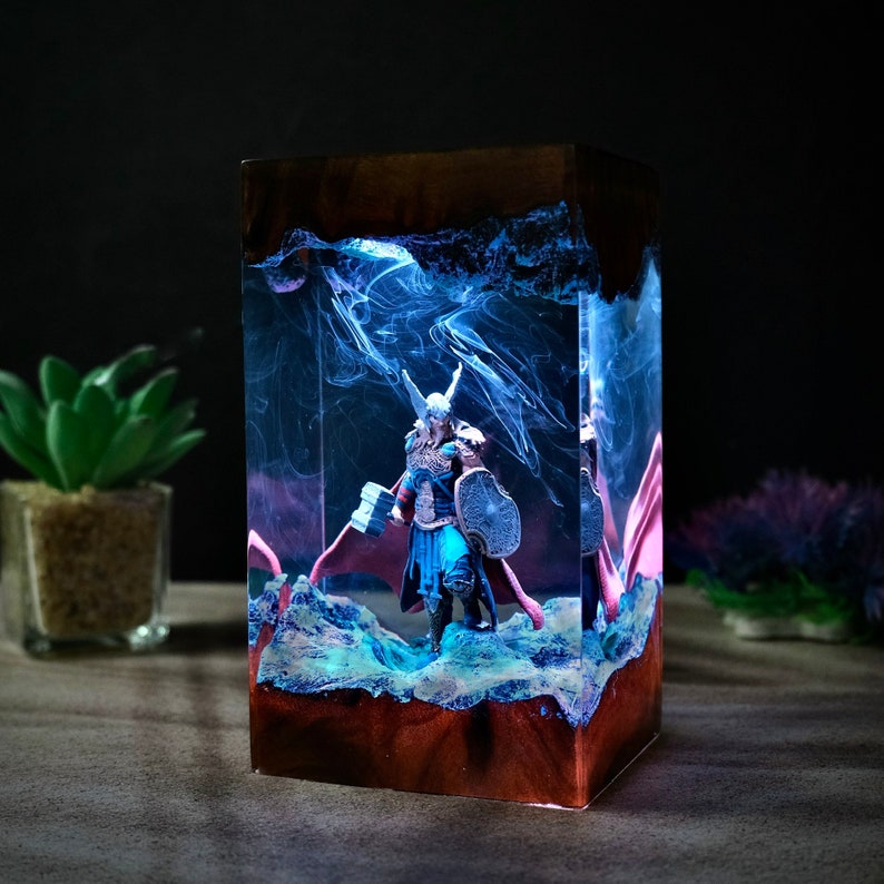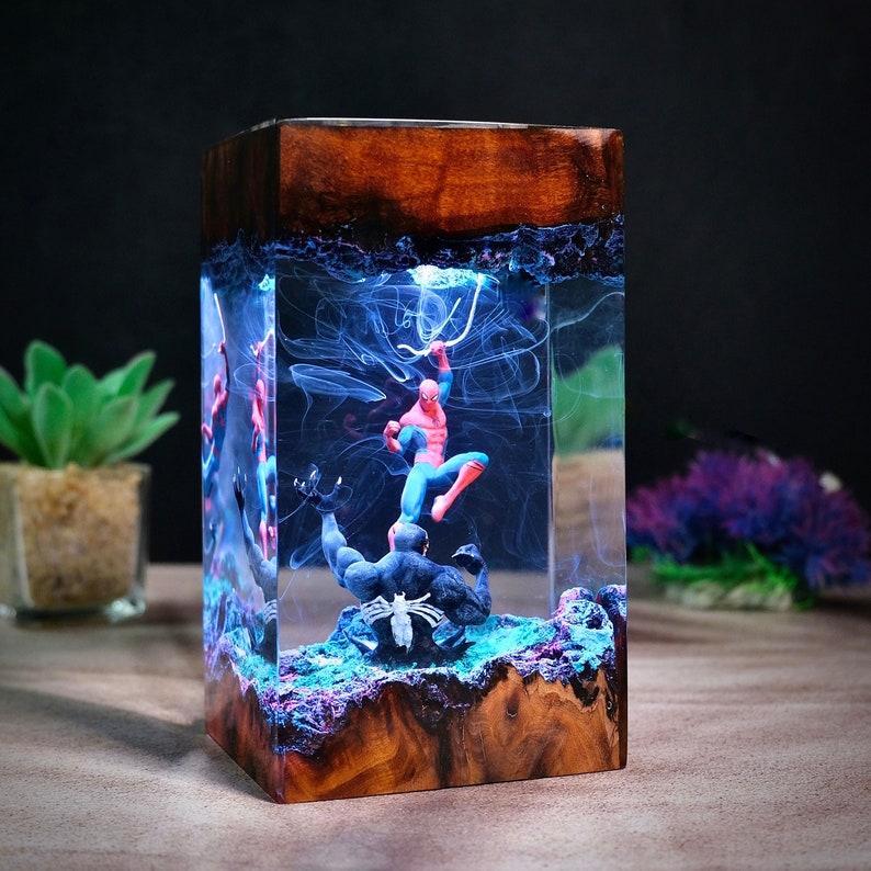 Transform your space with a Personalized Super Hero Night Light, designed to showcase your favorite superhero with a custom flair. Handcrafted with care using wood and epoxy resin, this night light allows you to select your superhero of choice and personalize it with any name, making it a truly unique piece.