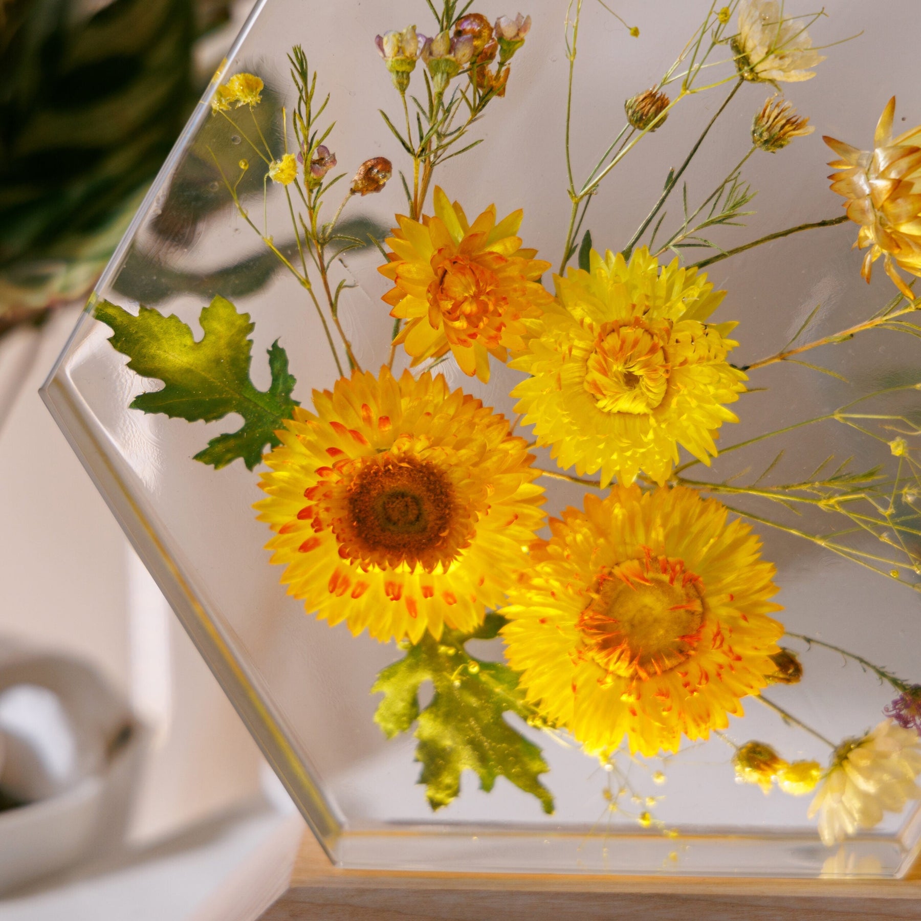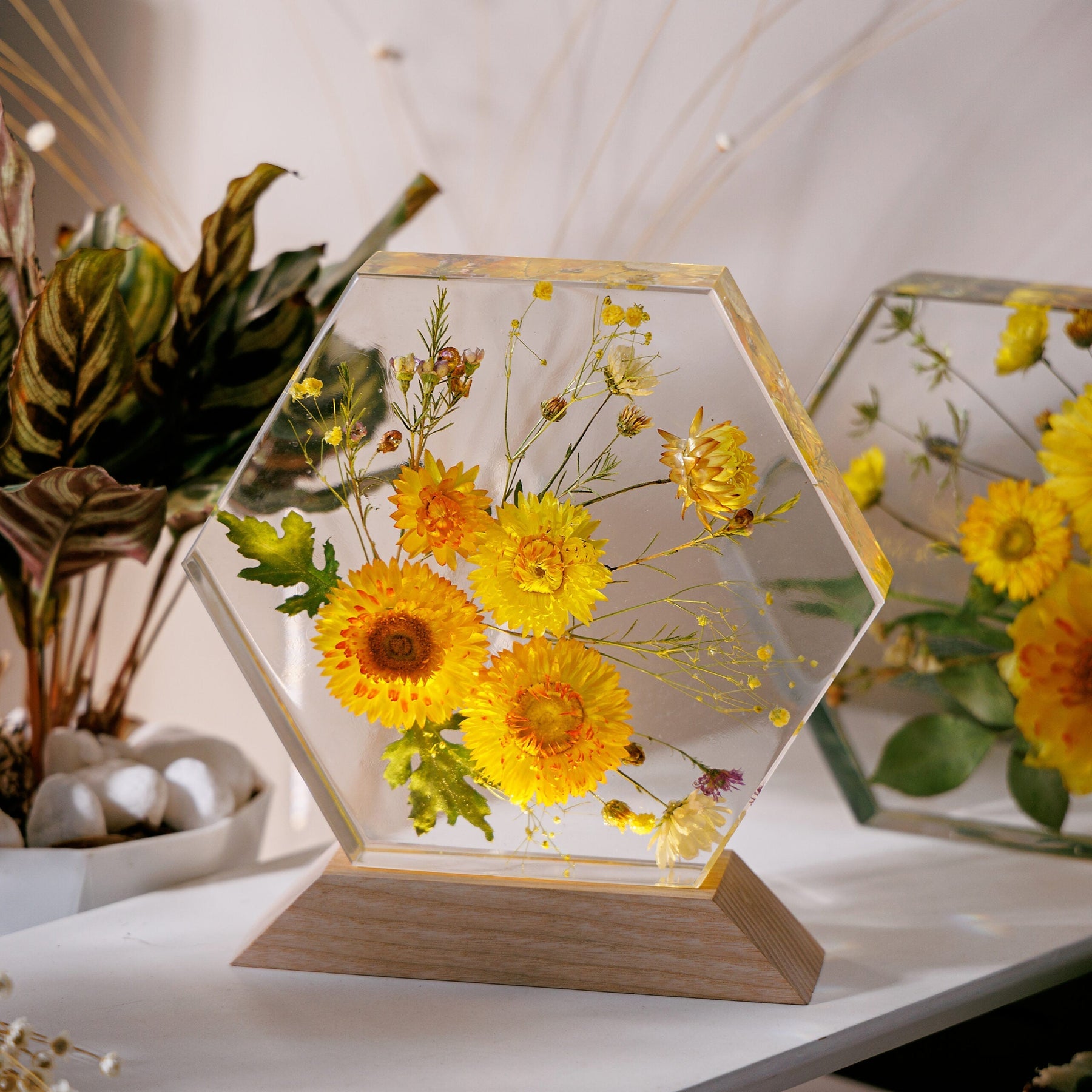 The Golden Daisy Flower Resin Lamp can be seen as a captivating tribute to the enduring beauty of dried flowers. While it is not composed of actual dried flowers, its design reflects the intricate and delicate nature of these preserved blooms. Dried flowers are often cherished for their ability to capture the essence of the natural world long after they’ve faded, and the lamp captures this essence through its resin design.