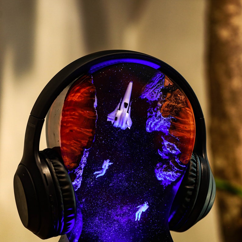 Not only does our Galaxy Night Light and Headphone Stand serve as a functional stand to keep your headphones organized, but it also doubles as a mesmerizing night light. When illuminated, the resin art comes to life, creating a celestial ambiance that transforms your space into a tranquil sanctuary. Whether you're winding down for the night or immersing yourself in your favorite tunes, this versatile piece enhances your experience with its ethereal glow.