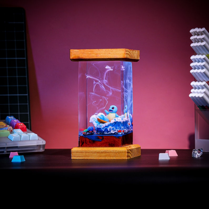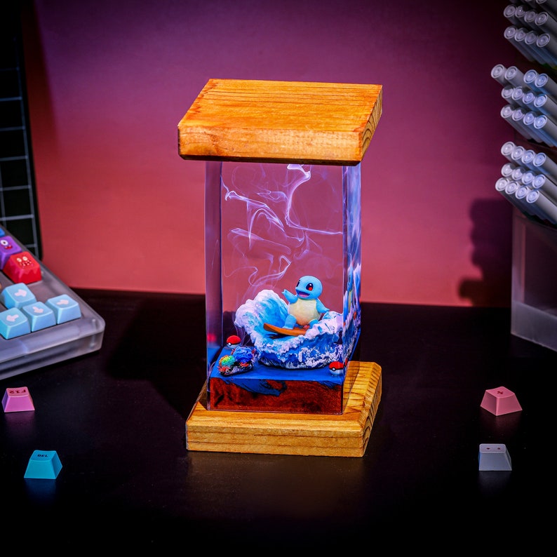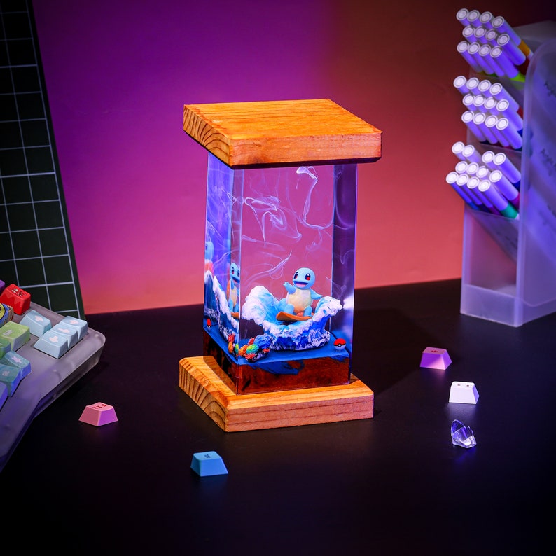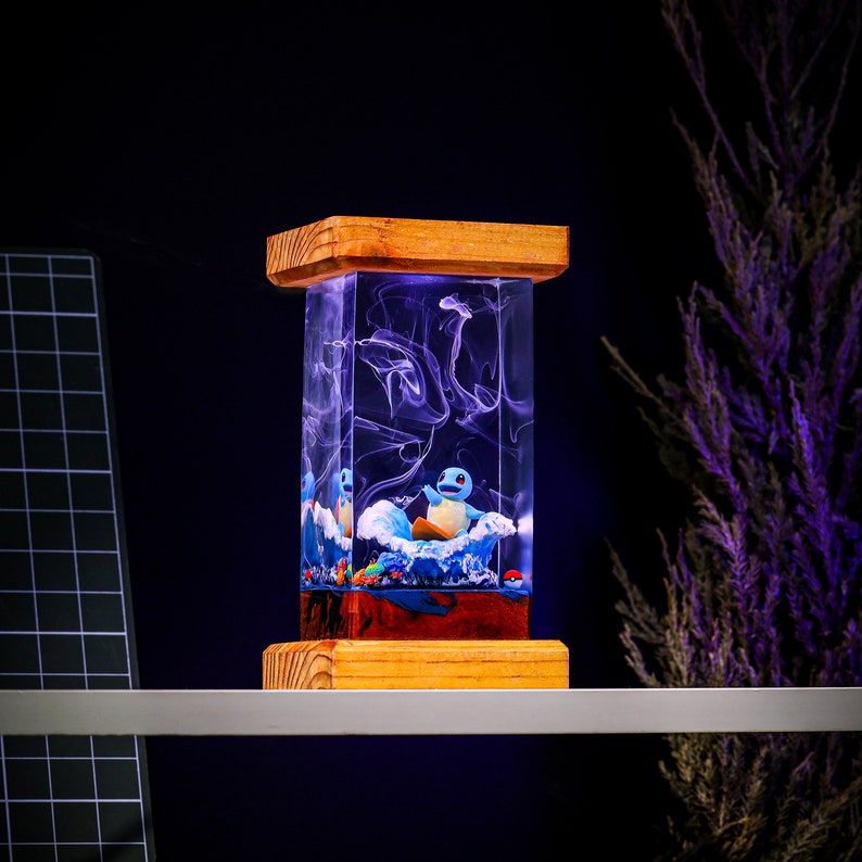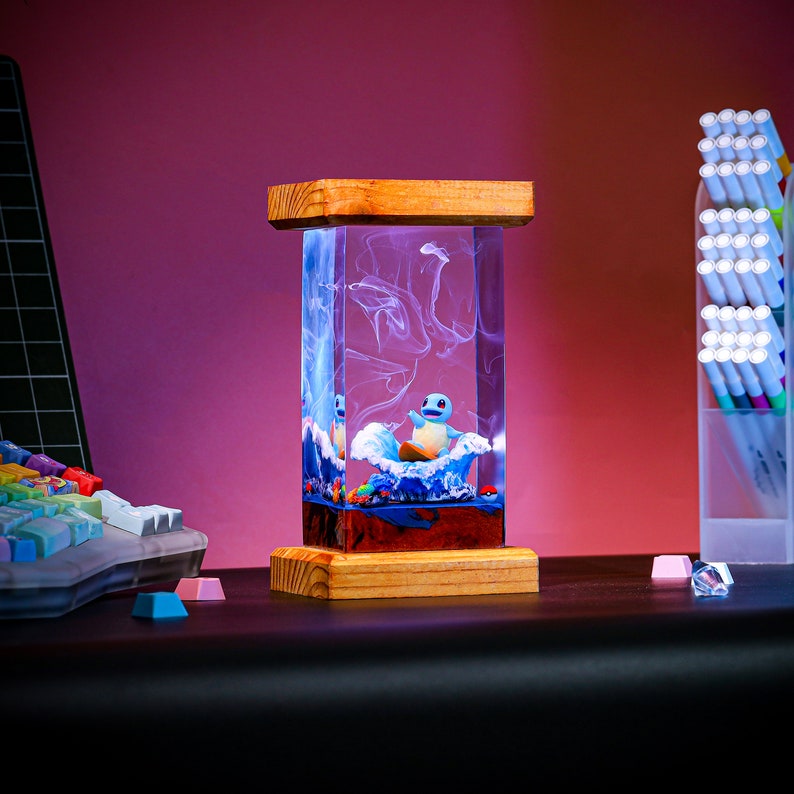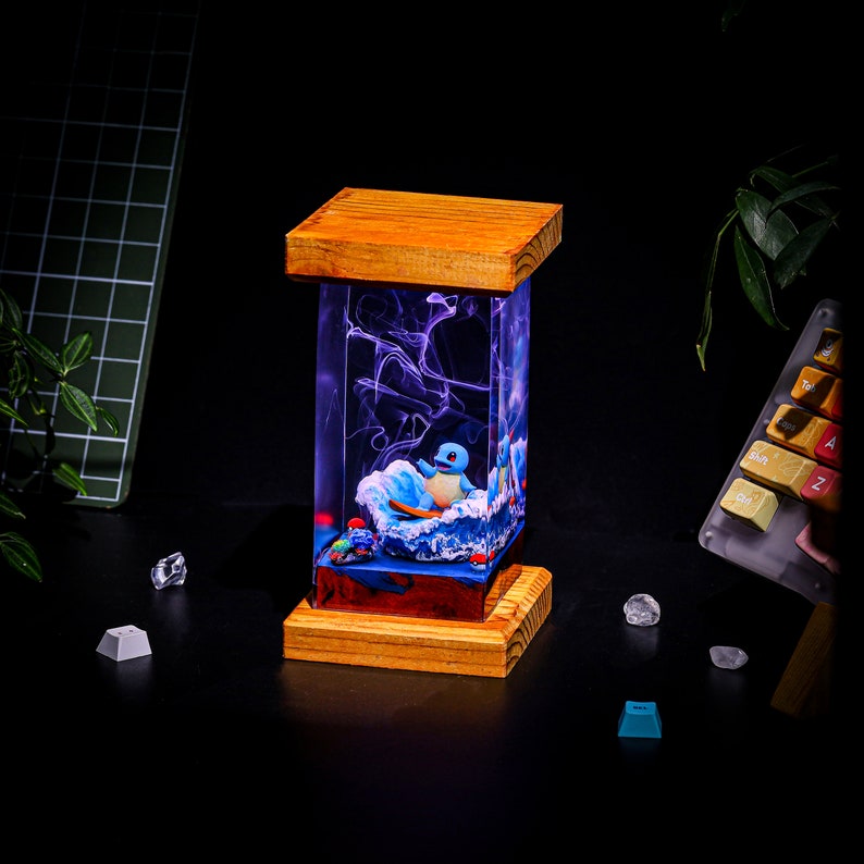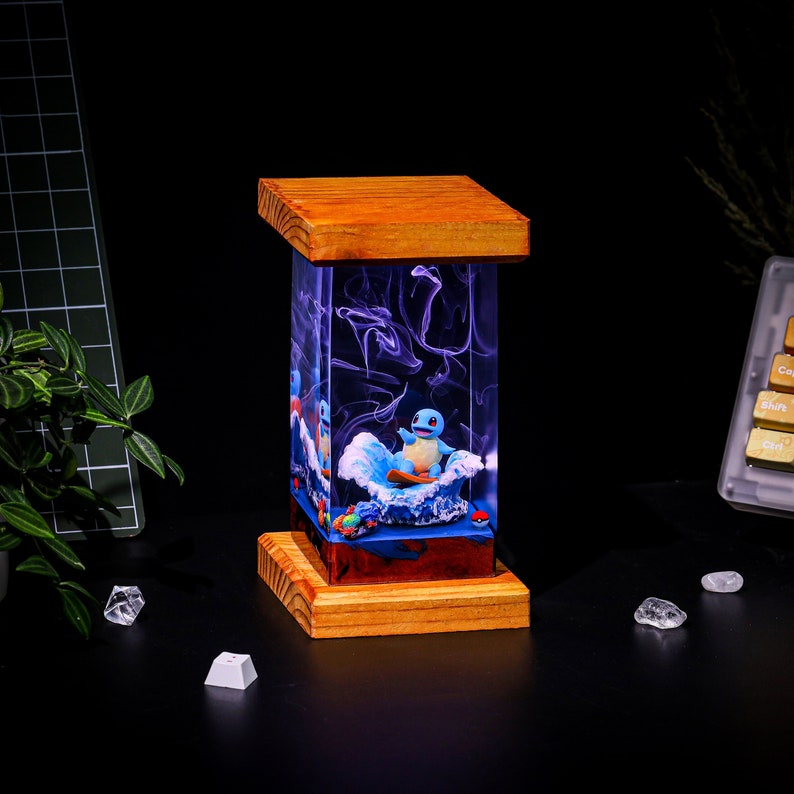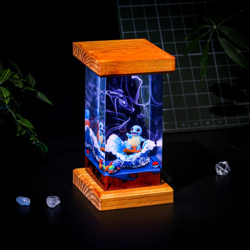 Bring the enchanting world of Pokemon to your bedside with a handcrafted Poke.mon World Night Light made from wood and resin. This isn't your average night light; it's a one-of-a-kind artwork that combines the warmth of wood with the captivating glow of resin, creating a magical portal to the Pokemon universe.