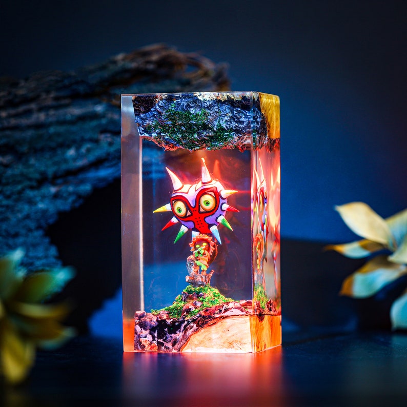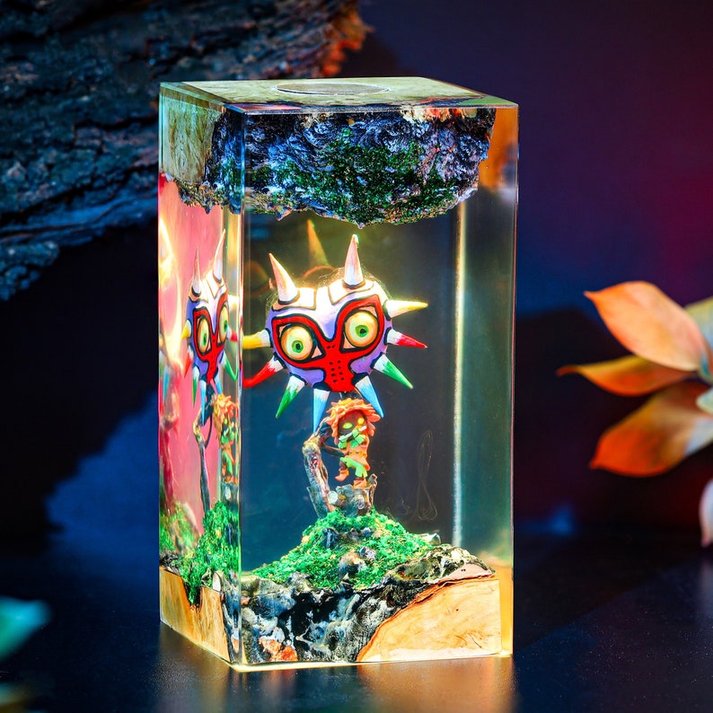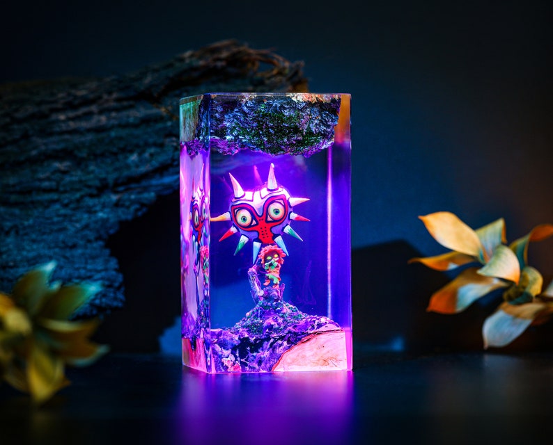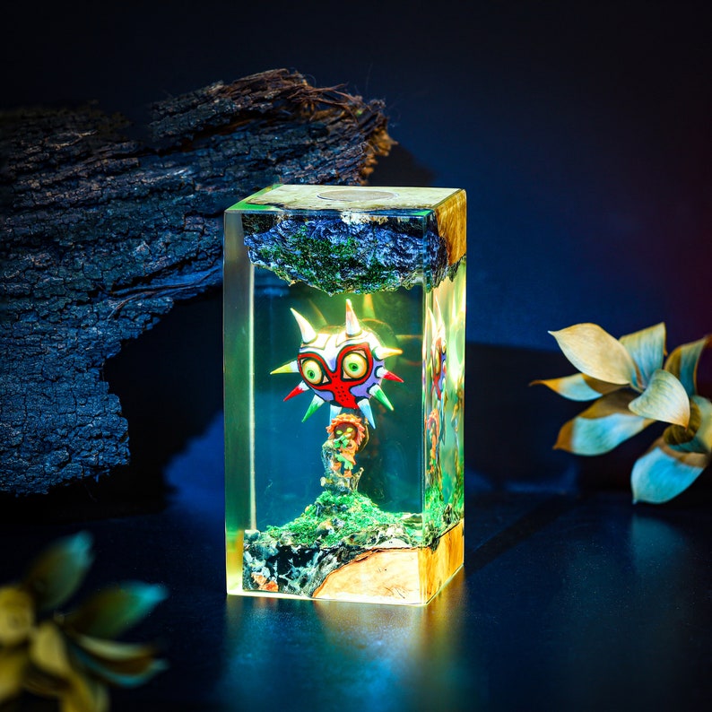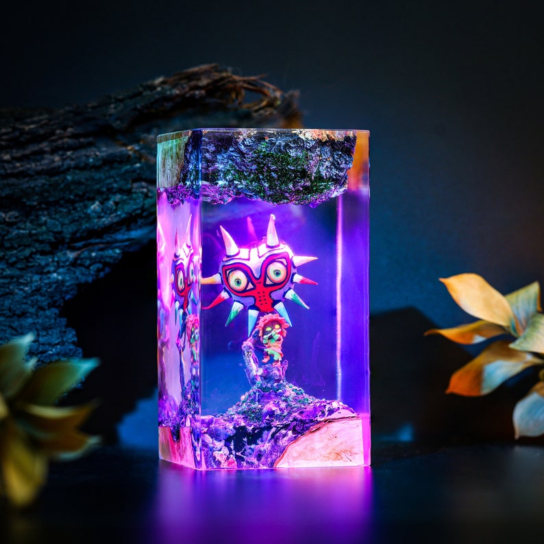 Crafted from resin, these lamps feature a detailed and realistic depiction of the mask, often incorporating LED lights to create a mesmerizing glow