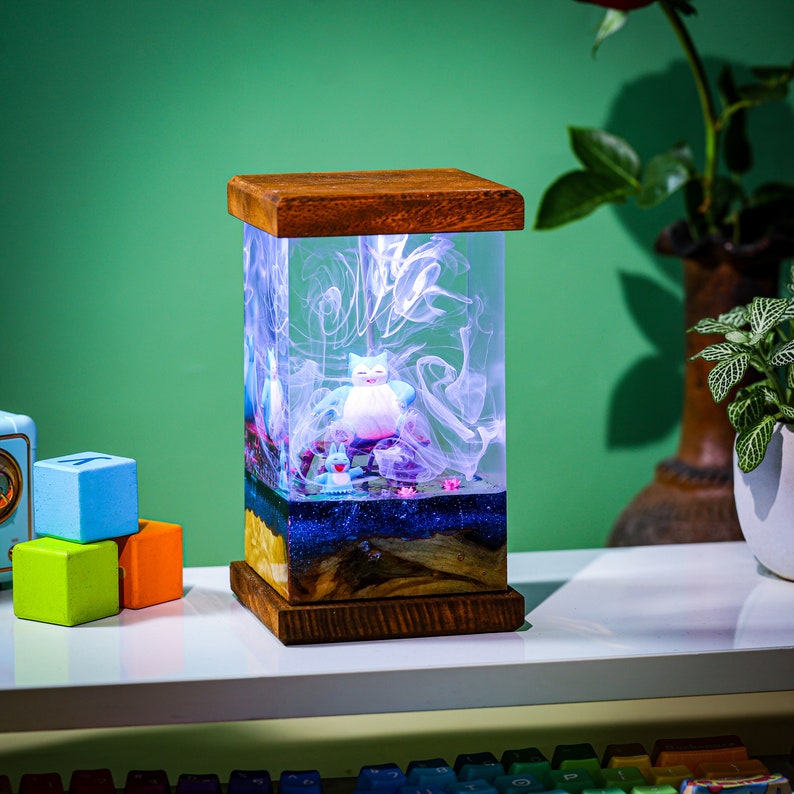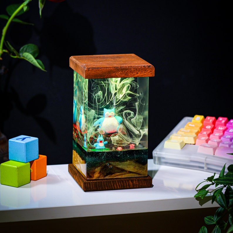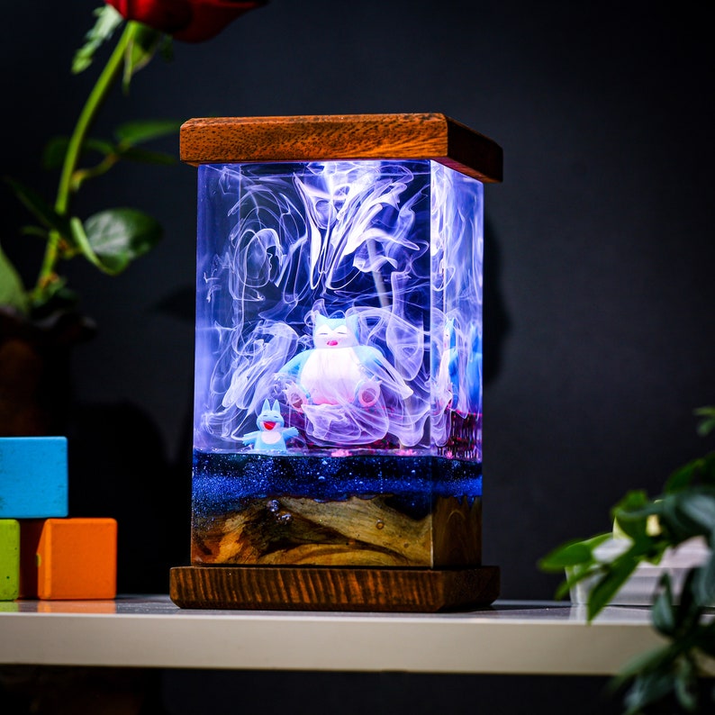 Looking for the perfect night light for the Pokémon trainer in your life? Look no further! Our adorable night lights are handcrafted from warm wood and crystal-clear resin, featuring your favorite Pokémon snoozing soundly inside.