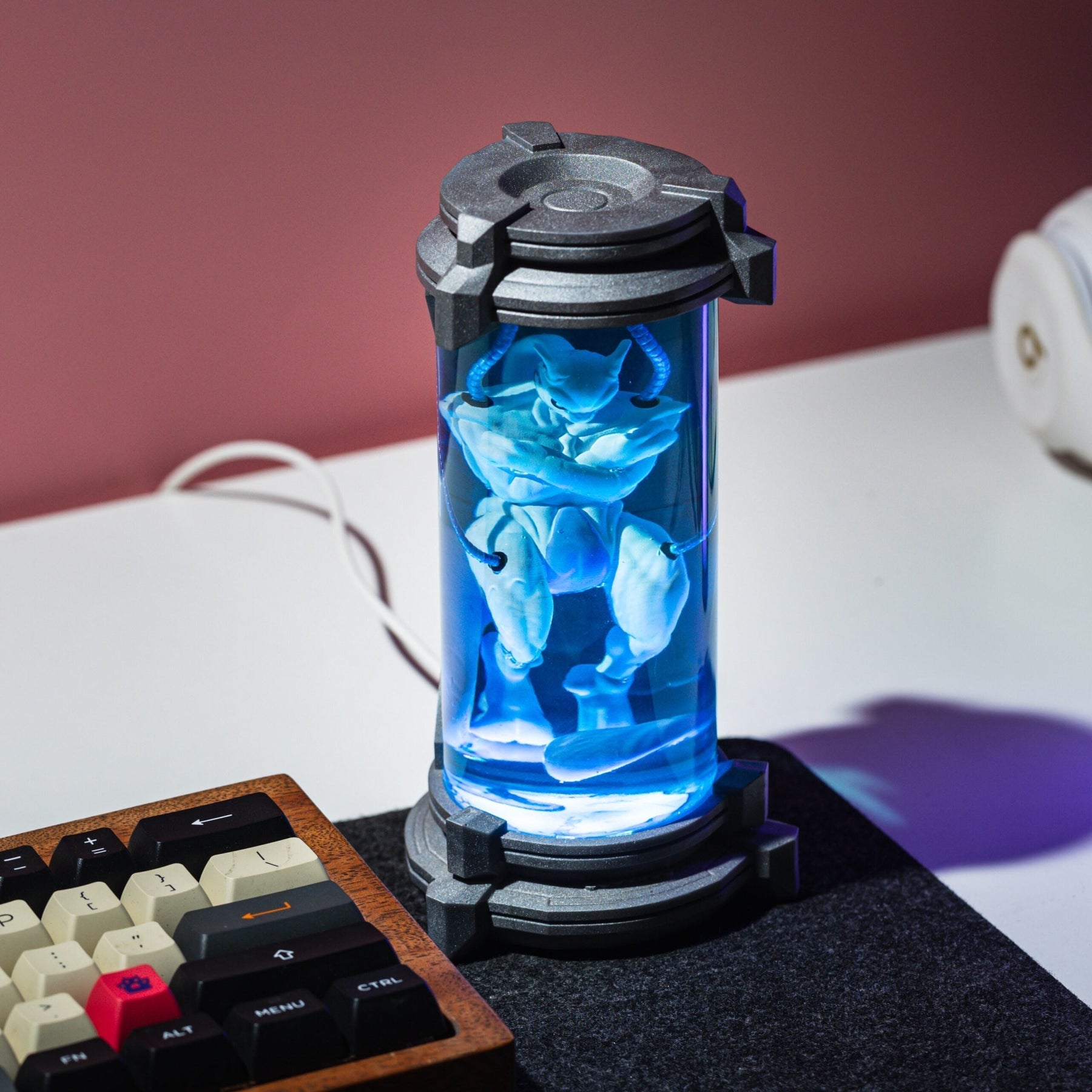 This lamp is more than just a source of illumination; it’s a tribute to the enduring allure of the Pokémon franchise. Crafted with meticulous attention to detail, this resin lamp showcases Mewtwo’s commanding presence. With its piercing psychic gaze and imposing stature, Mewtwo stands as a testament to its unparalleled psychic abilities.