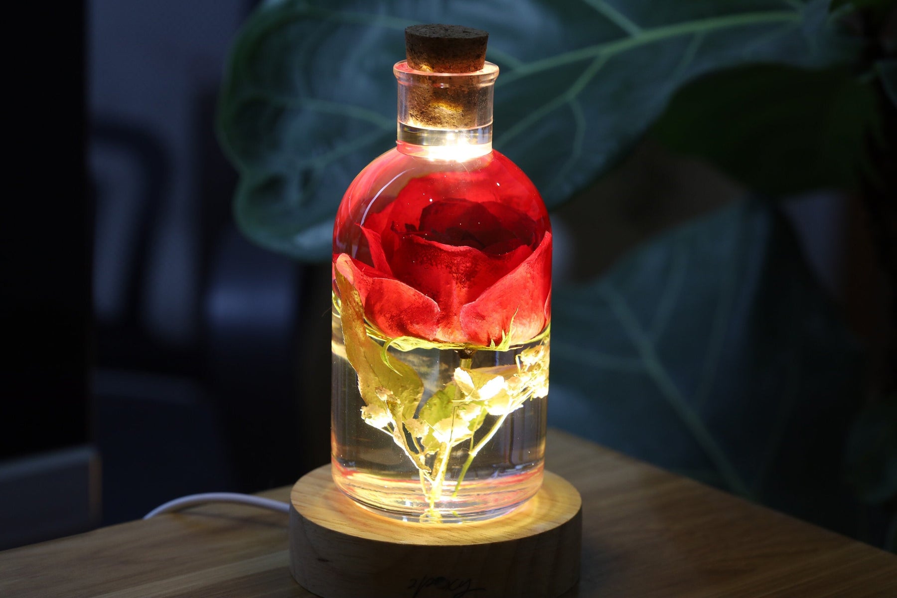 It’s the imagination that comes into reality. The real everlasting rose is put inside a clear bottle. Immortal roses can be preserved forever, the flowers will never fade, and the glass will always remain in a more original flowering state. The never-fading red rose glass dome represents the belief in eternity.