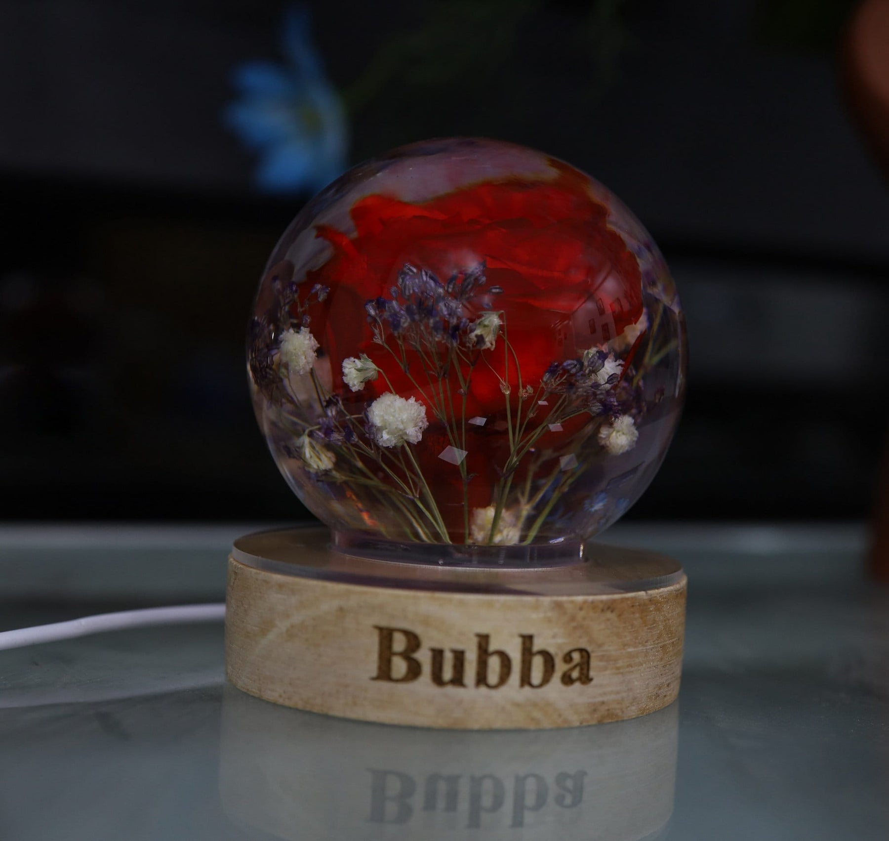 This piece was made with real flowers and hence it is important to preserve the lamp provided safely away from direct sunlight.