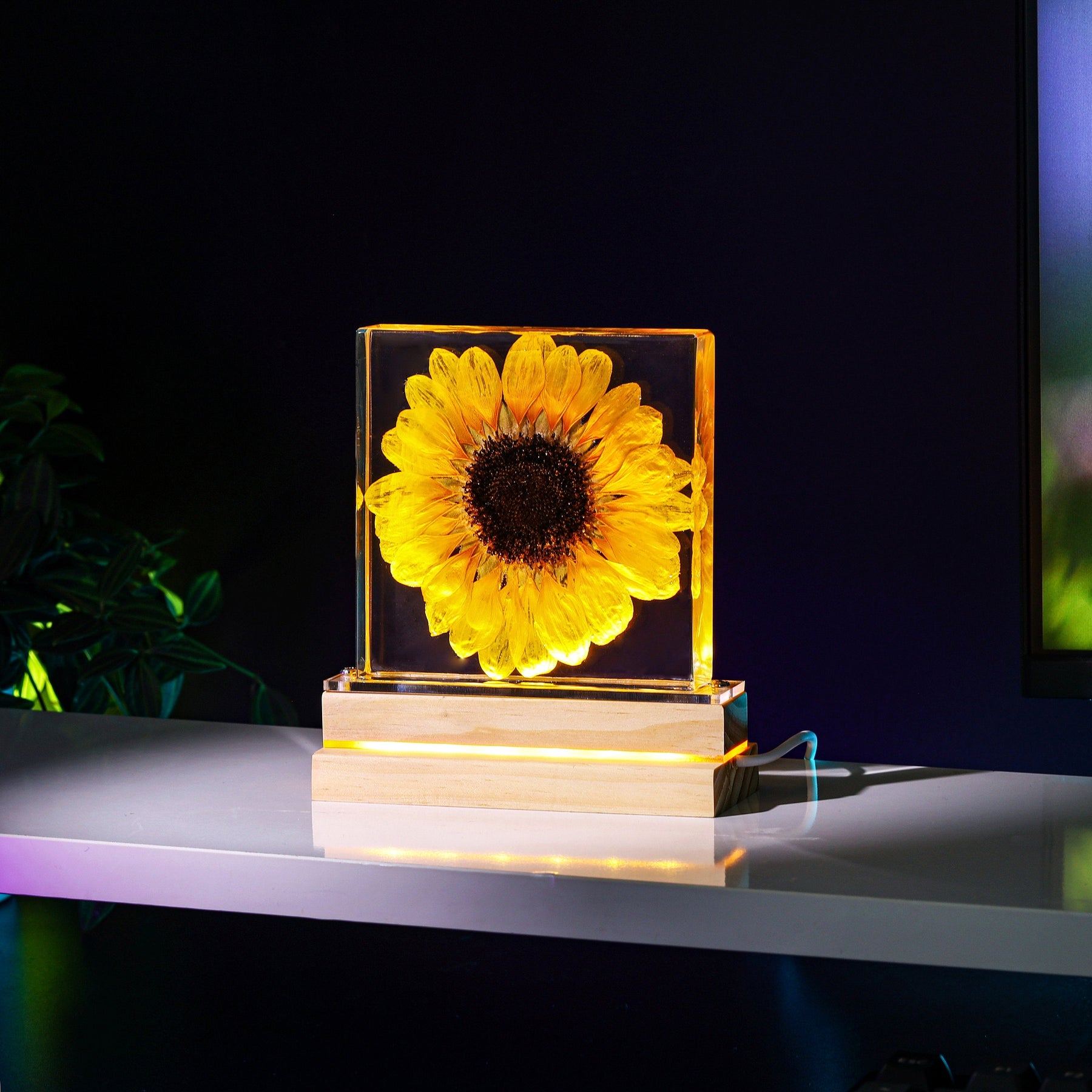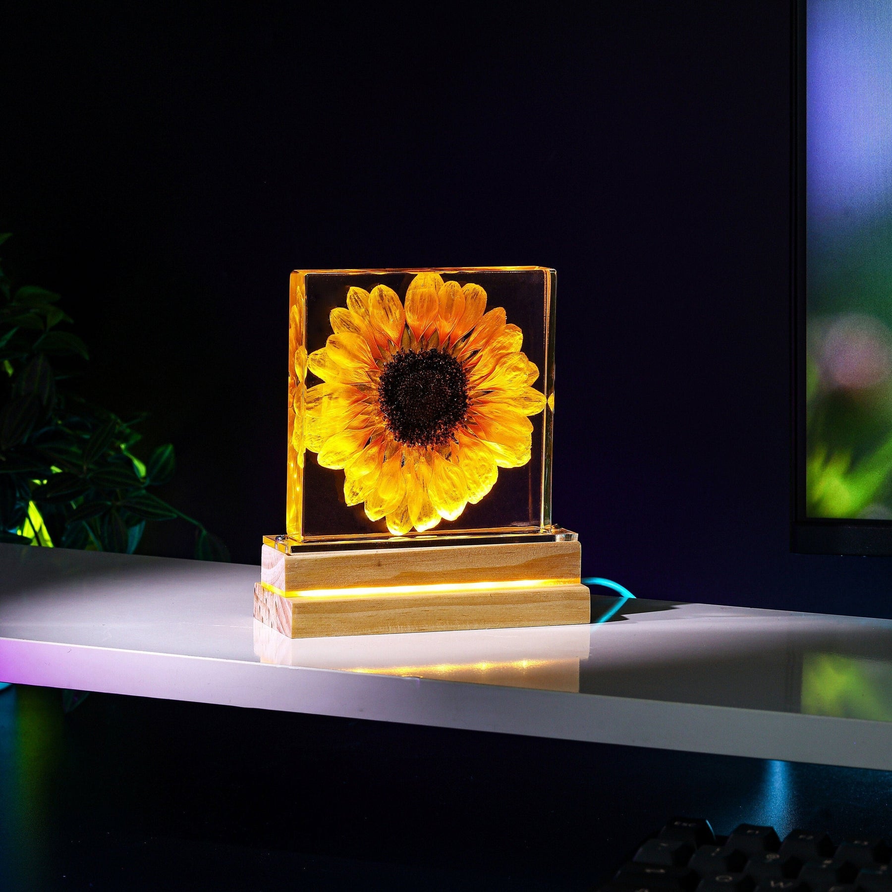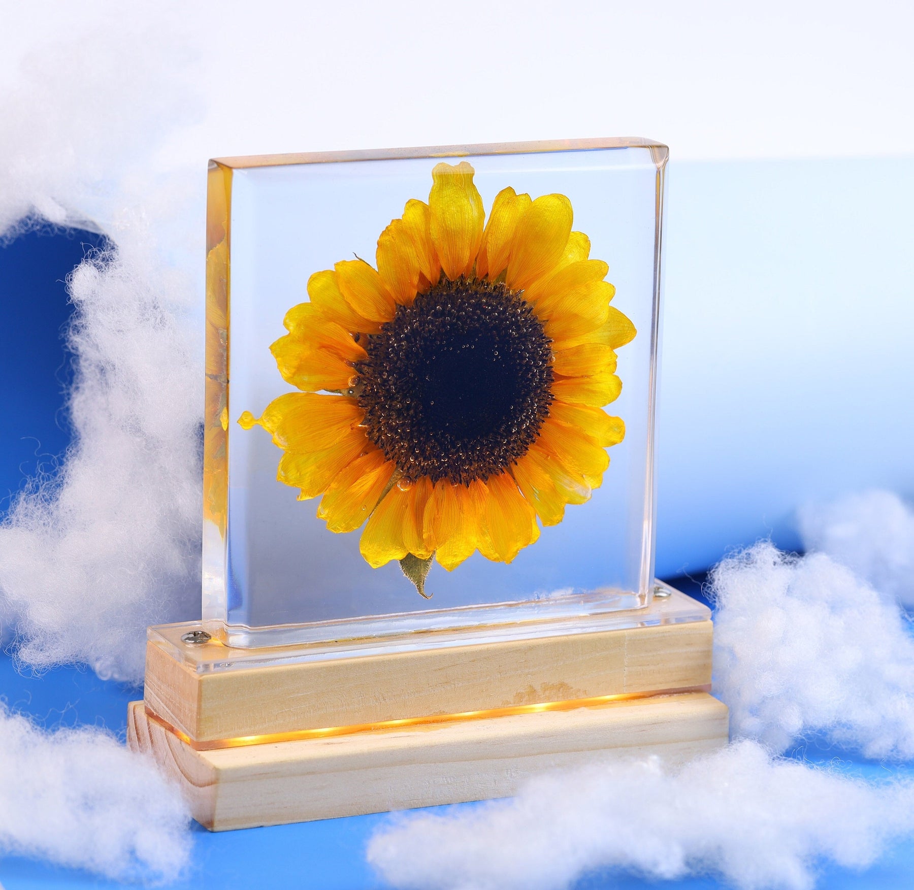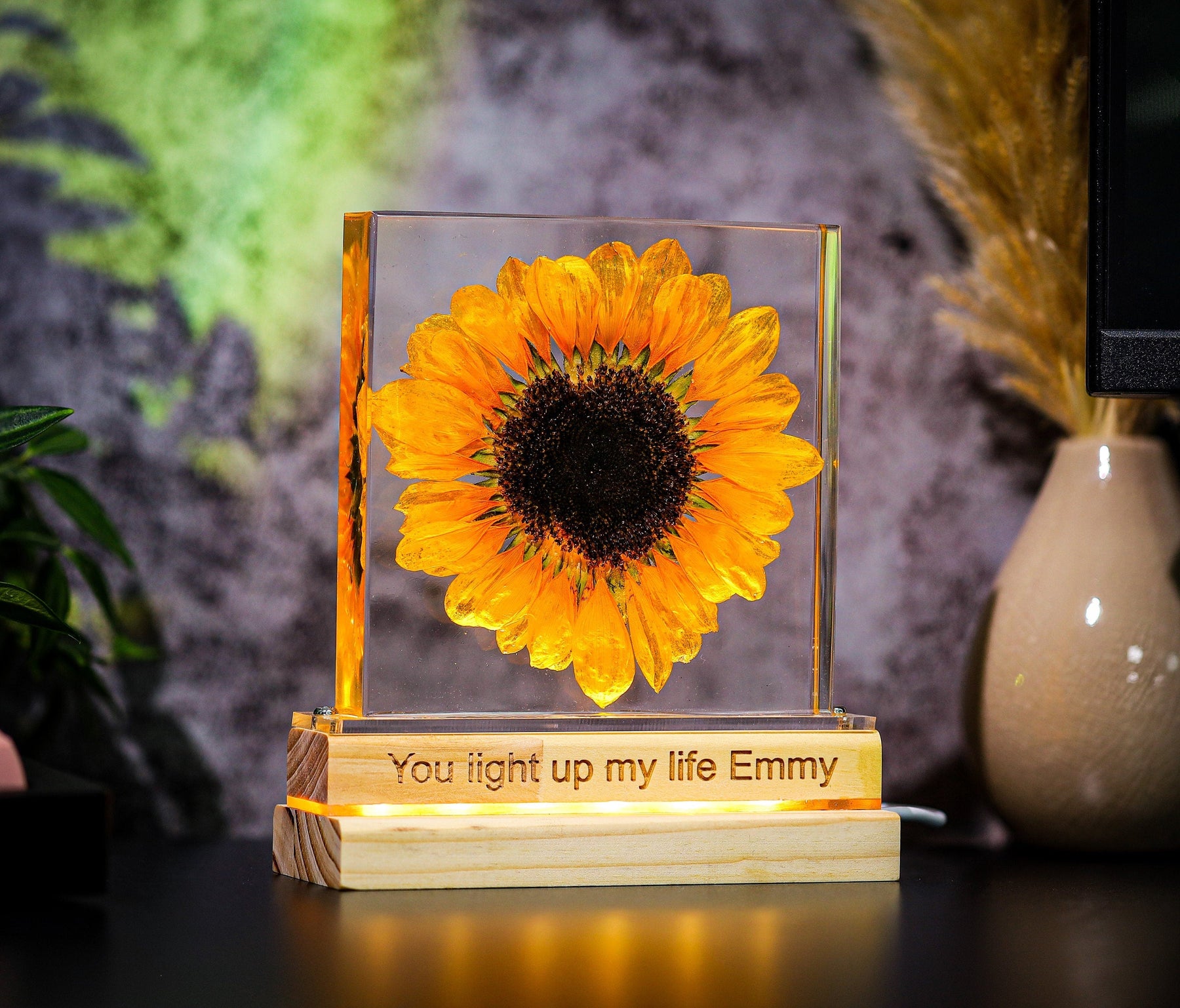 Step into a world of profound symbolism with our latest creation β a resin lamp meticulously crafted to showcase a real sunflower, rich in meaning and significance.