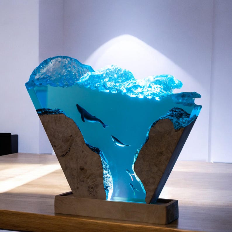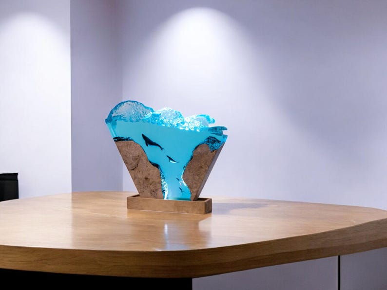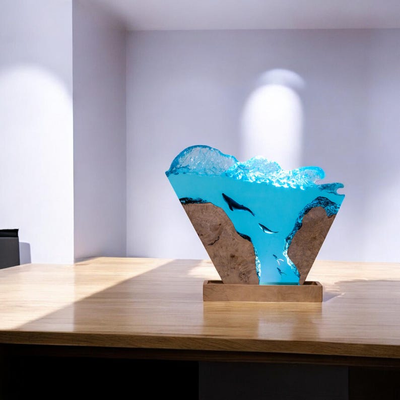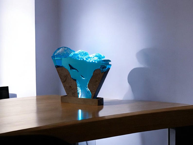 The Lamp Scuba Diver Resin is a breathtaking piece of art that immerses your space in the mystery and beauty of the ocean. Featuring an intricate underwater scene, this lamp epoxy resin ocean captures the depths of the sea with stunning detail. For a touch of whimsy, the octopus lamp resin adds a playful and artistic element, making it a unique and eye-catching addition to your decor.