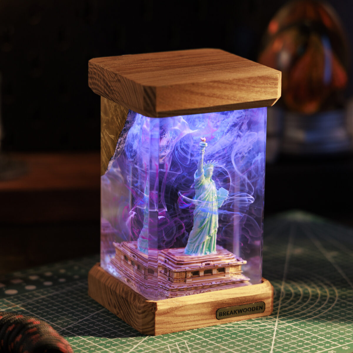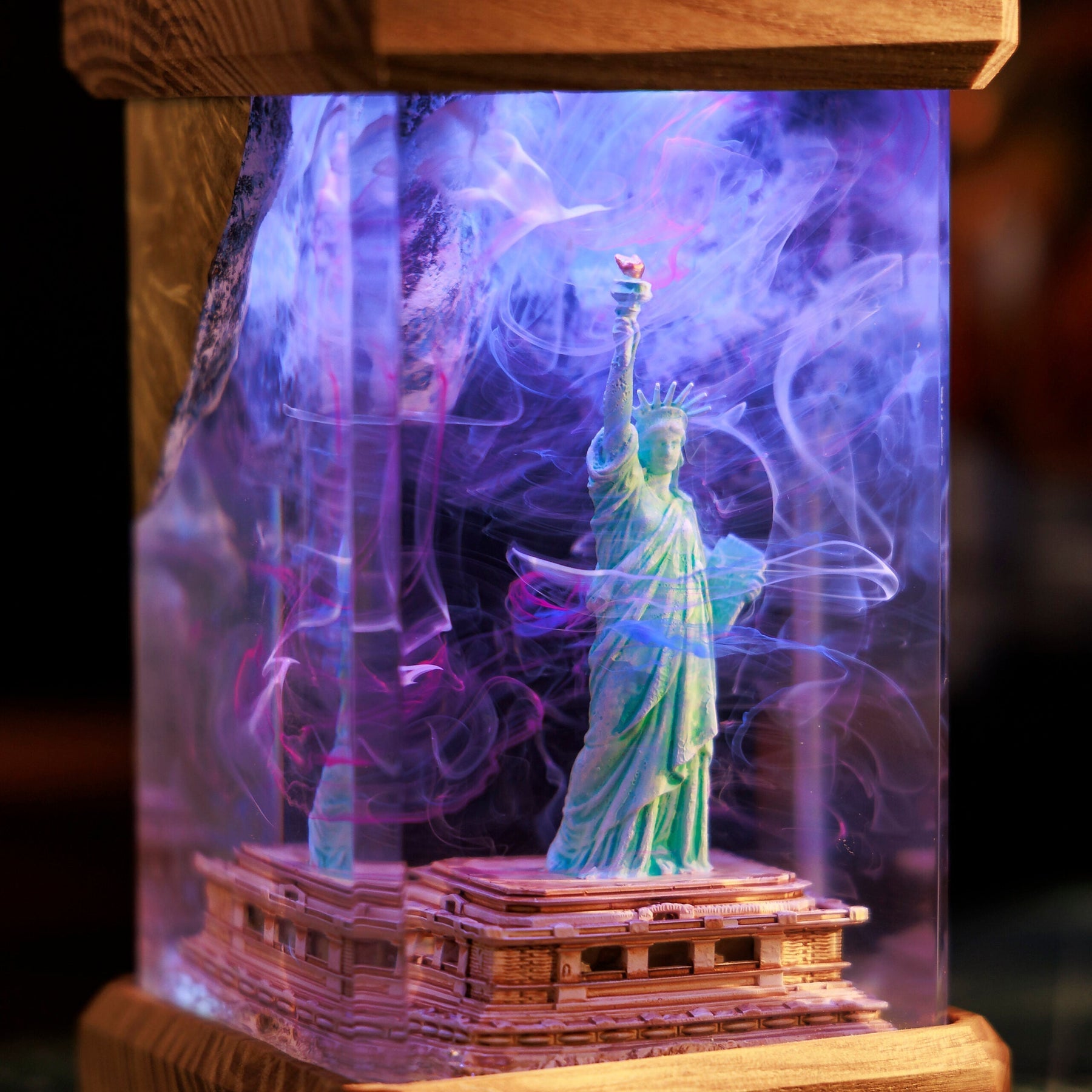 A Statue of Liberty resin lamp is a patriotic and elegant decor item featuring a detailed replica of the iconic statue encased in clear or tinted epoxy resin. When lit, it emits a soft, ambient glow that highlights the statue’s intricate details, making it a perfect addition to any room for those who appreciate American history and symbolism.