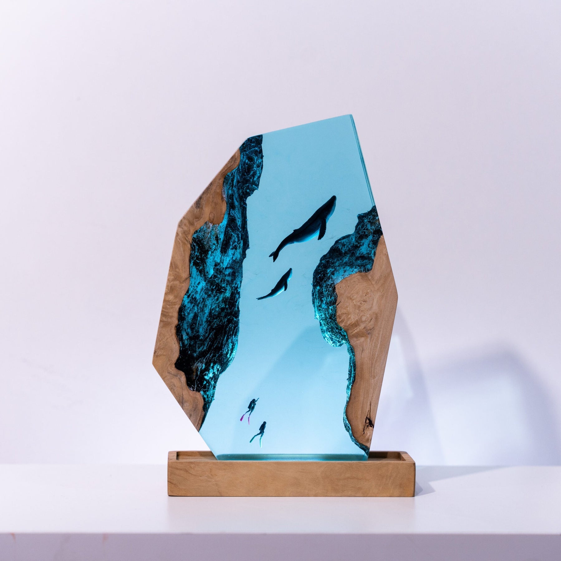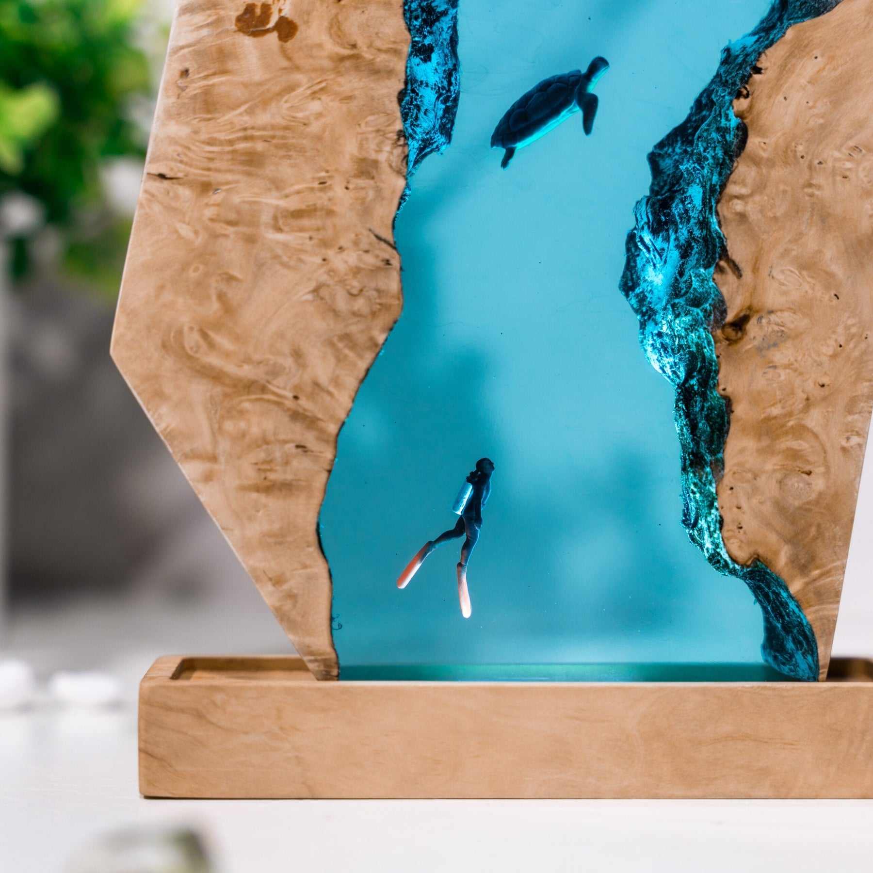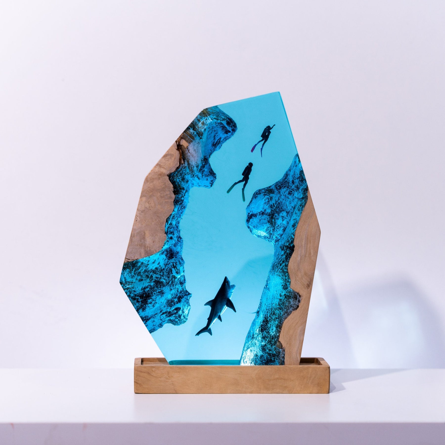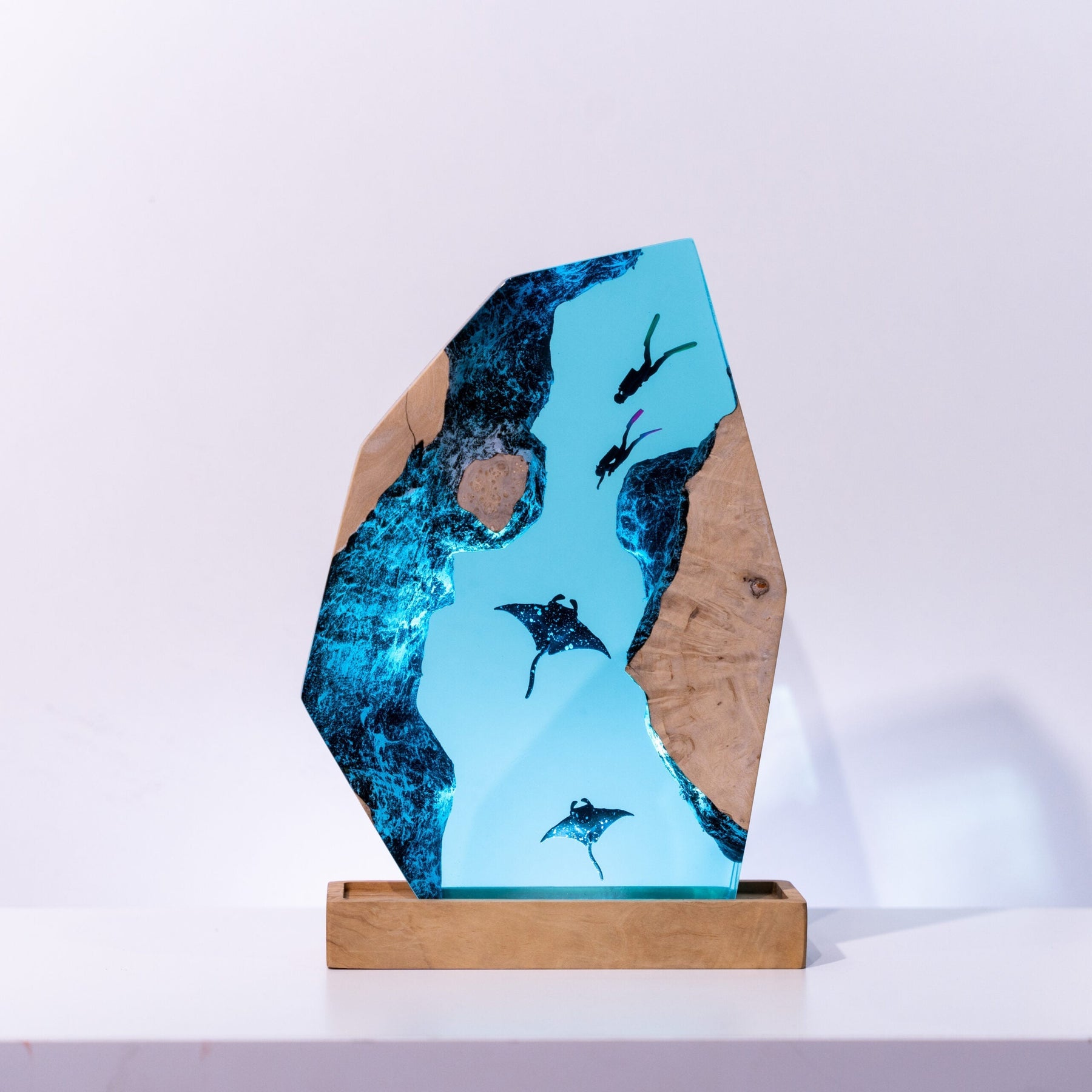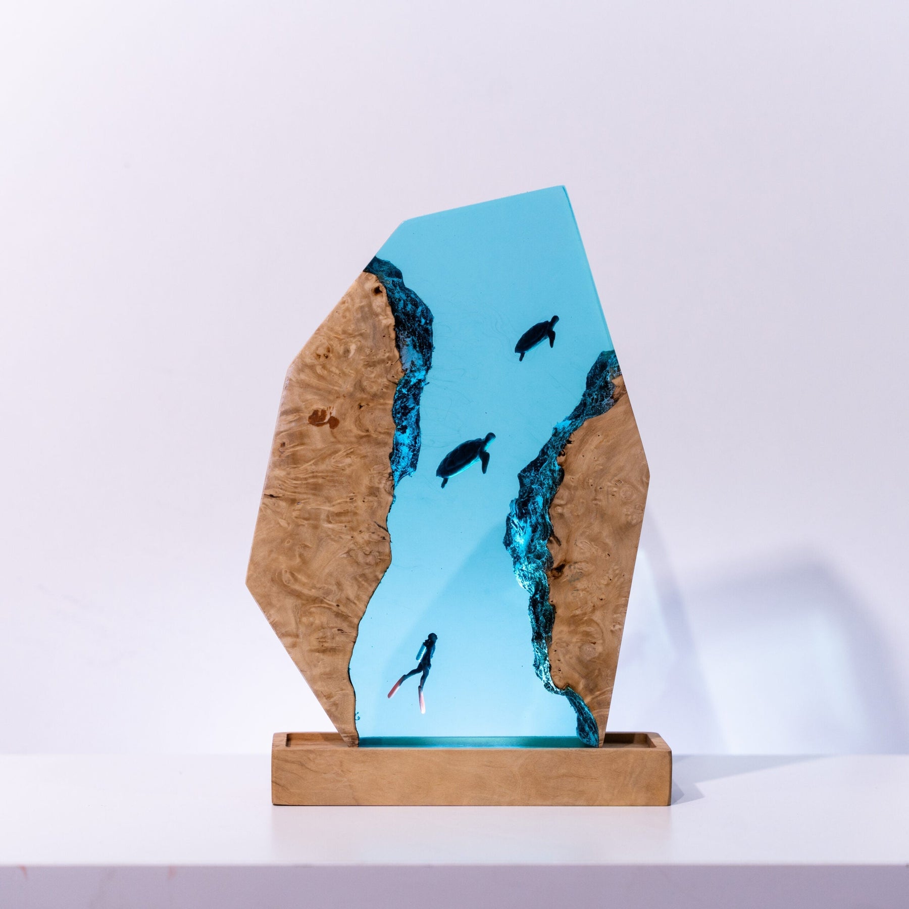 The Scuba Diver Resin Lamp is a unique piece of art that combines form and function. Crafted from high-quality resin, it depicts a scuba diver in intricate detail, creating a lifelike underwater scene. The lamp doubles as a light source, emitting a warm glow that highlights the sculpture’s details. Ideal for ocean lovers, nautical themes, or art enthusiasts, this lamp adds a touch of adventure to any space.