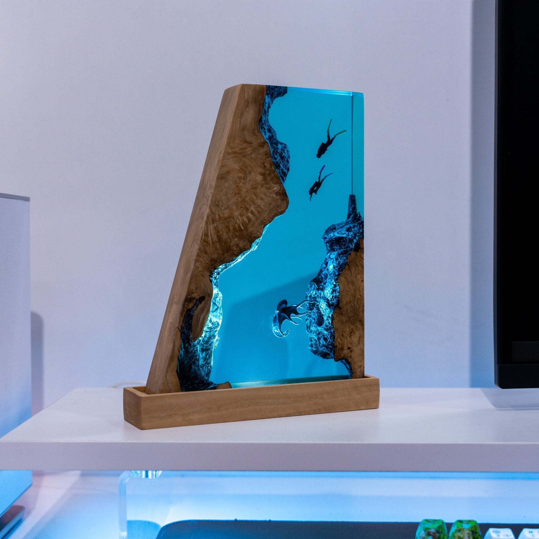 The Scuba Diver Resin Lamp is a unique piece of art that combines form and function. Crafted from high-quality resin, it depicts a scuba diver in intricate detail, creating a lifelike underwater scene. The lamp doubles as a light source, emitting a warm glow that highlights the sculpture’s details. Ideal for ocean lovers, nautical themes, or art enthusiasts, this lamp adds a touch of adventure to any space.