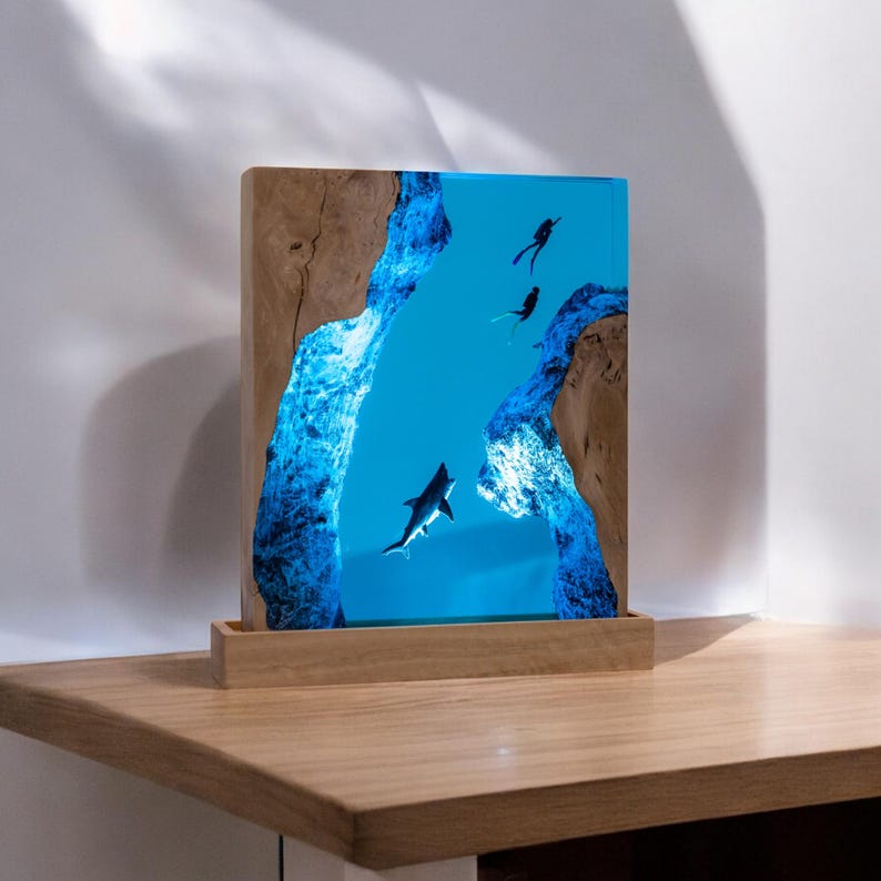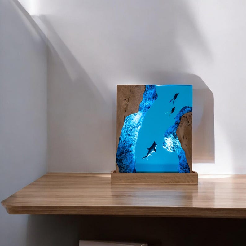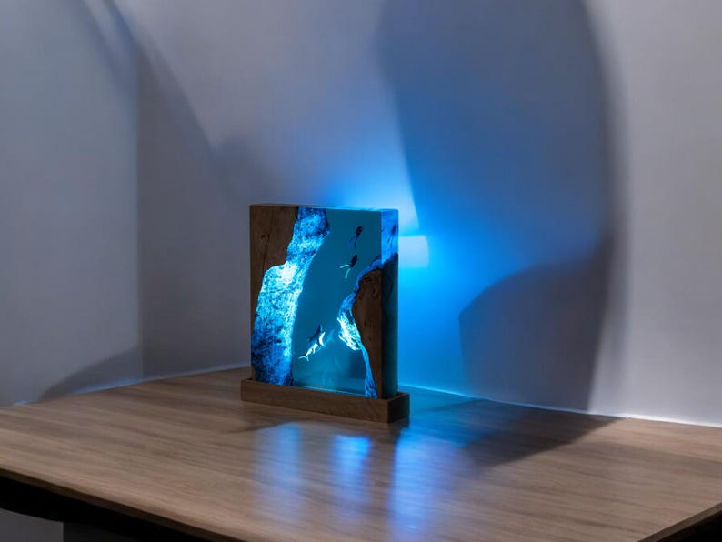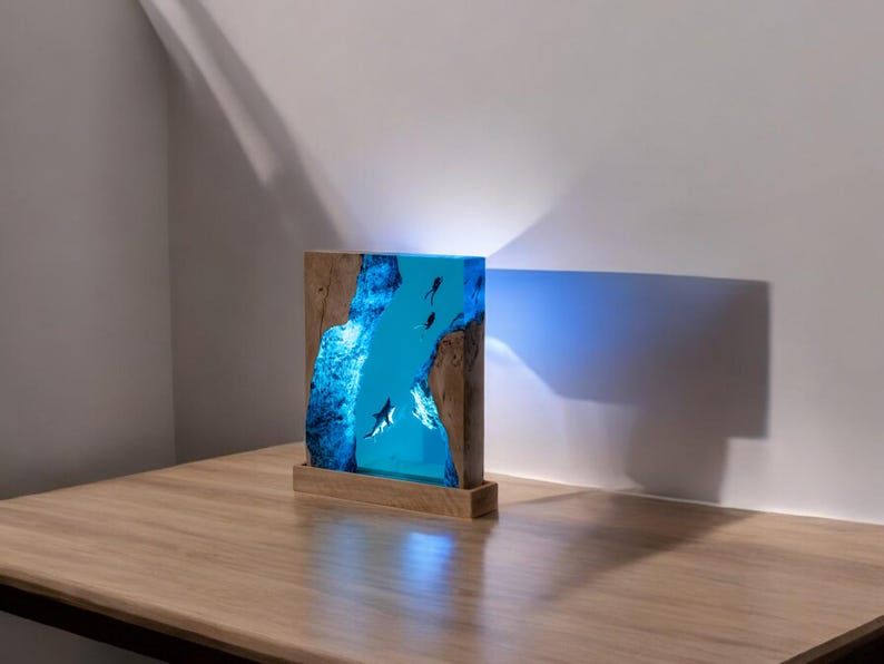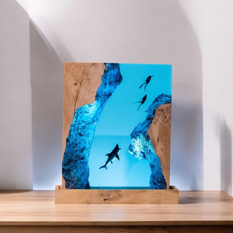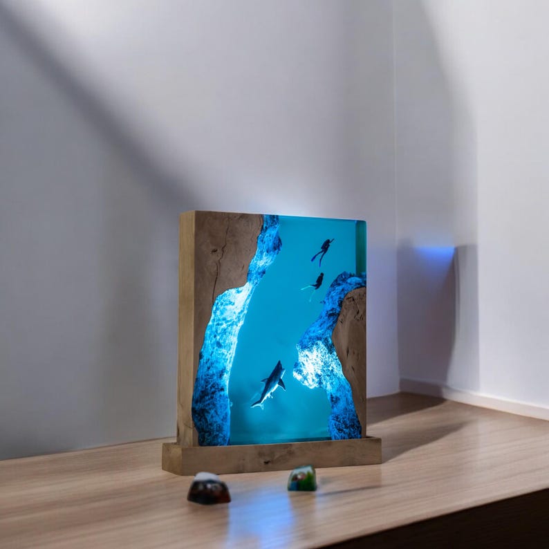 Dive into a serene underwater world with our Night Light scuba diver ocean lamp, a captivating addition to your home decor. This stunning lamp features a meticulously crafted scuba diver, perfectly complemented by a charming whale lamp resin design that brings the beauty of marine life right into your living space.