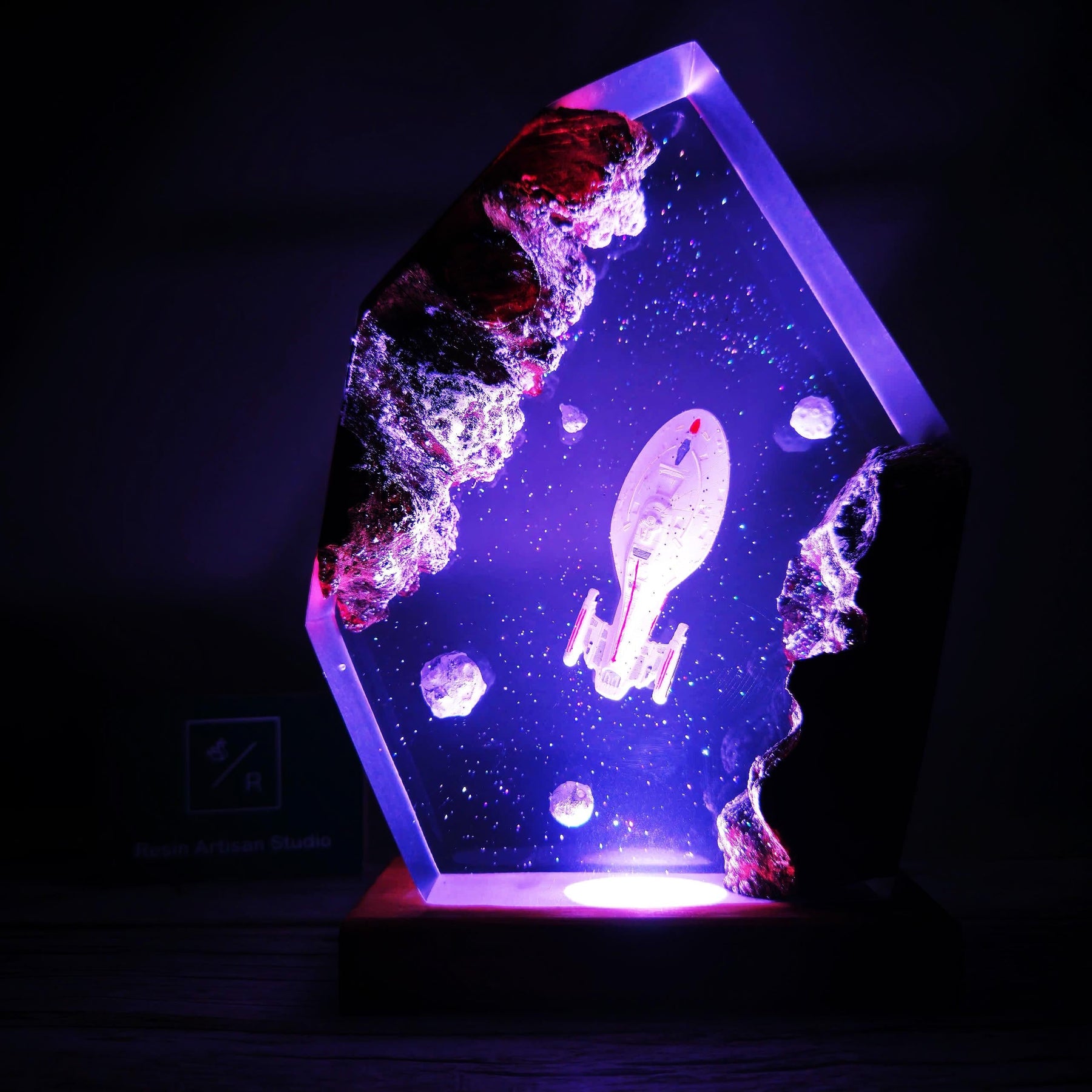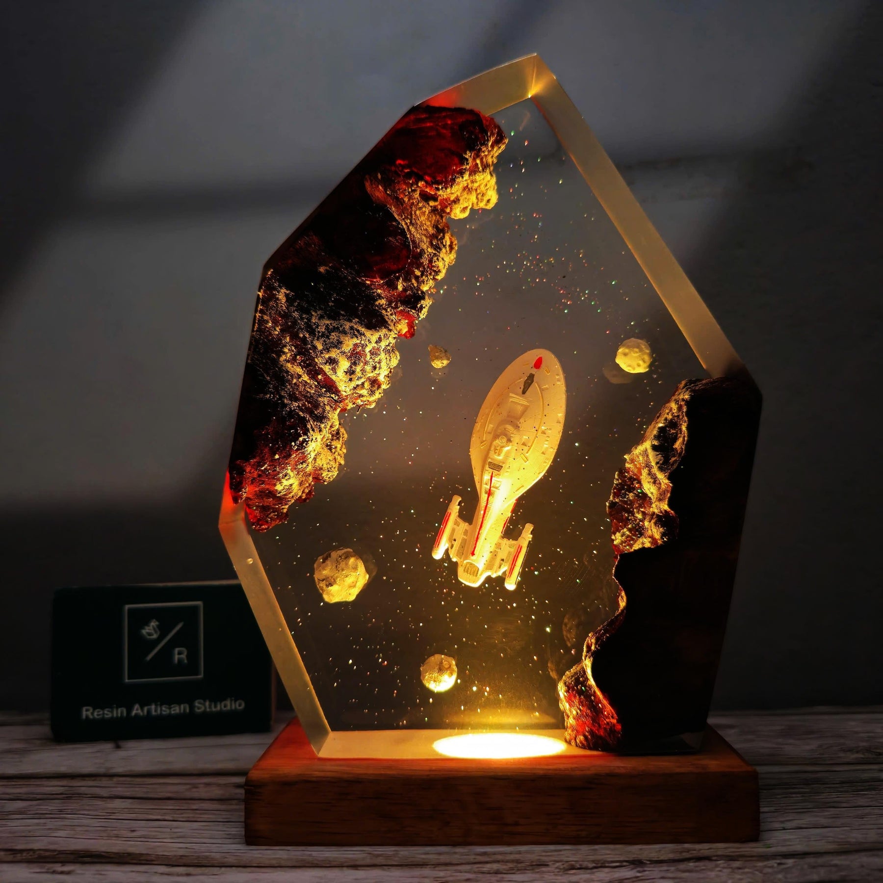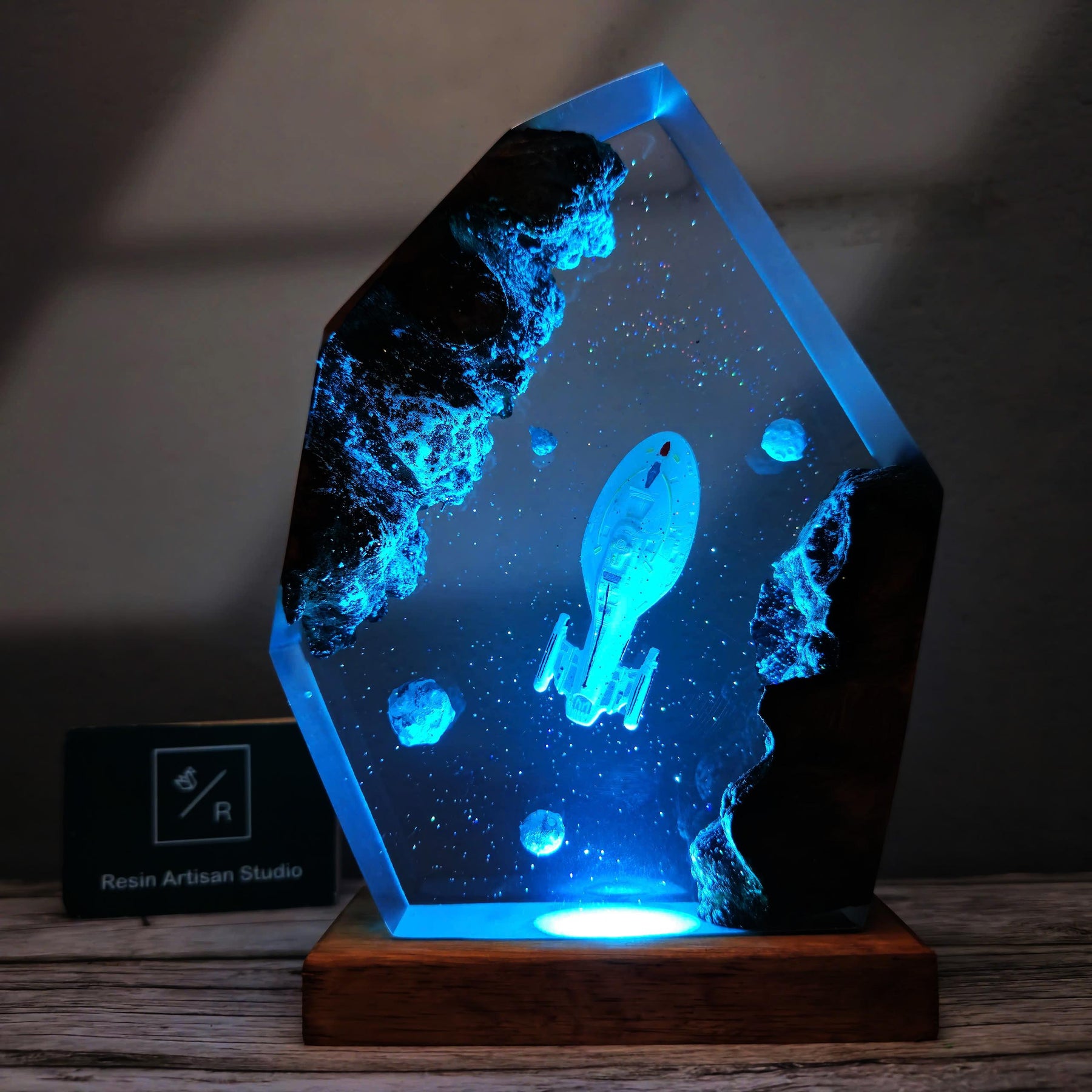 Embark on a mesmerizing journey as you gaze into the depths of this enchanting lamp. Suspended in a galaxy of epoxy resin, miniature astronauts float weightlessly, exploring the mysteries of interstellar space. Their presence sparks wonder and ignites your imagination, as if you've joined them on their cosmic odyssey.