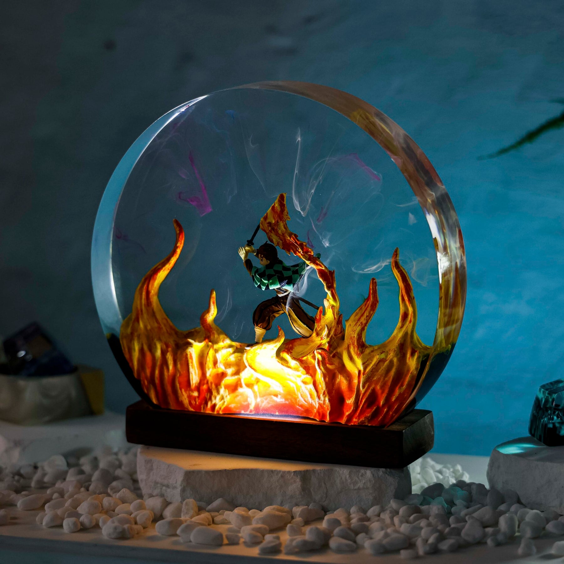 A Demon Slayer resin lamp is a decorative piece inspired by the anime “Demon Slayer: Kimetsu no Yaiba.” Crafted with resin materials, it features intricate designs, characters, or scenes from the series. The Swordman Resin Lamp is a visual celebration of the Demon Slayerl universe, offering a unique and compelling touch of science fiction to your living space.