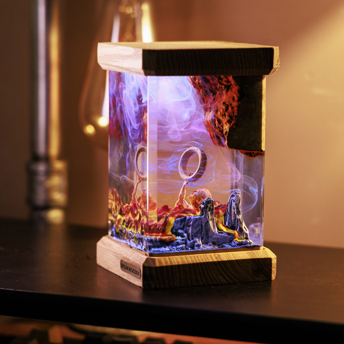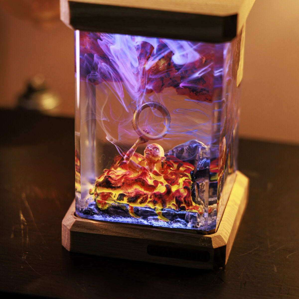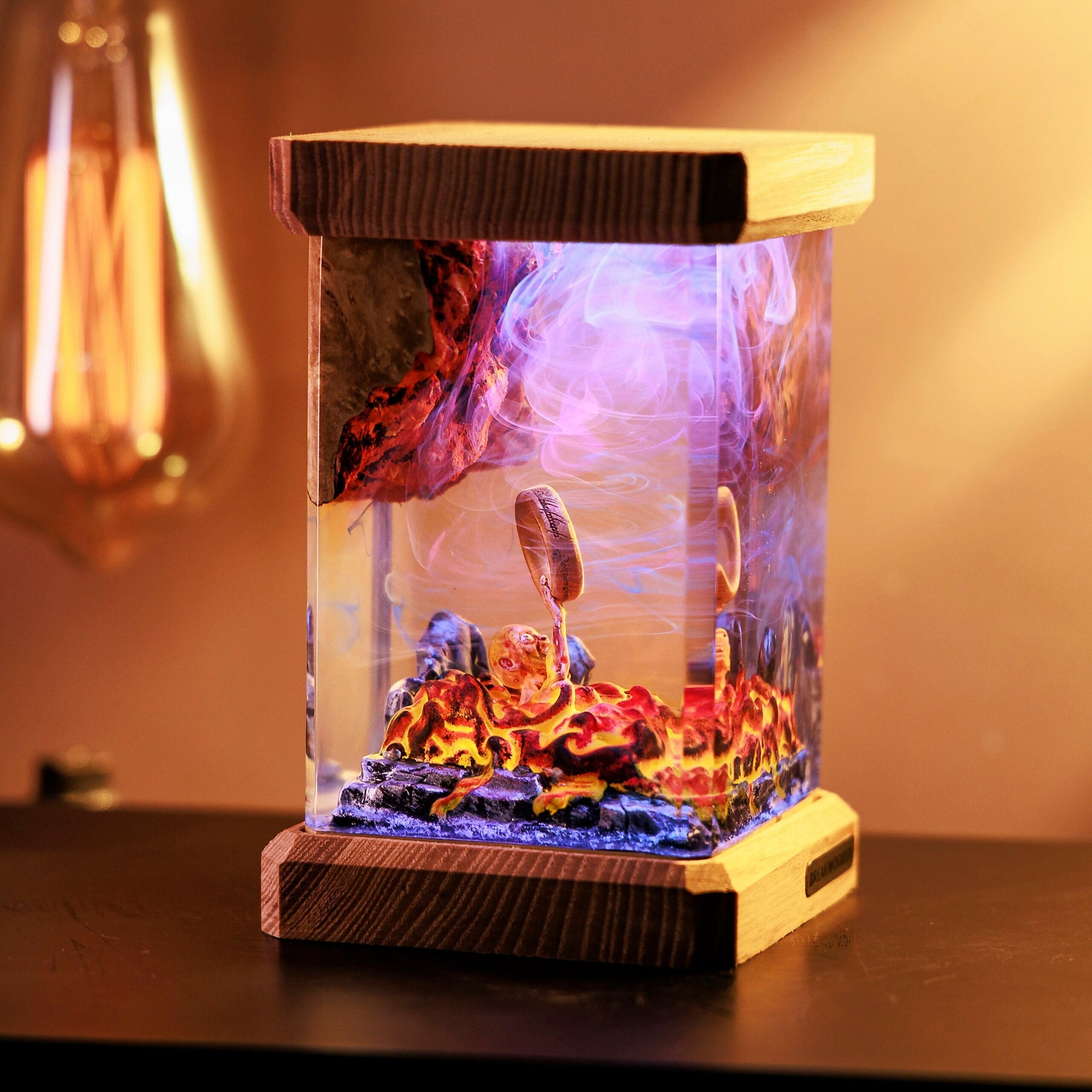 The Power Ring resin lamp of the Dark Lord is a captivating accessory for arround asmosphere. Inspired by the mystical rings of power often associated with dark lords in fantasy, this lamp is meticulously crafted with intricate designs and rich colors, exuding an air of dark majesty.