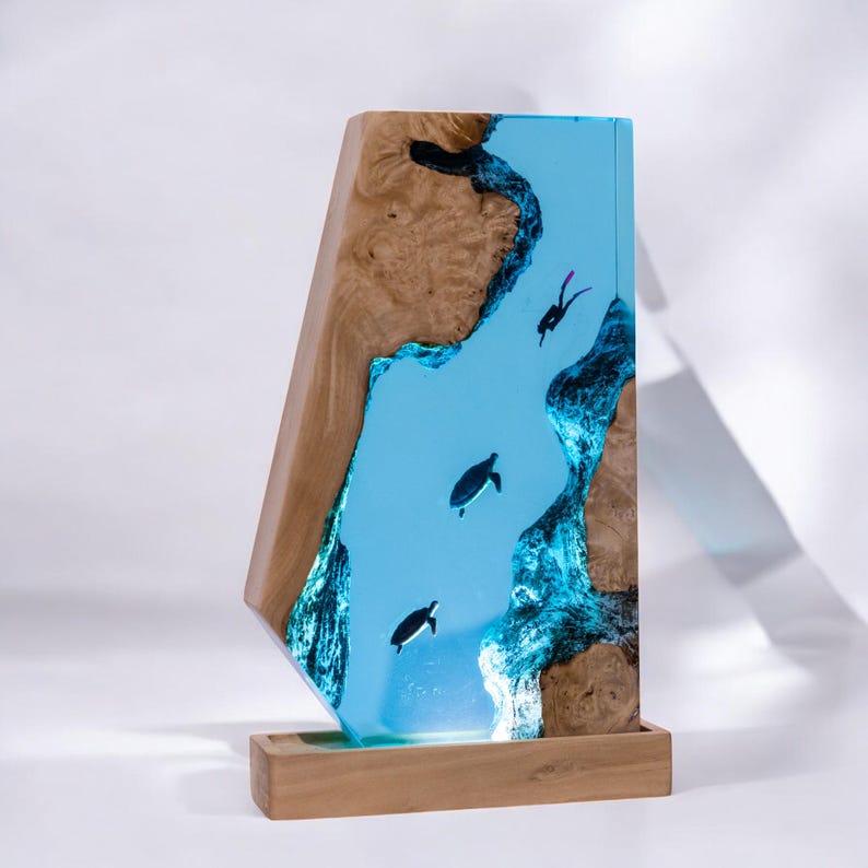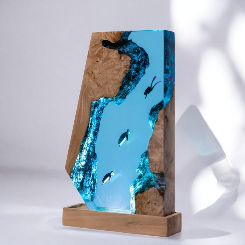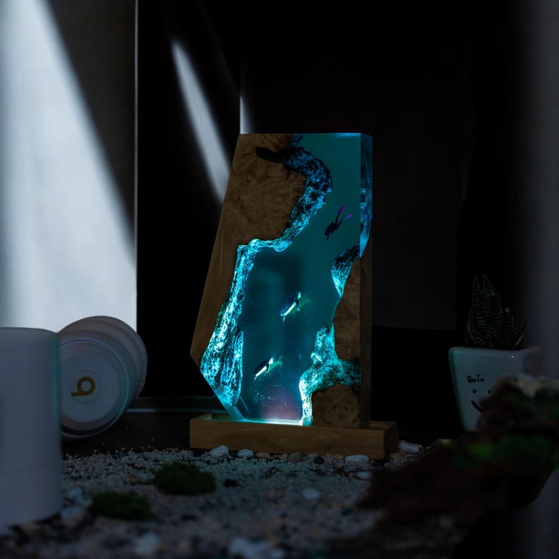 Dive into a serene underwater world with our Night Light scuba diver ocean lamp, a captivating addition to your home decor. This stunning lamp features a meticulously crafted scuba diver, perfectly complemented by a charming whale lamp resin design that brings the beauty of marine life right into your living space.
