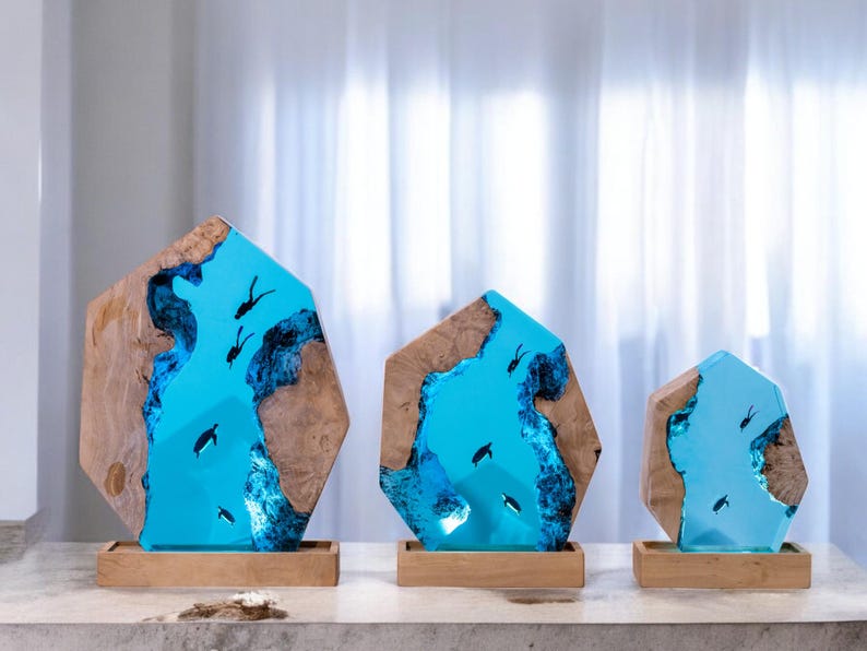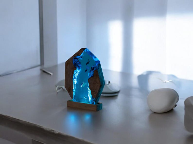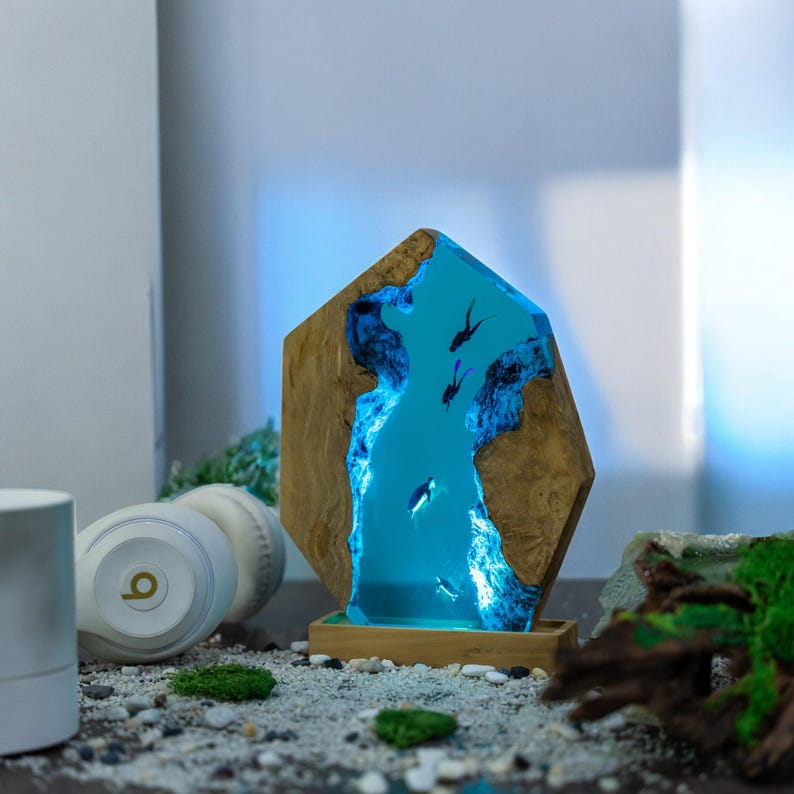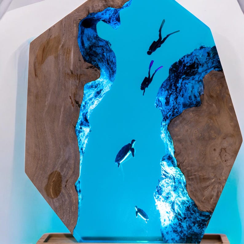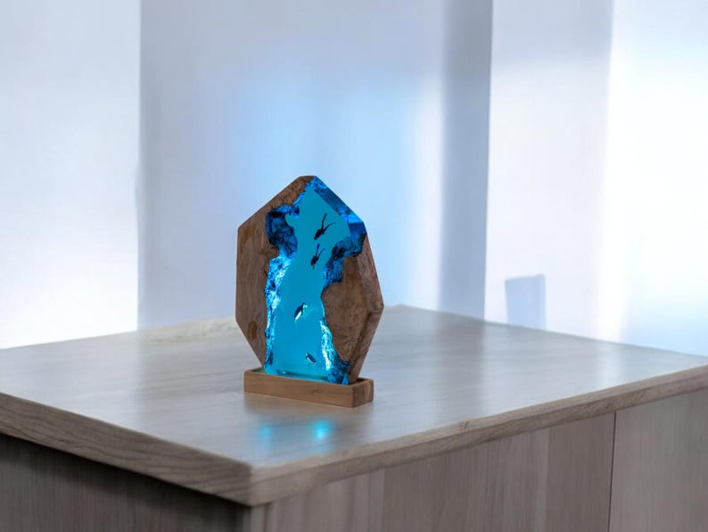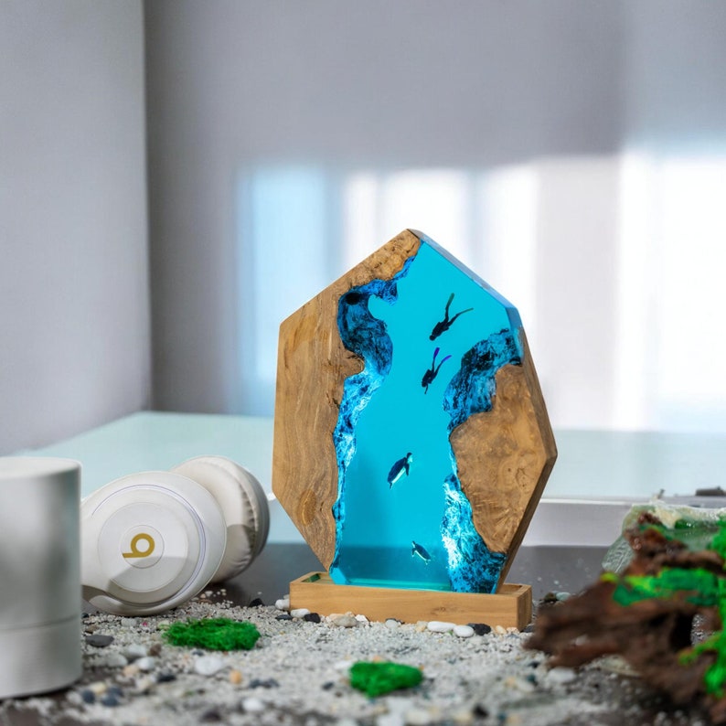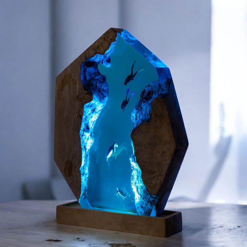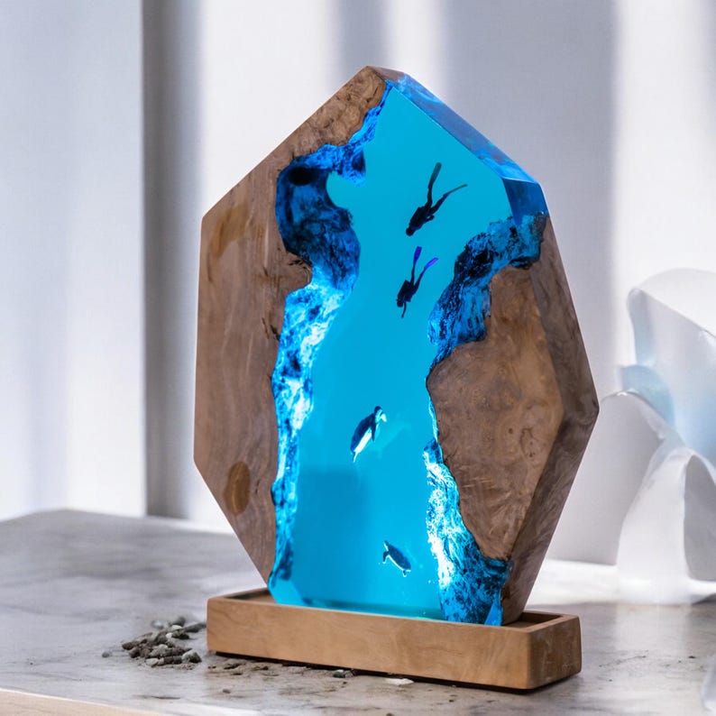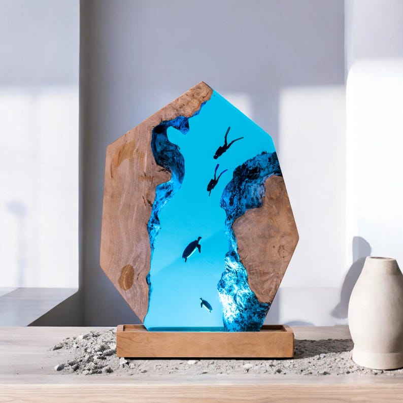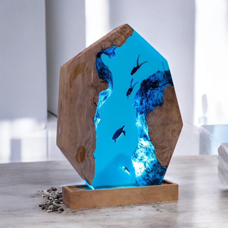 Illuminate your space with our exquisite Night Light scuba diver ocean lamp! Featuring a beautifully crafted Turtle lamp resin, this unique piece captures the magic of the ocean and brings it into your home. Made from high-quality epoxy resin wood, this lamp is not only but also a stunning piece of decor.