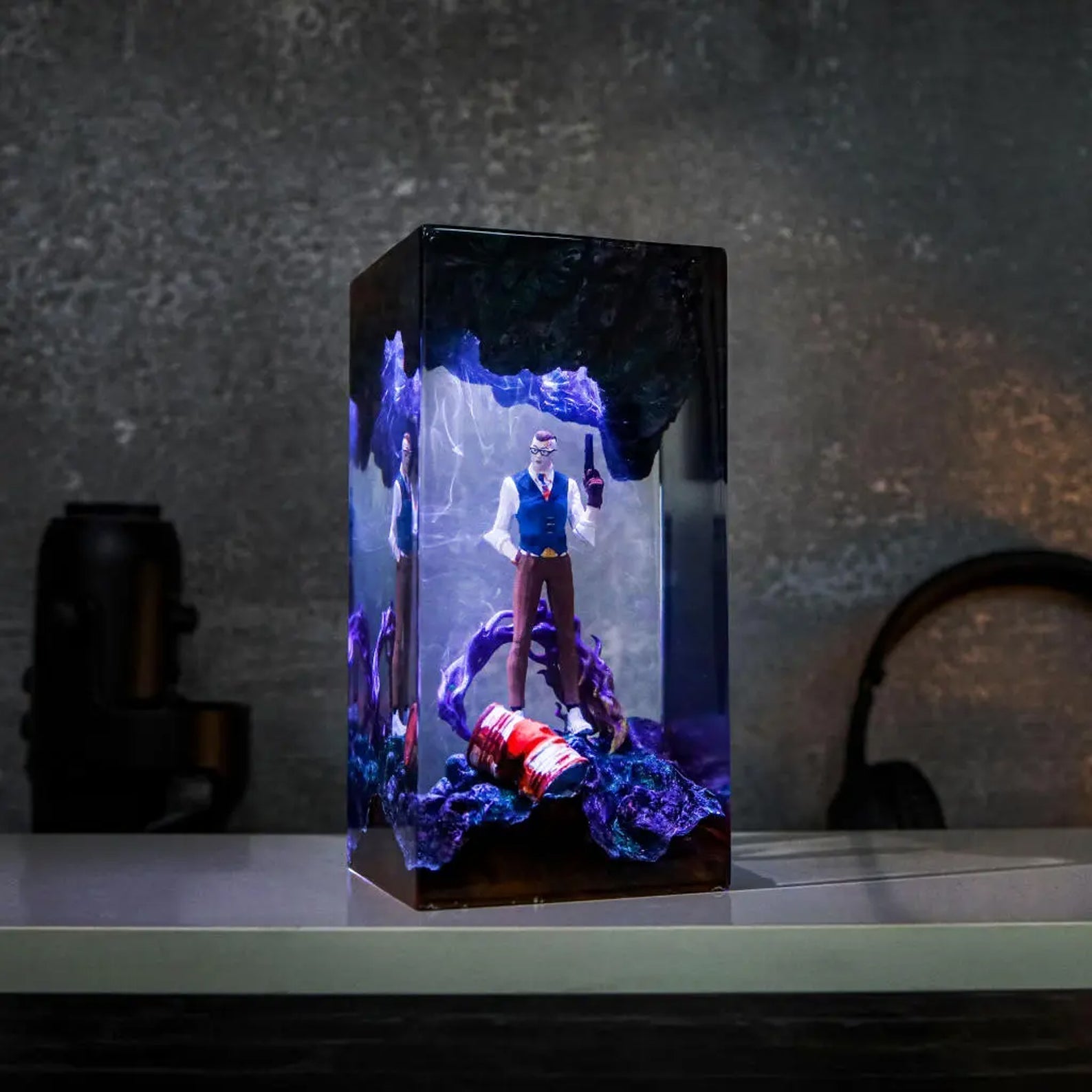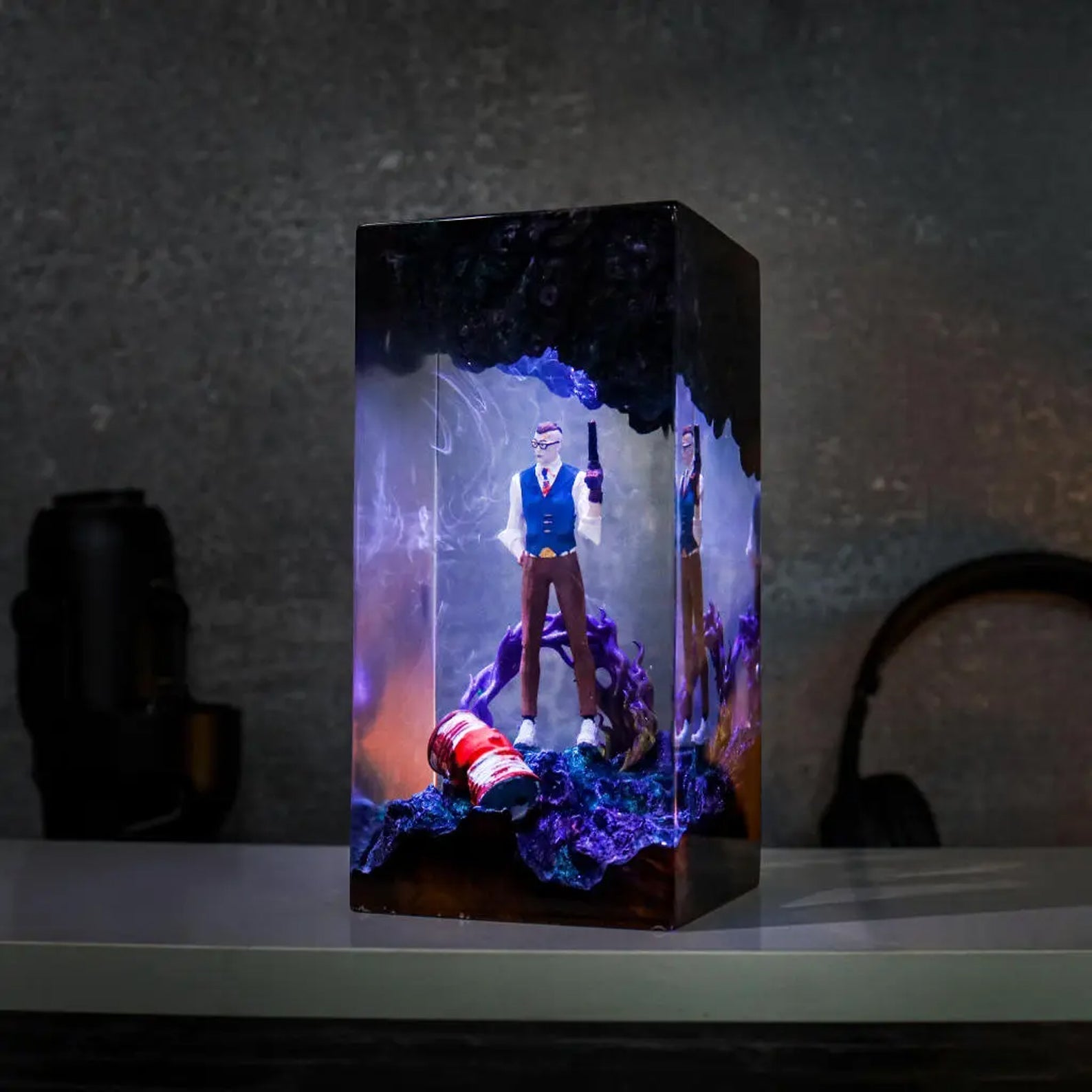Bring the enigmatic aura of Omen from Valorant into your space with this custom-crafted night light. Made from high-quality wood and epoxy resin, this lamp captures Omen's dark and mysterious essence. Featuring a remote control with 16 color options, you can easily switch up the lighting to fit your style. Looking for something unique? We can create a custom night light of any character you choose, making it the perfect addition to your collection or gaming setup.